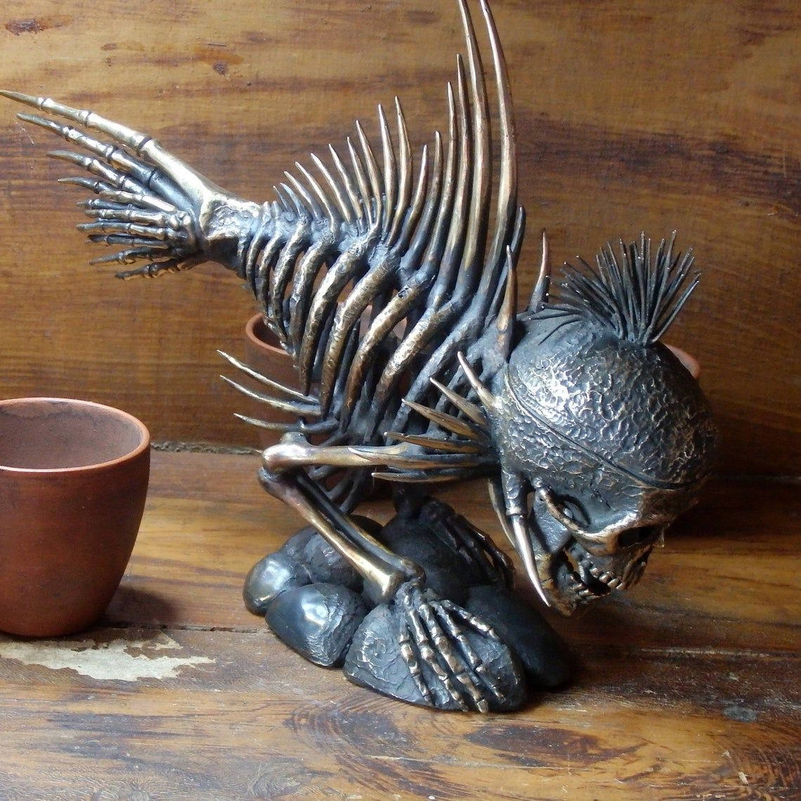 Interior statue Prickle Fish Sr., ancient fish skeleton