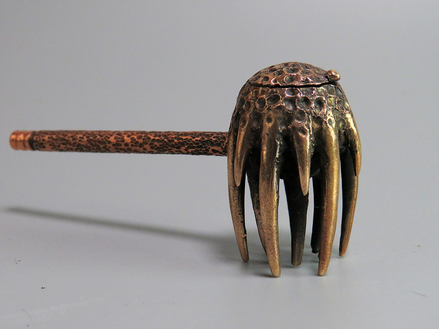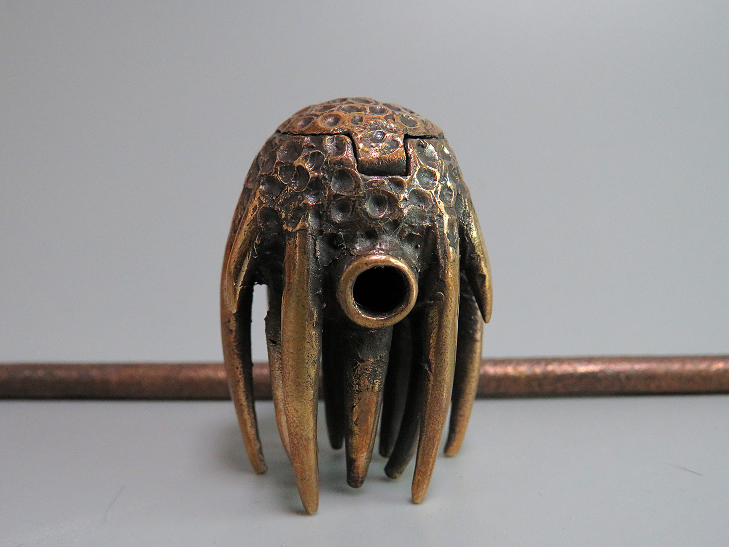 Smoking pipe with a bowl in the form of Jellyfish. The pipe has an opening lid and this is not only a smoking accessory, but also a wonderful souvenir. The mouthpiece is made of copper, it is screwed on, can have a length (from 3 to 30 cm) and a shape at the request of the buyer.