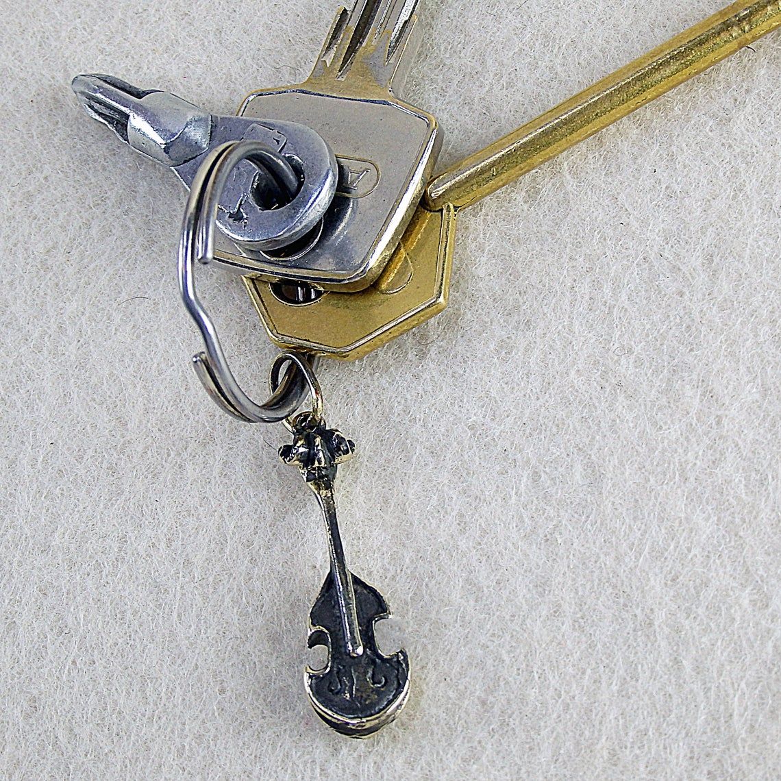 This keychain is made by hand (without using computer technology) of bronze in accordance with the author’s sketch.