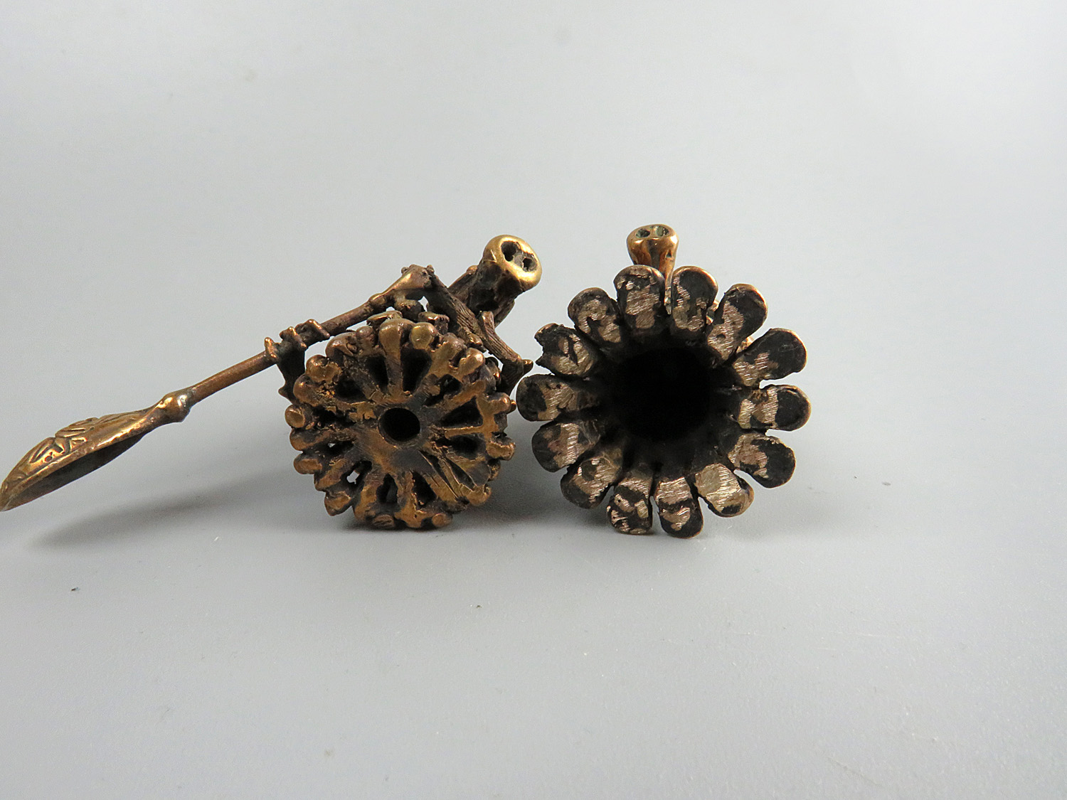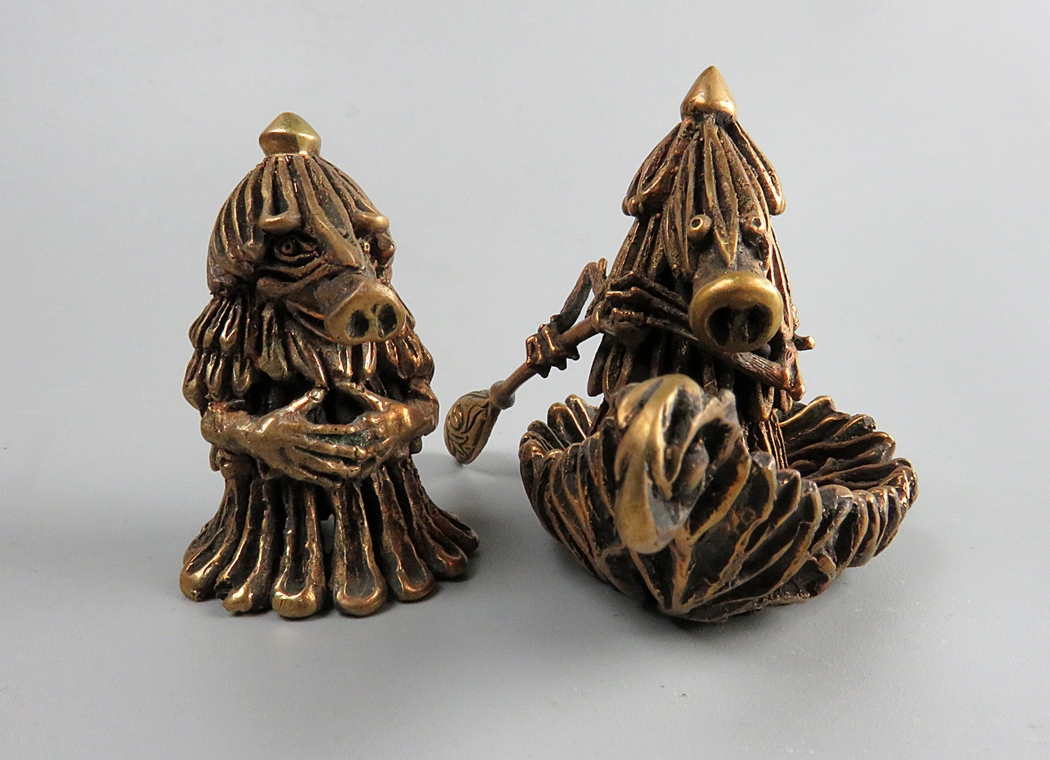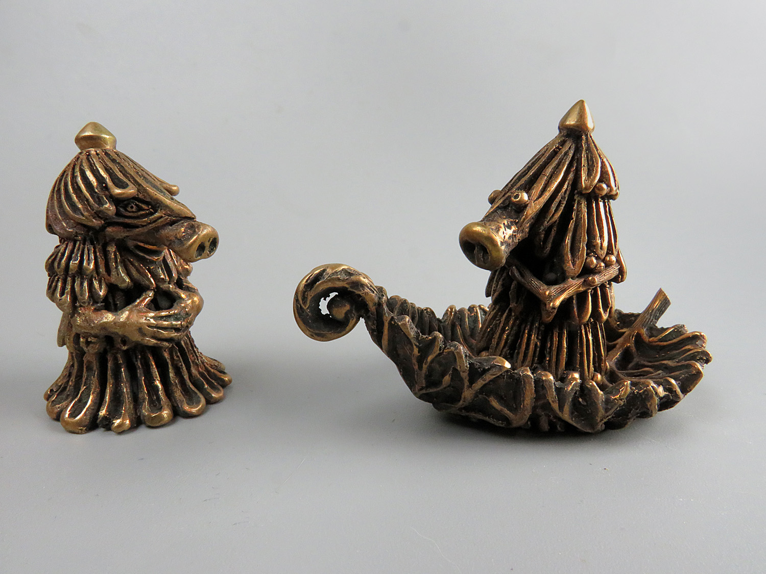 A small room decoration - a pair of bronze Kikimors, fairy-tale forest characters. A great symbolic gift for those who set off on a journey or are waiting for a meeting after parting.
