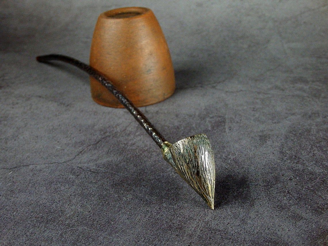 Freehand churchwarden bronze pipe with imitation of light tree bark. The mouthpiece is made of copper, it is screwed on, can have a length (from 5 to 30 cm) and a shape at the request of the buyer. The pipe is working, not decorative, the model is tested by the master.