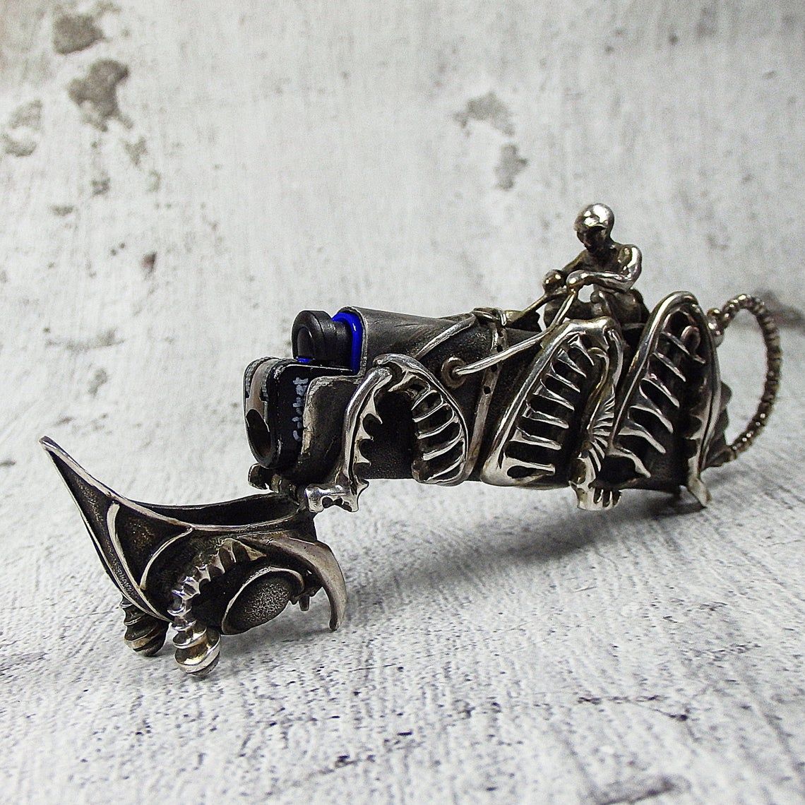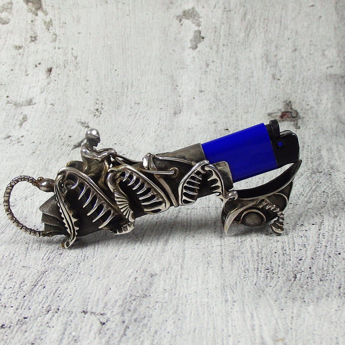 This unique surreal case for a disposable Bic J3 or Cricket Mini lighter destroys all templates with its design and purpose. Stylish silver case (not the cheapest thing), which is designed for a disposable lighter - this combination can cause a storm of emotions.