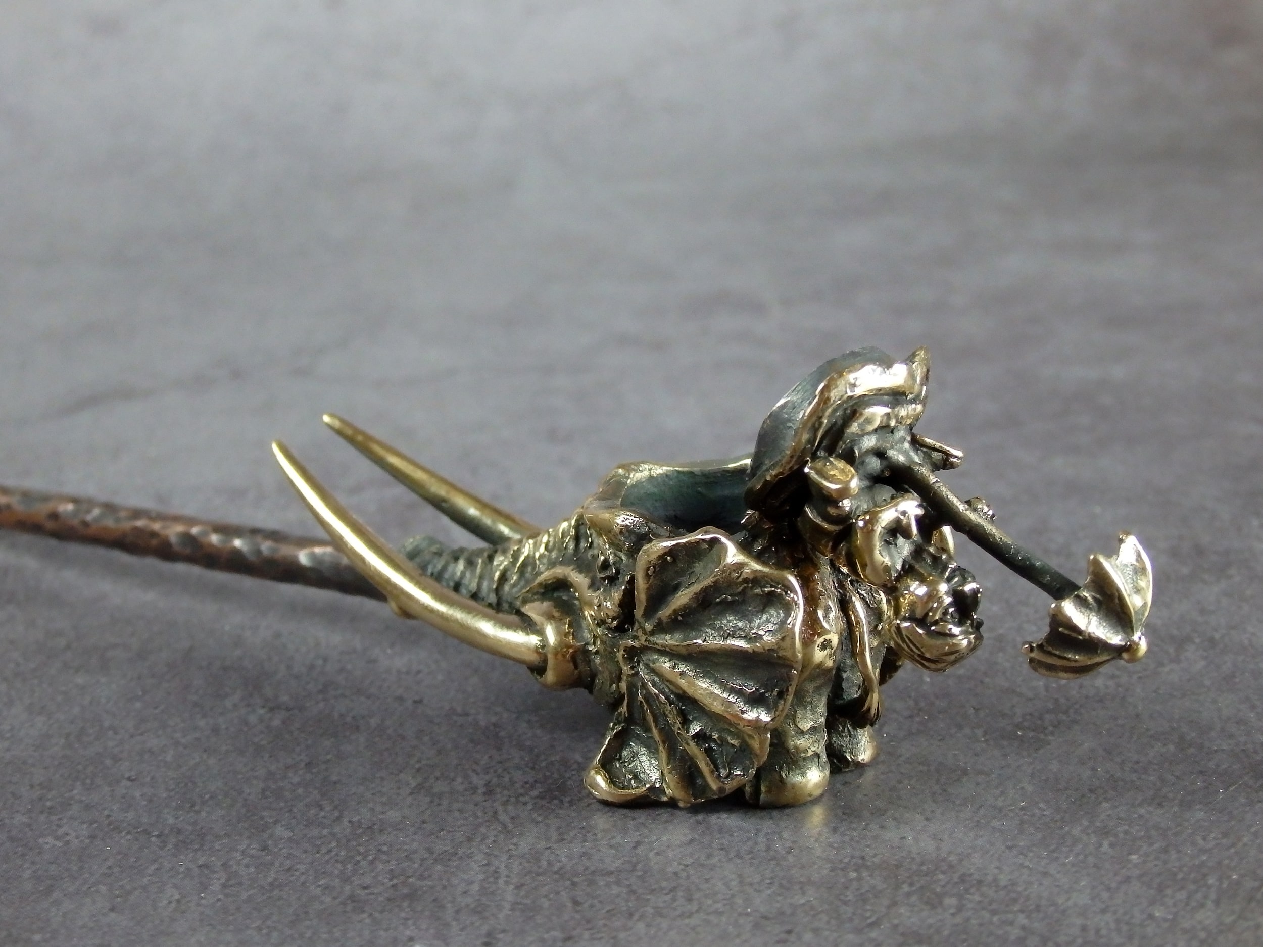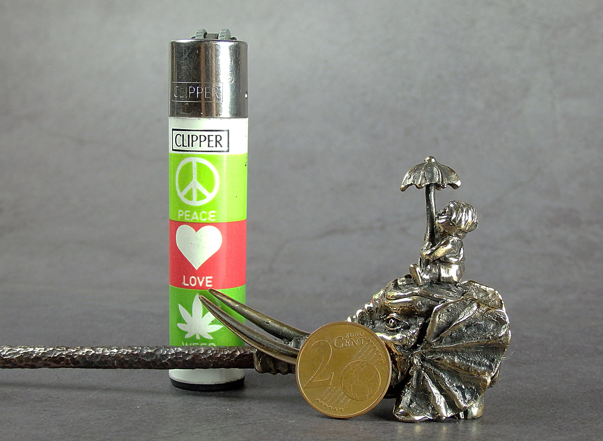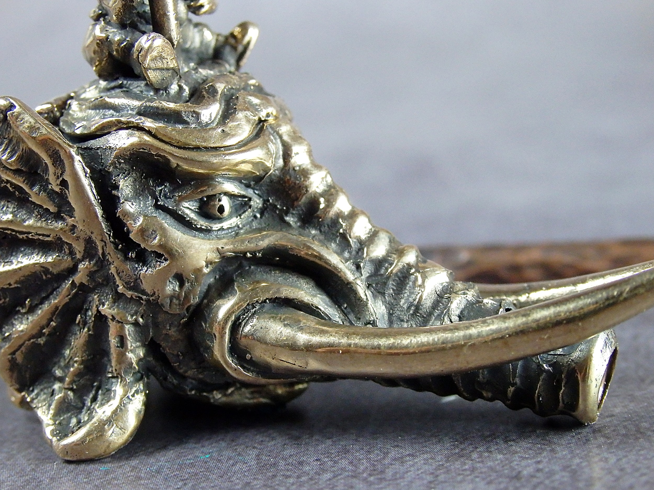 Large heavy bronze smoking pipe with a bowl in the shape of an elephant with a rider. The head has an opening lid and this is not only a smoking accessory, but also a wonderful souvenir. The mouthpiece is made of copper, it is screwed on, can have a length (from 3 to 30 cm) and a shape at the request of the buyer. The pipe is working, not decorative, the model is tested by the master.