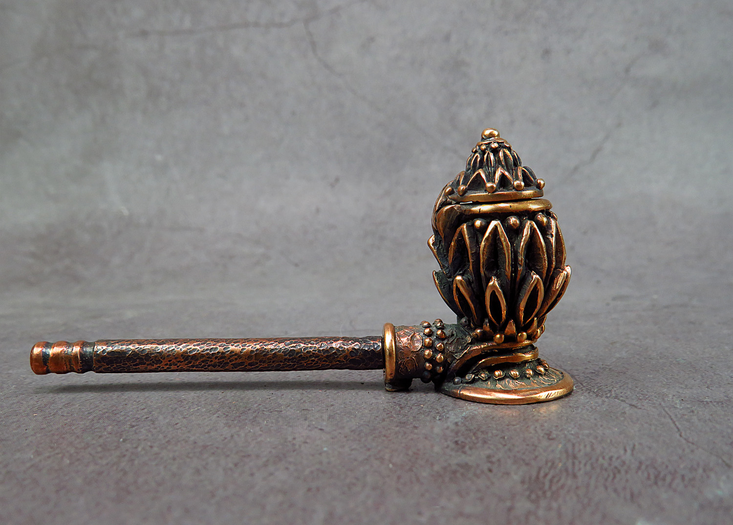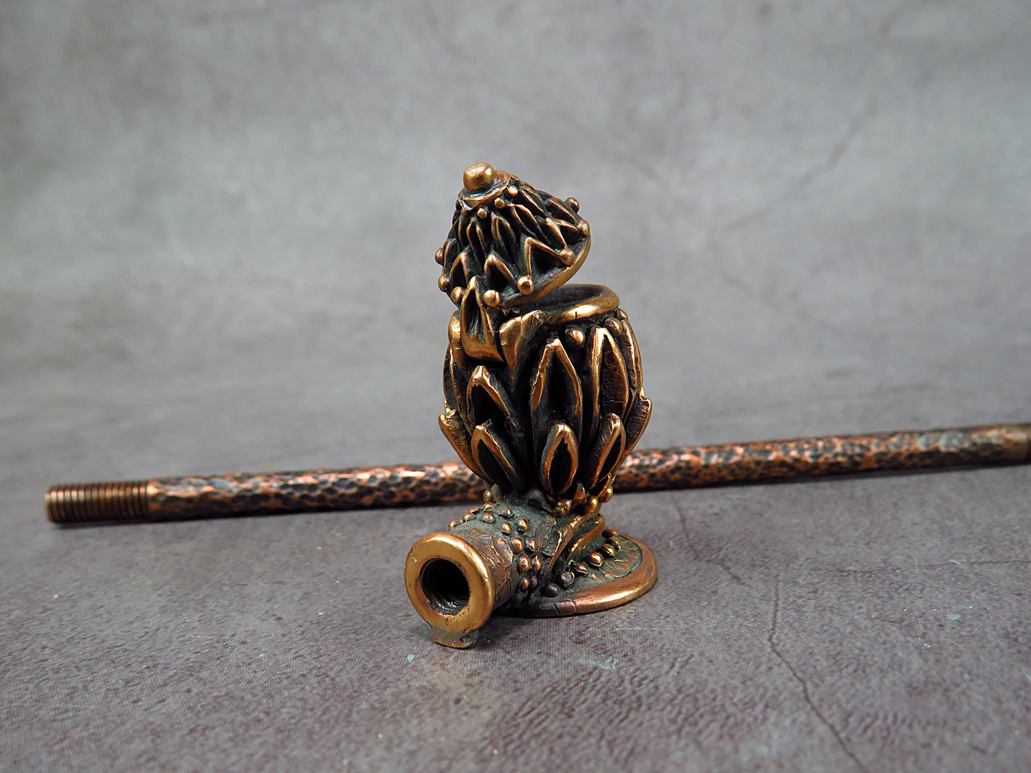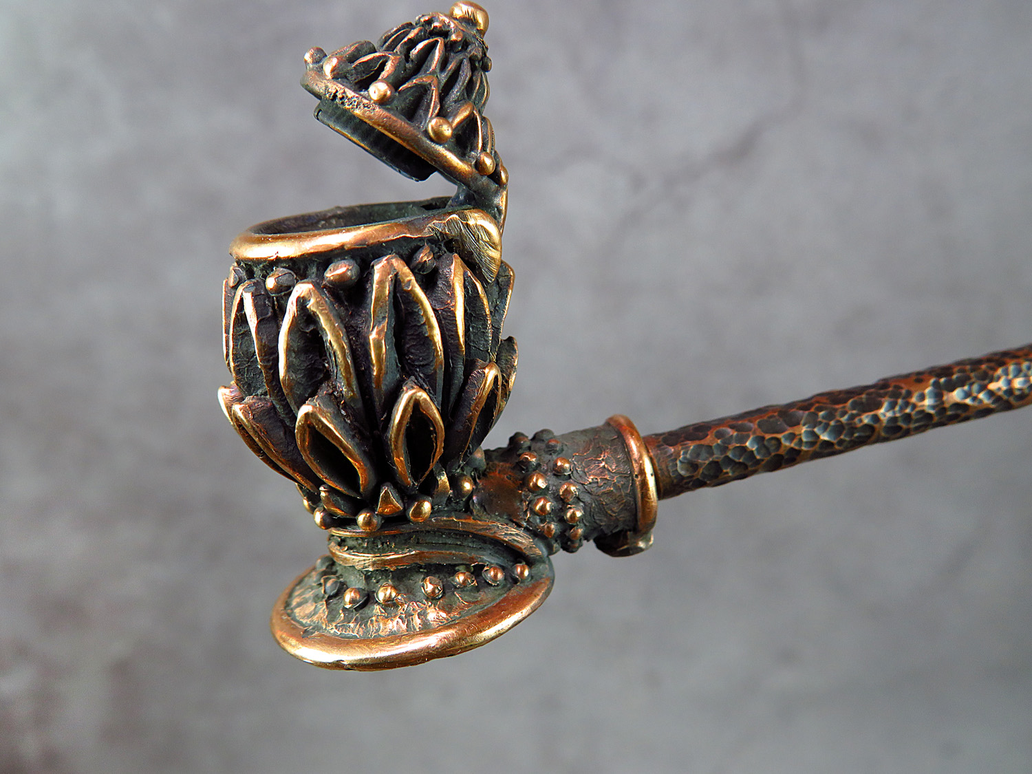 Handmade smoking pipe with lid. The mouthpiece is made of copper, it is screwed on, can have a length (from 3 to 30 cm) and a shape at the request of the buyer. The pipe is working, not decorative, the model is tested by the master.