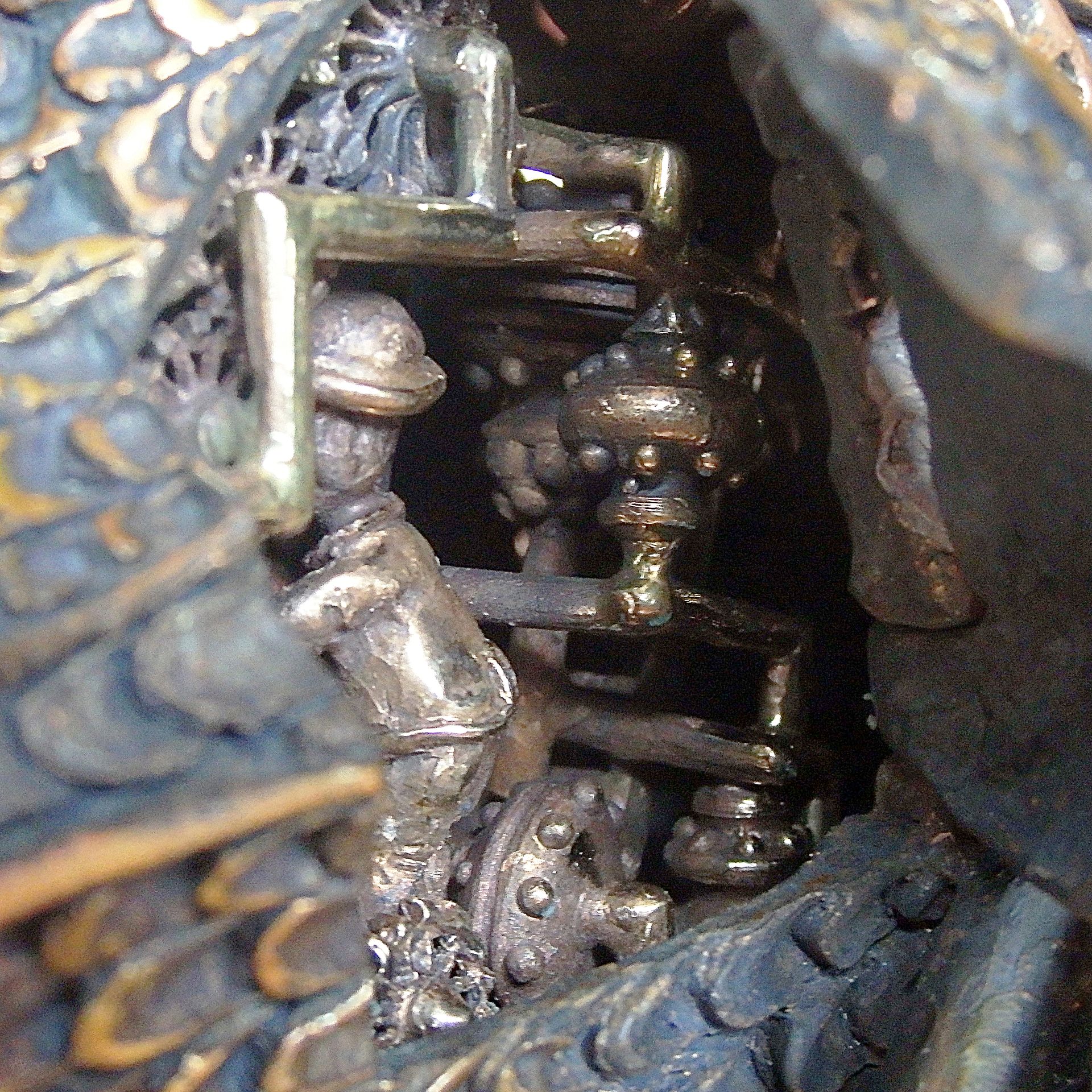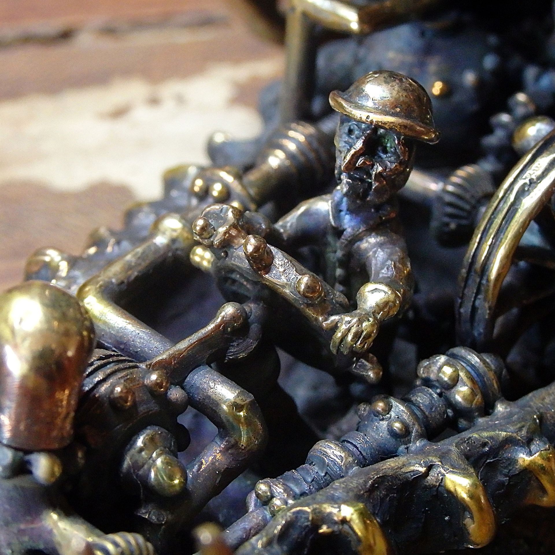 Steampunk interior sculpture, mechanical fish with team inside