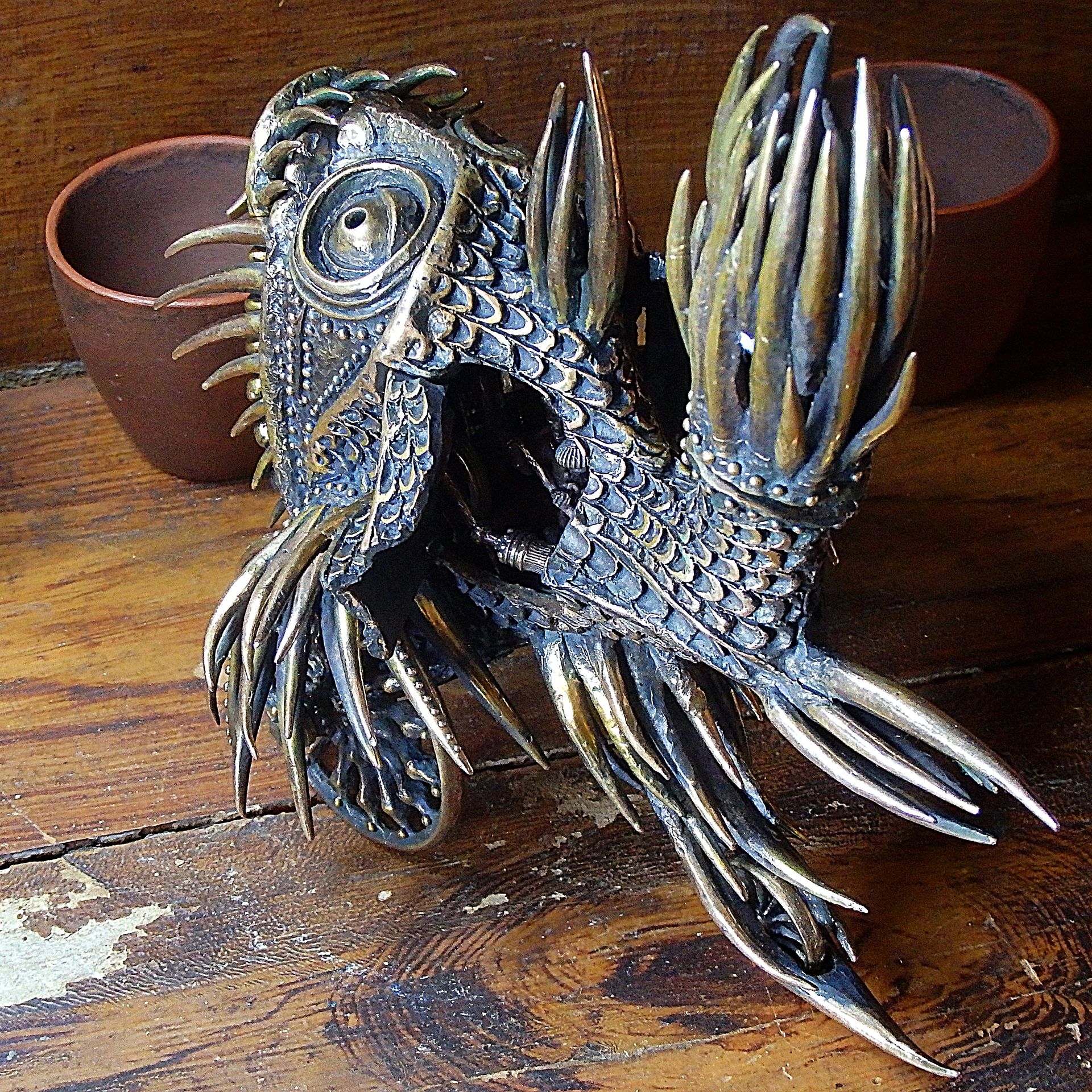Mech-fish is a chic and unusual gift for fans of the Victorian era and steampunk, lovers of Jules Verne novels, and just techies. This big bronze fish is unique and will become a noticeable decoration of any room.