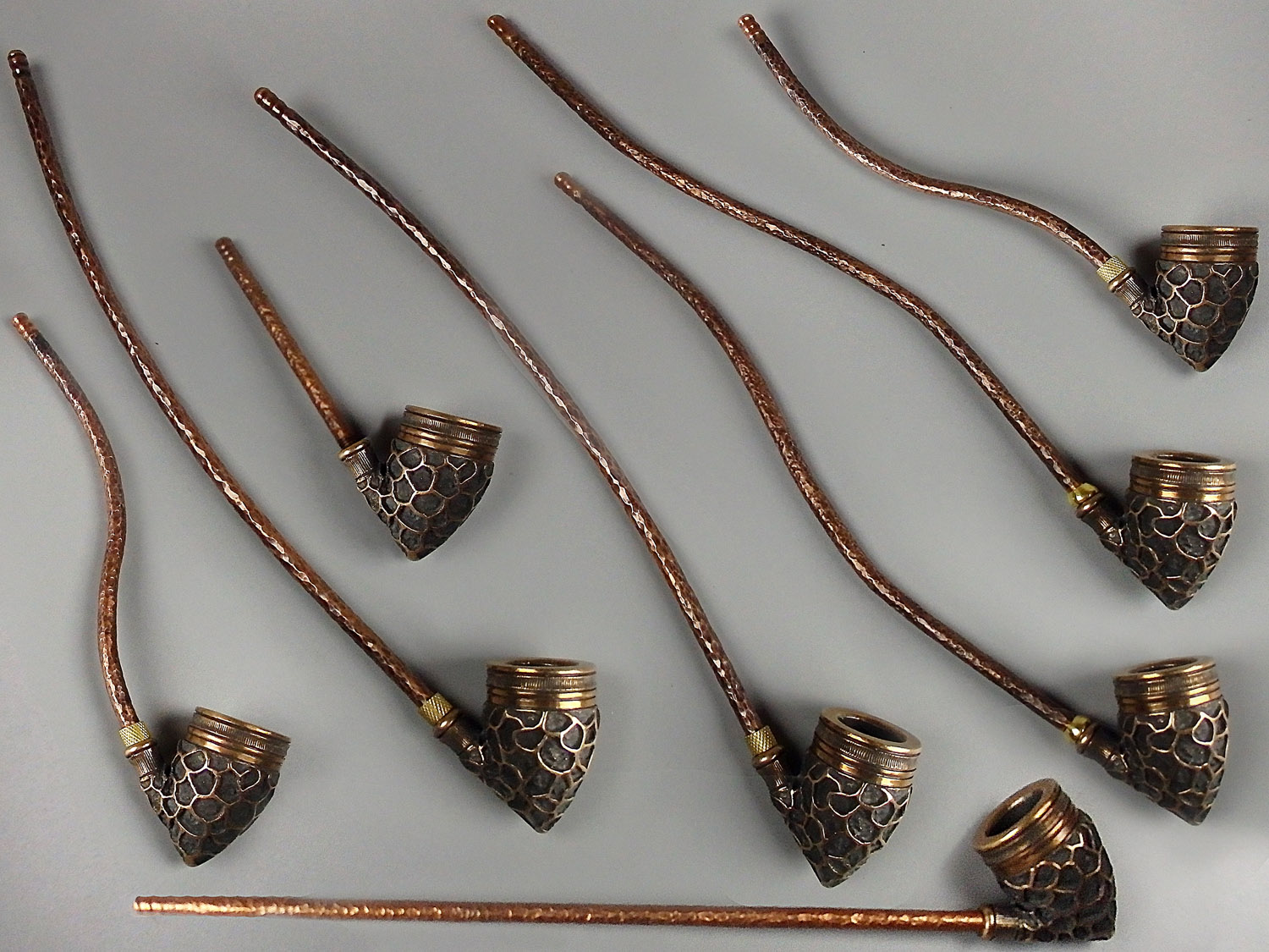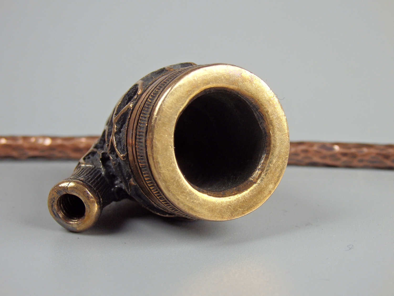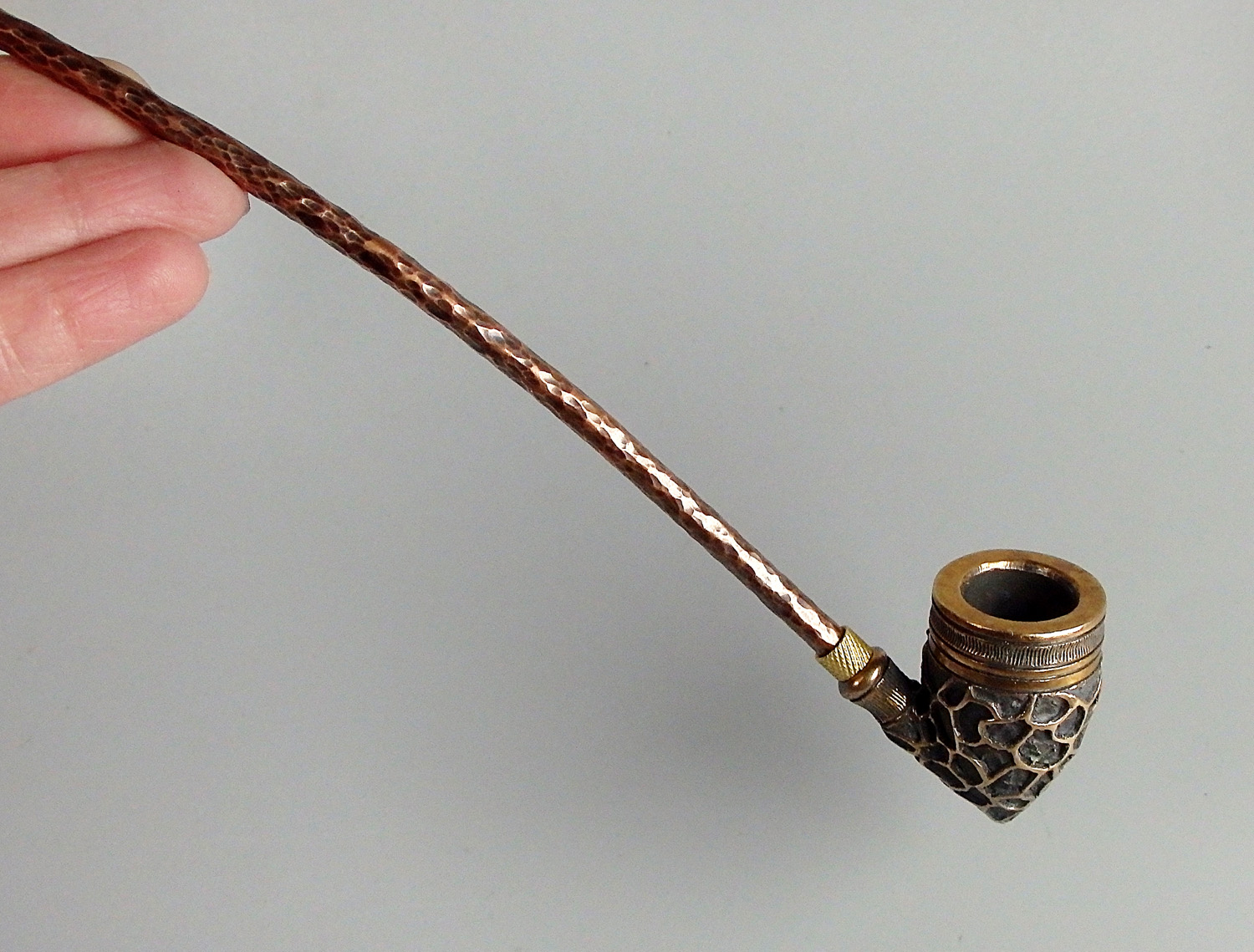 Freehand churchwarden bronze pipe with original grid pattern. The mouthpiece is made of copper, it is screwed on, can have a length (from 5 to 30 cm) and a shape at the request of the buyer. The pipe is working, not decorative, the model is tested by the master.