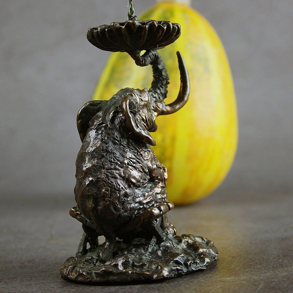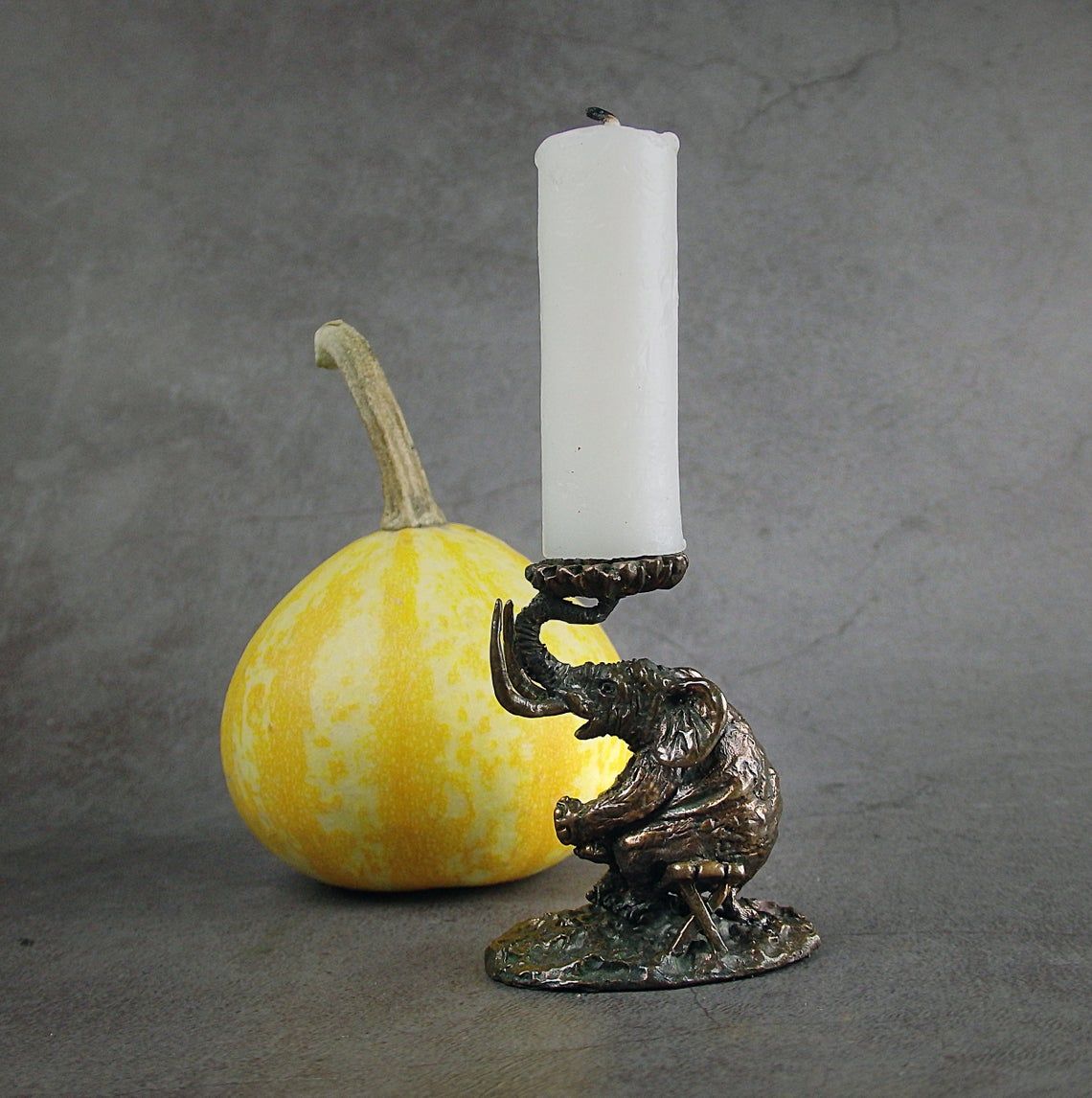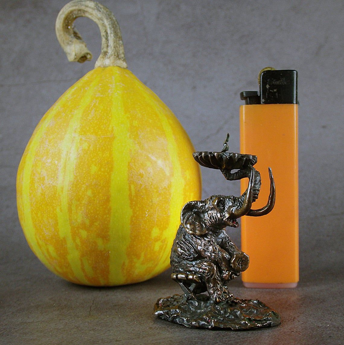 Funny bronze candlestick. This small resting pensive elephant will be a great symbolic gift for people with a philosophical mindset, parents or caring spouses, and lovers of original figurines.