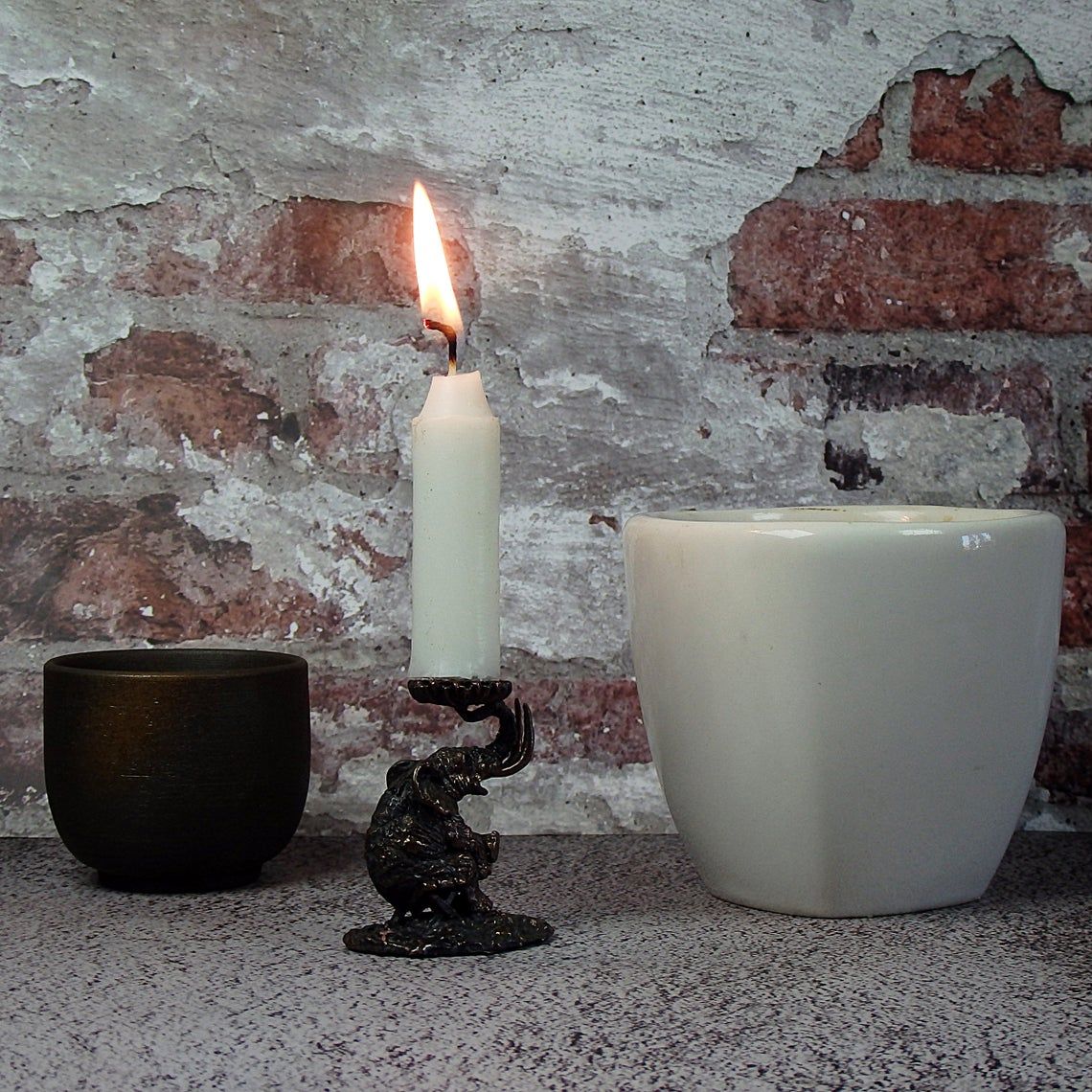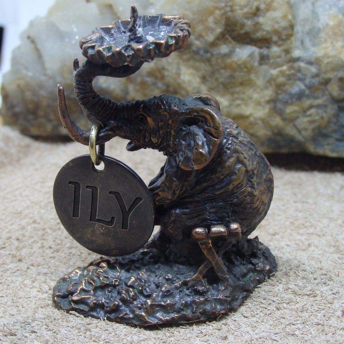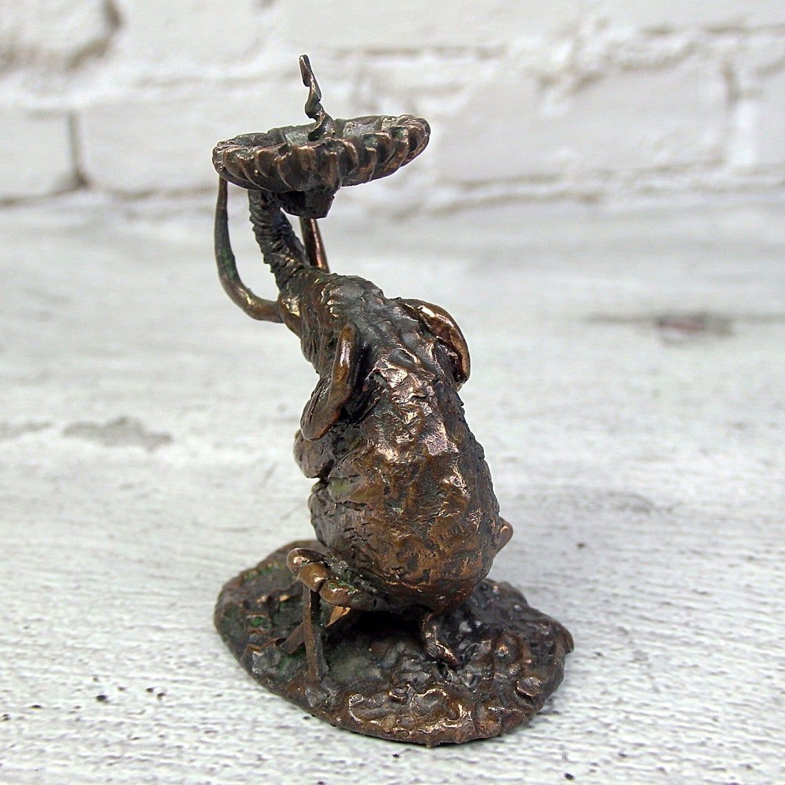 Funny bronze candlestick. This small resting pensive elephant will be a great symbolic gift for people with a philosophical mindset, parents or caring spouses, and lovers of original figurines.