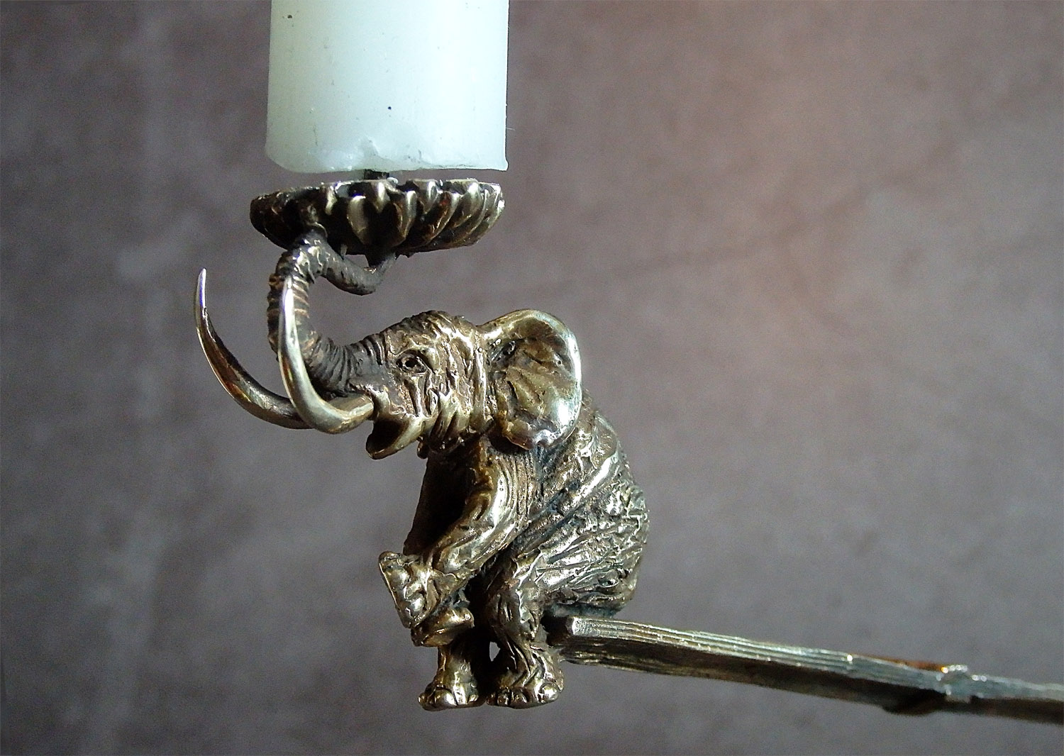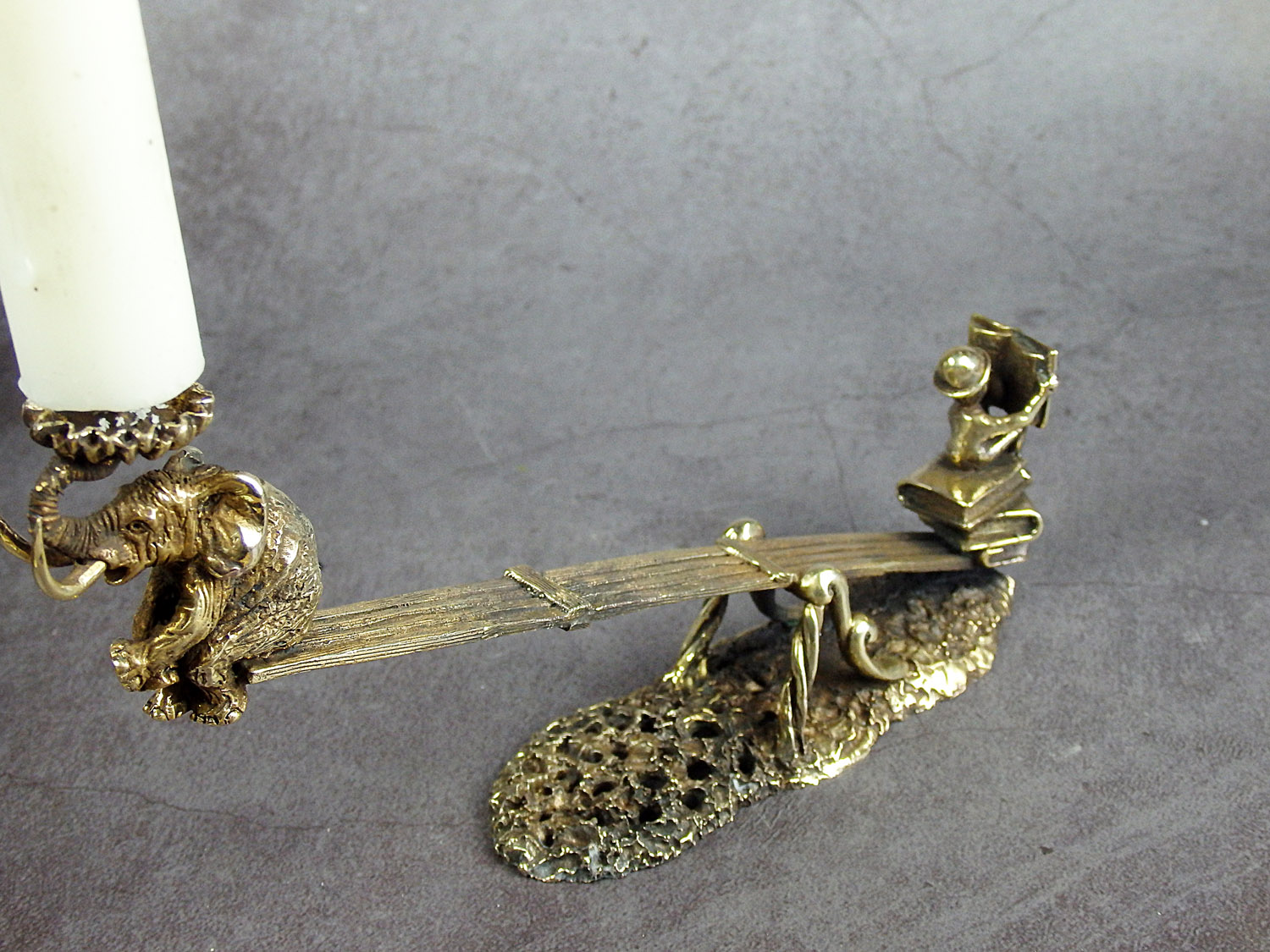 This candlestick "Two on a swing" can be in a set with a candlestick "Elephant on the bench".