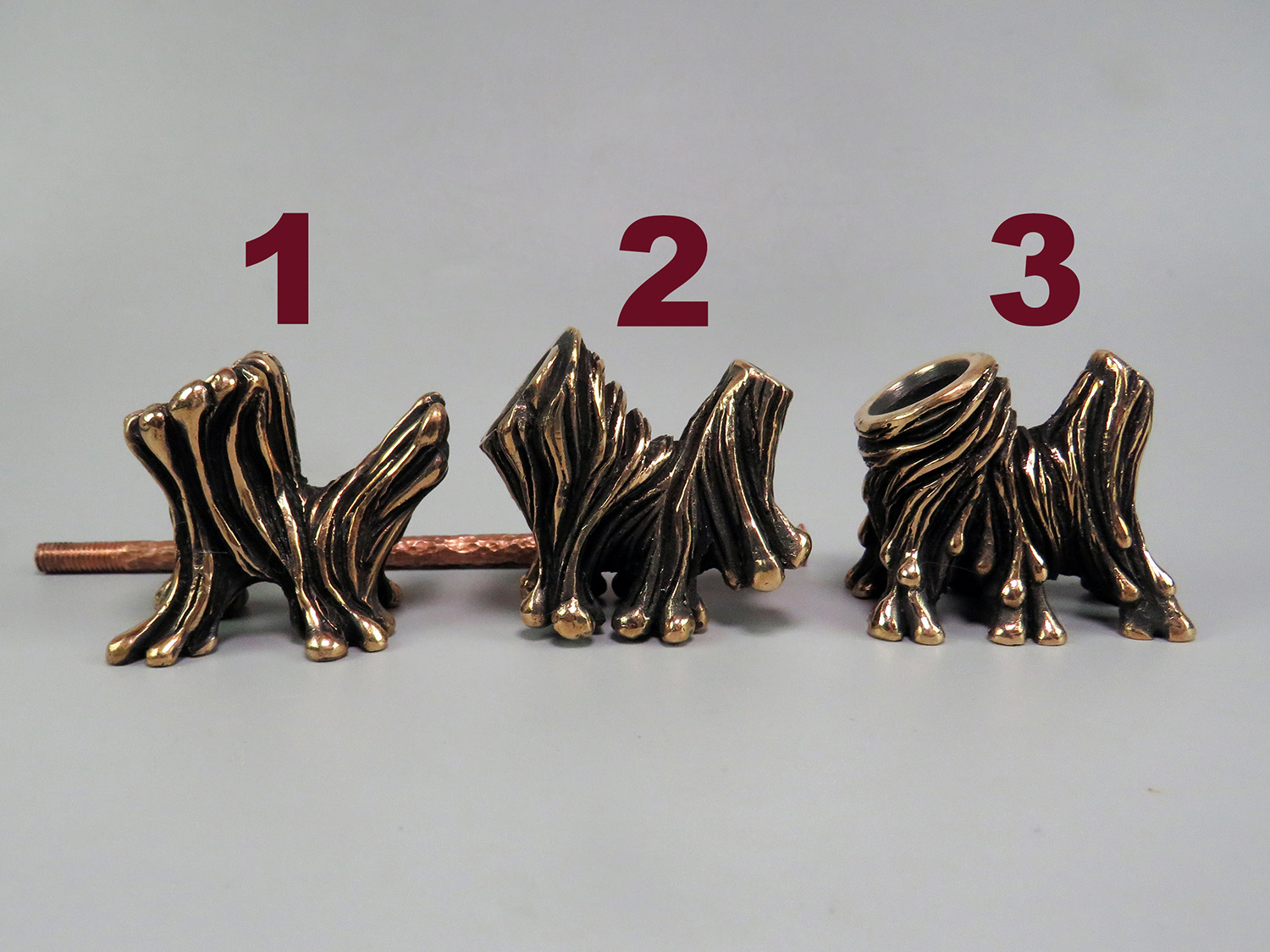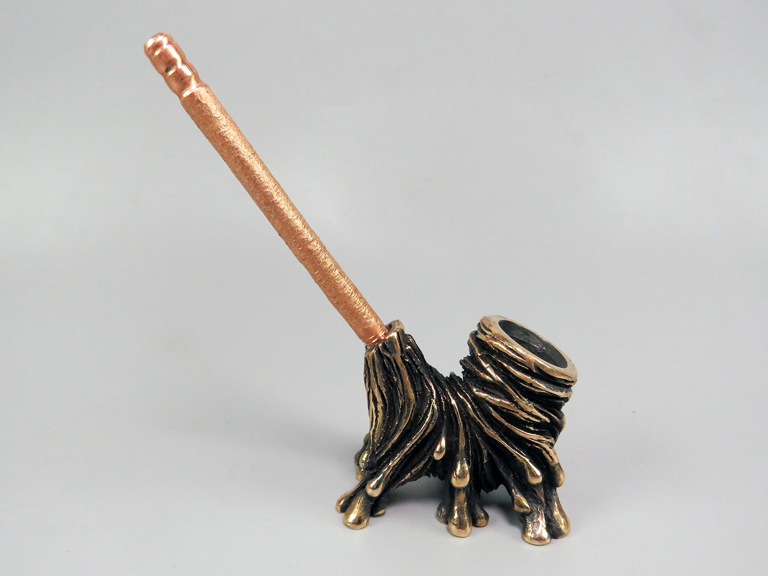 A bronze pipe in the shape of a Mischief Stump—a wild, fairytale puppy an Ents might have.