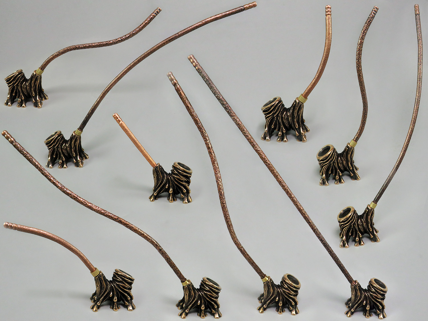 A bronze pipe in the shape of a Mischief Stump—a wild, fairytale puppy an Ents might have.