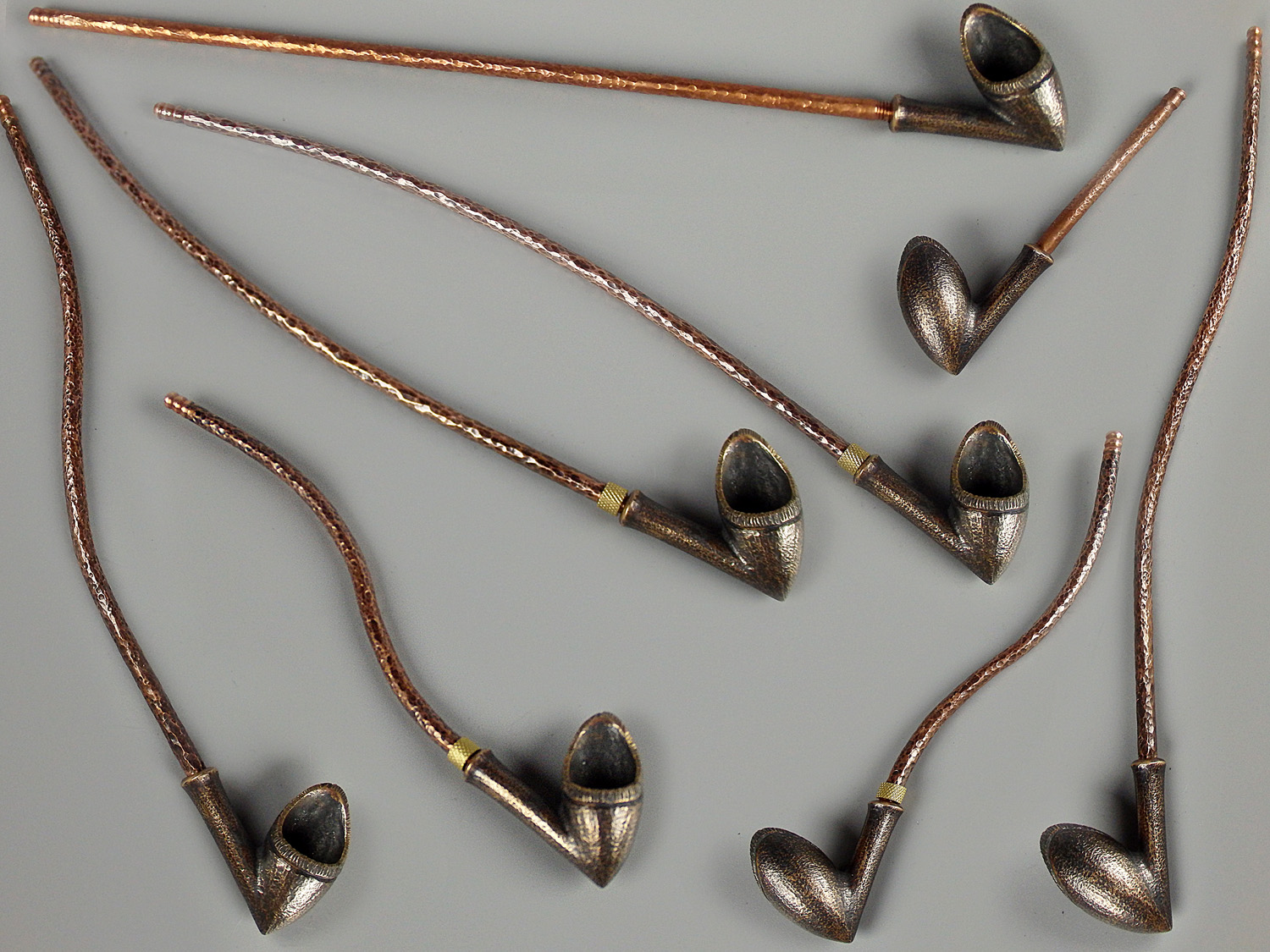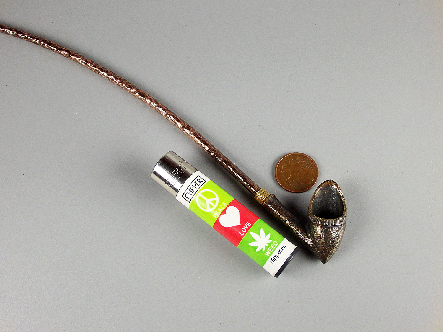 The mouthpiece is made of copper, it is screwed on, can have a length (from 5 to 30 cm) and a shape at the request of the buyer. The pipe is working, not decorative, the model is tested by the master.