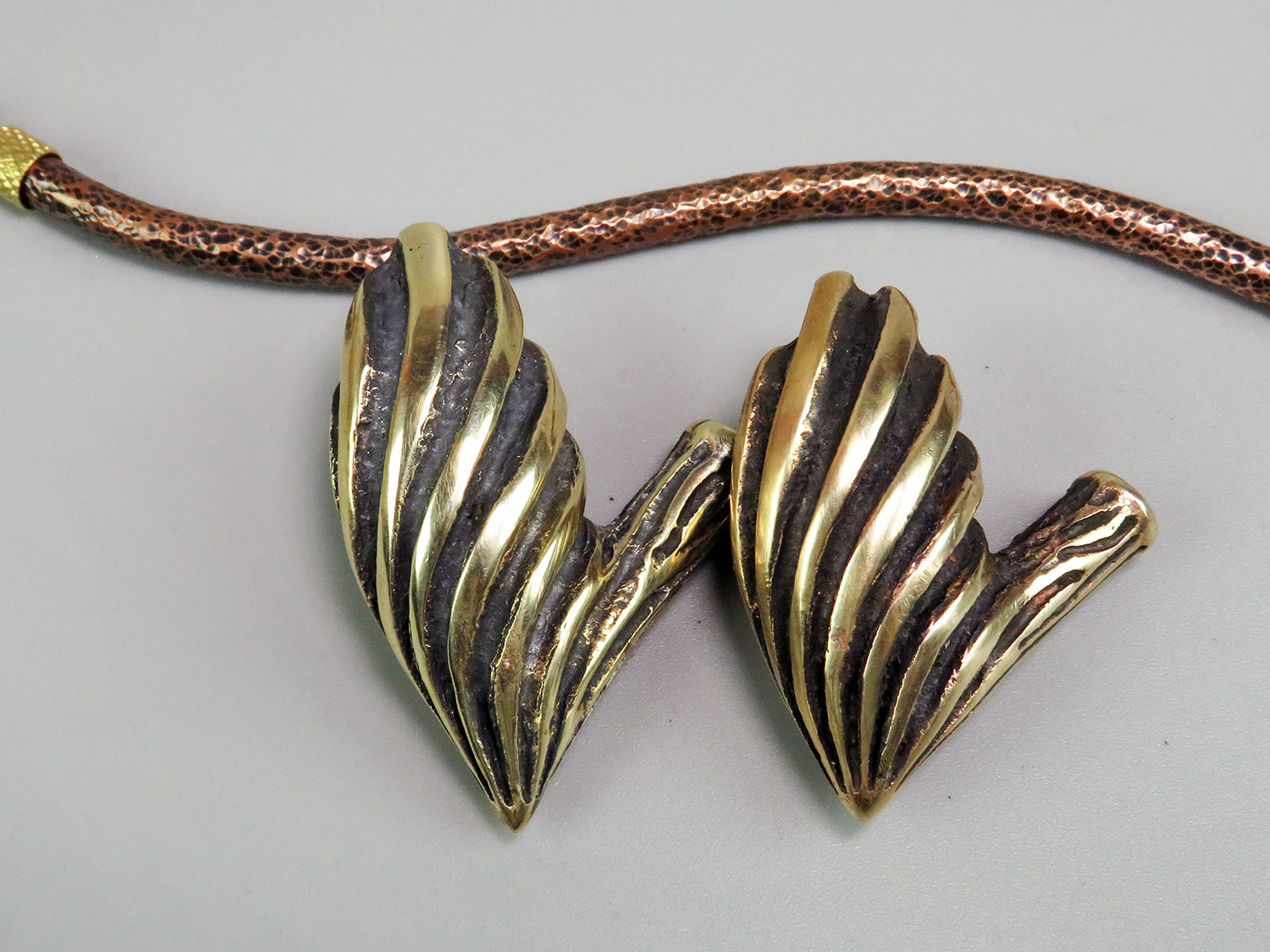 To make this item, a wax model was cut out by hand. Then, using the lost wax method, bronze parts were cast.