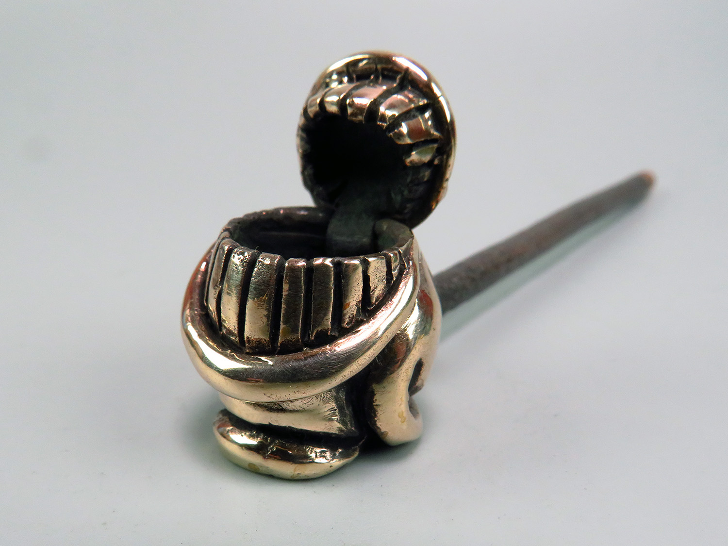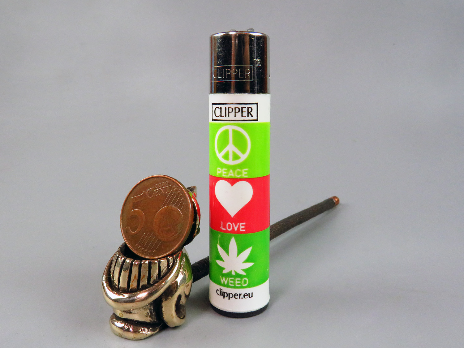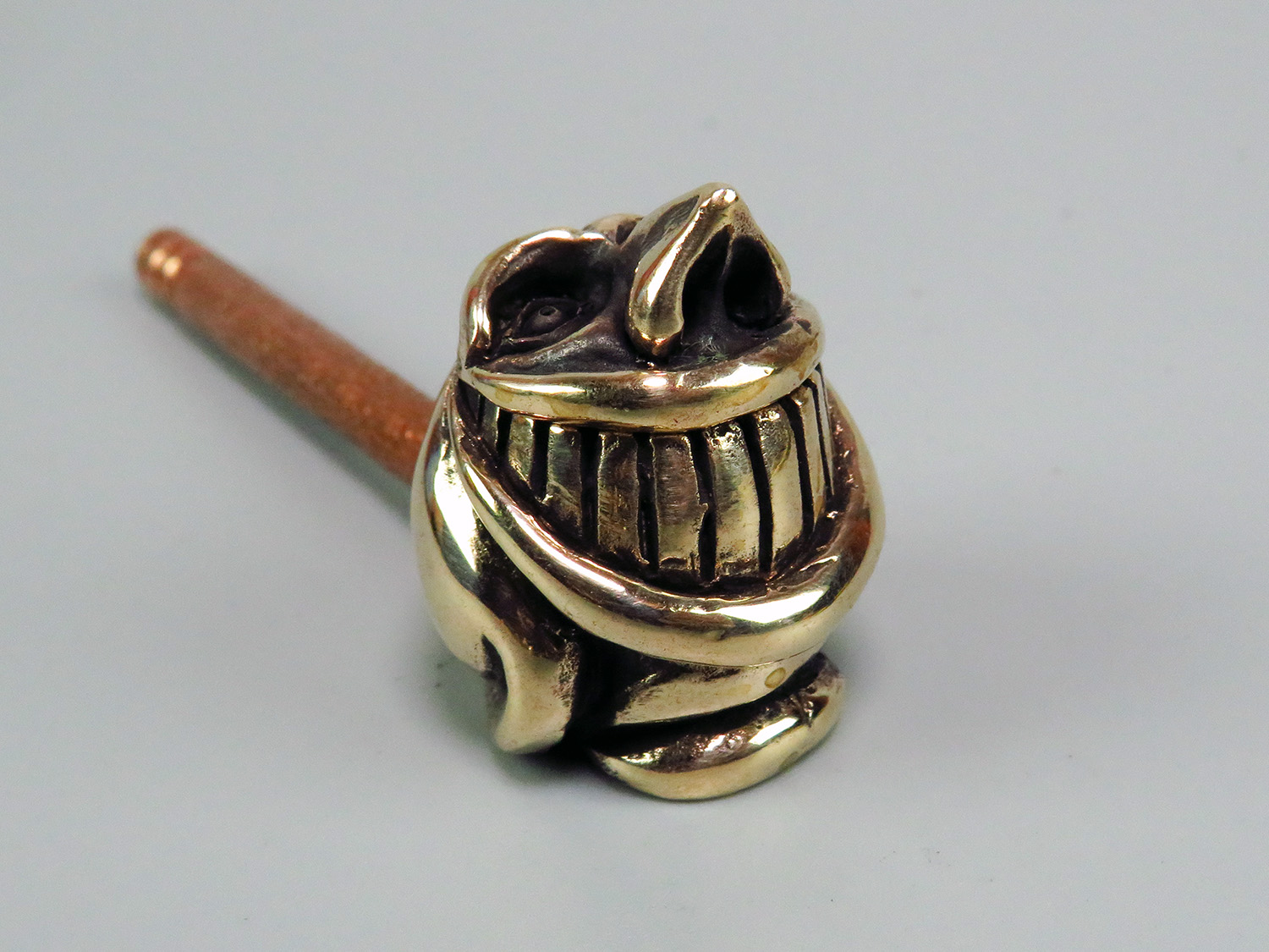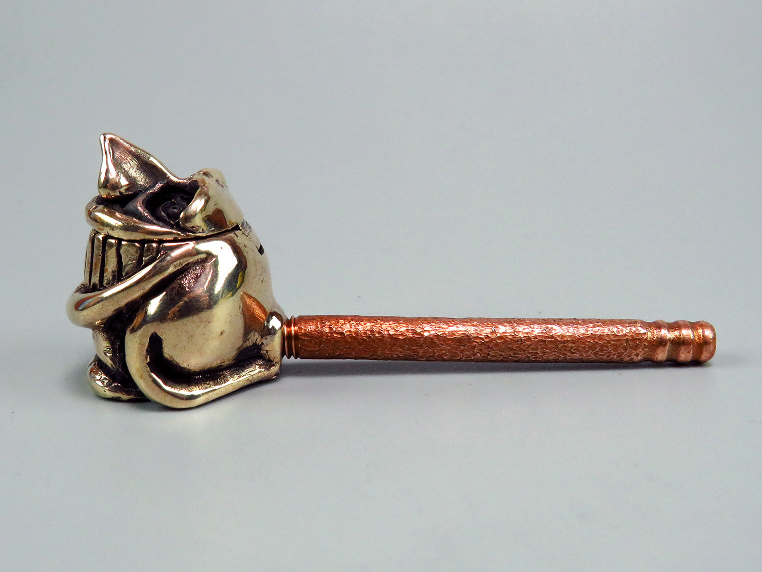 Original bronze pipe in the form of an unshakable optimist with a wide smile that can overcome any troubles. This pipe will be a great gift for those who like to laugh, collectors of the strange and just to lift the mood. The mouthpiece is made of copper, it is screwed on, can have a length (from 3 to 30 cm) and a shape at the request of the buyer.