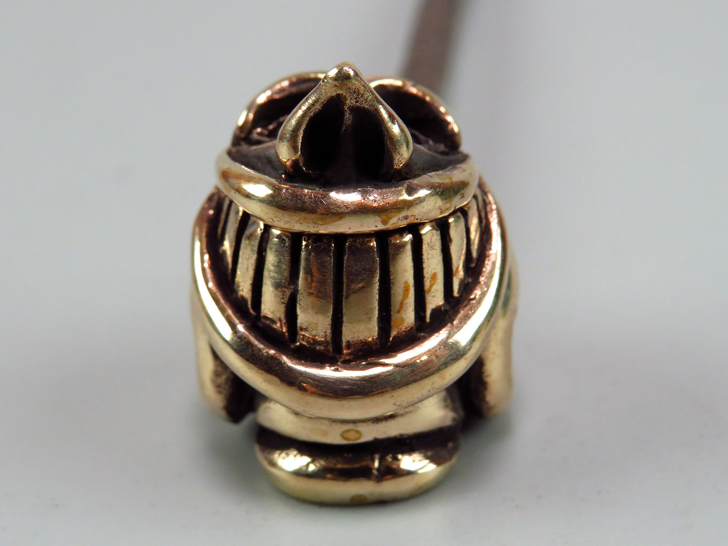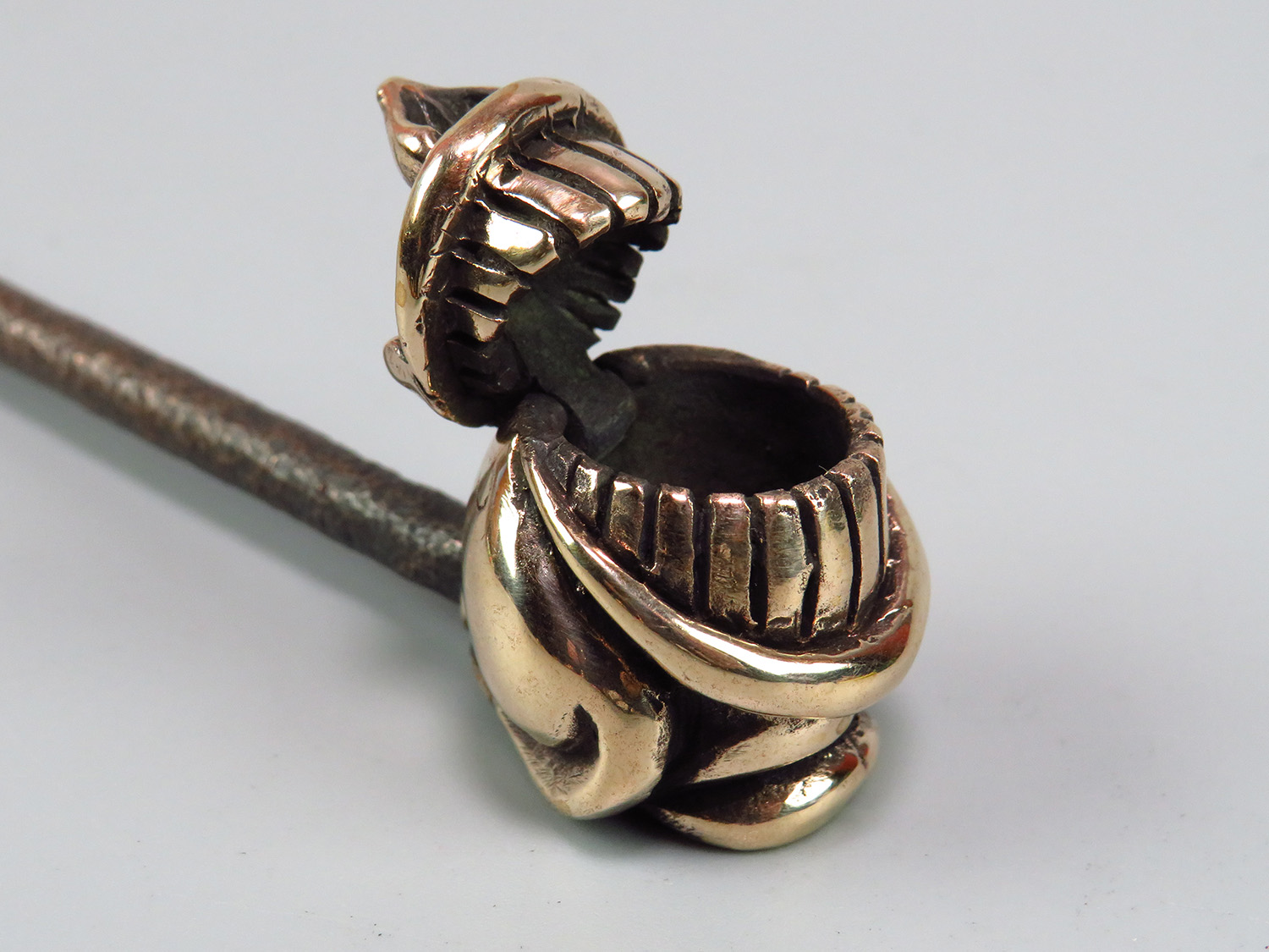 To make this item, a wax model was cut out by hand. Then, using the lost wax method, bronze parts were cast.