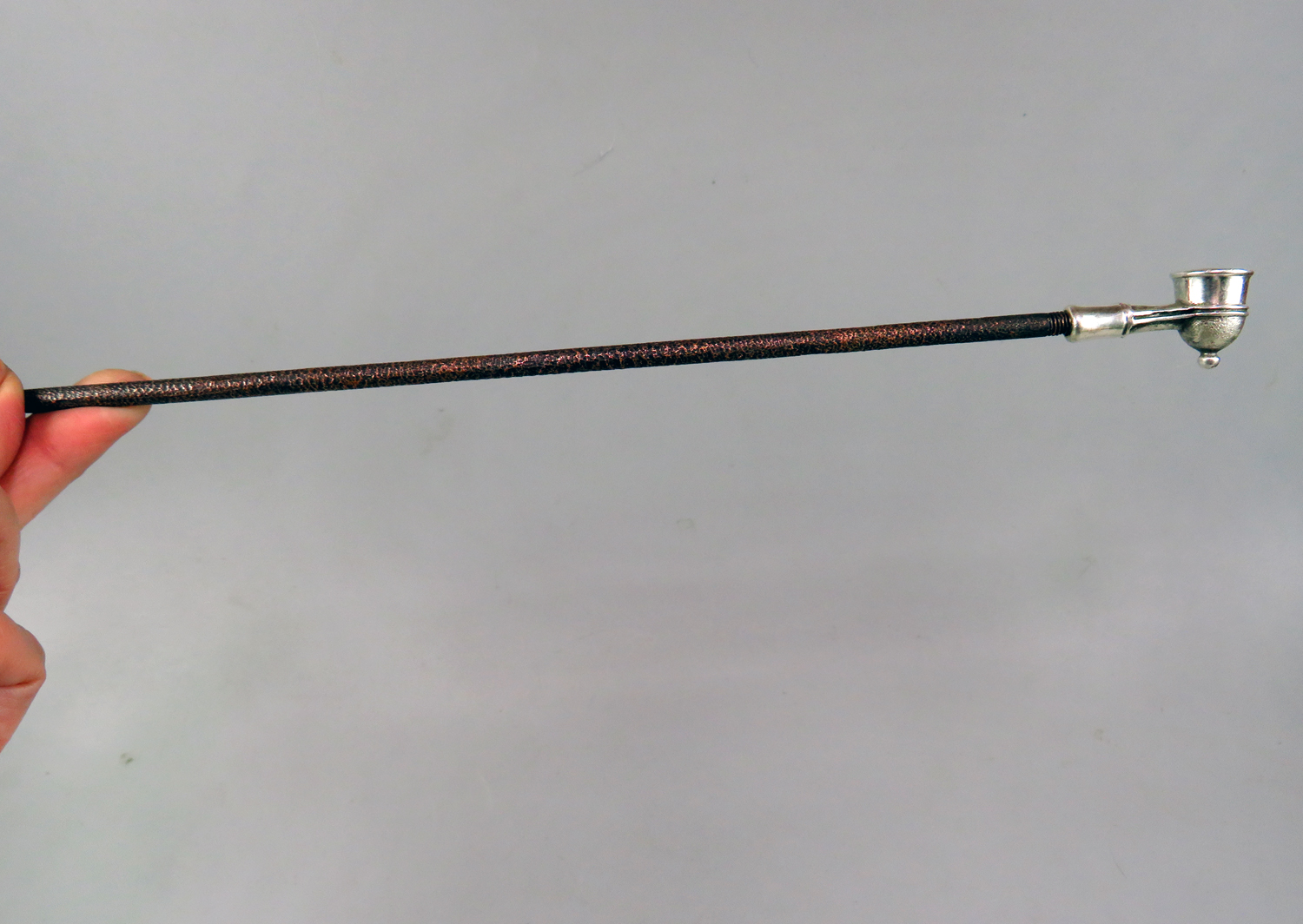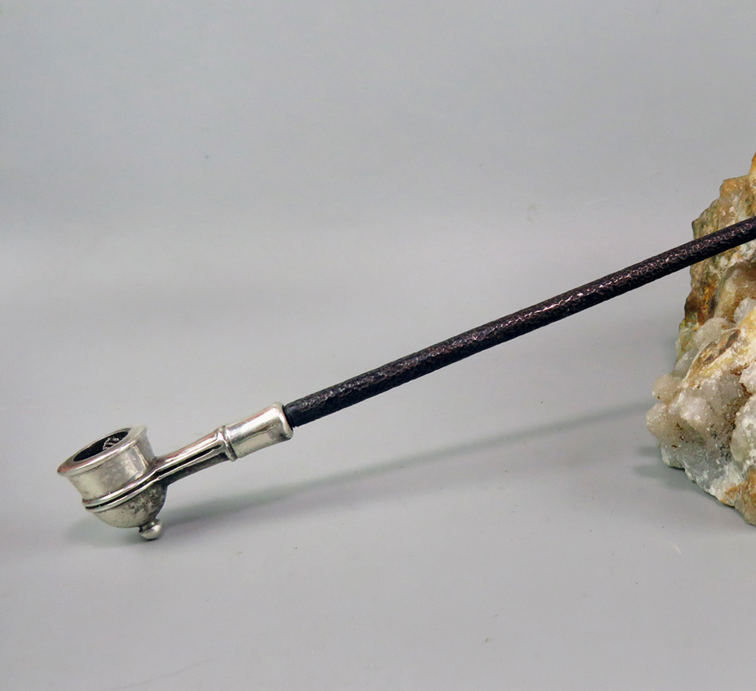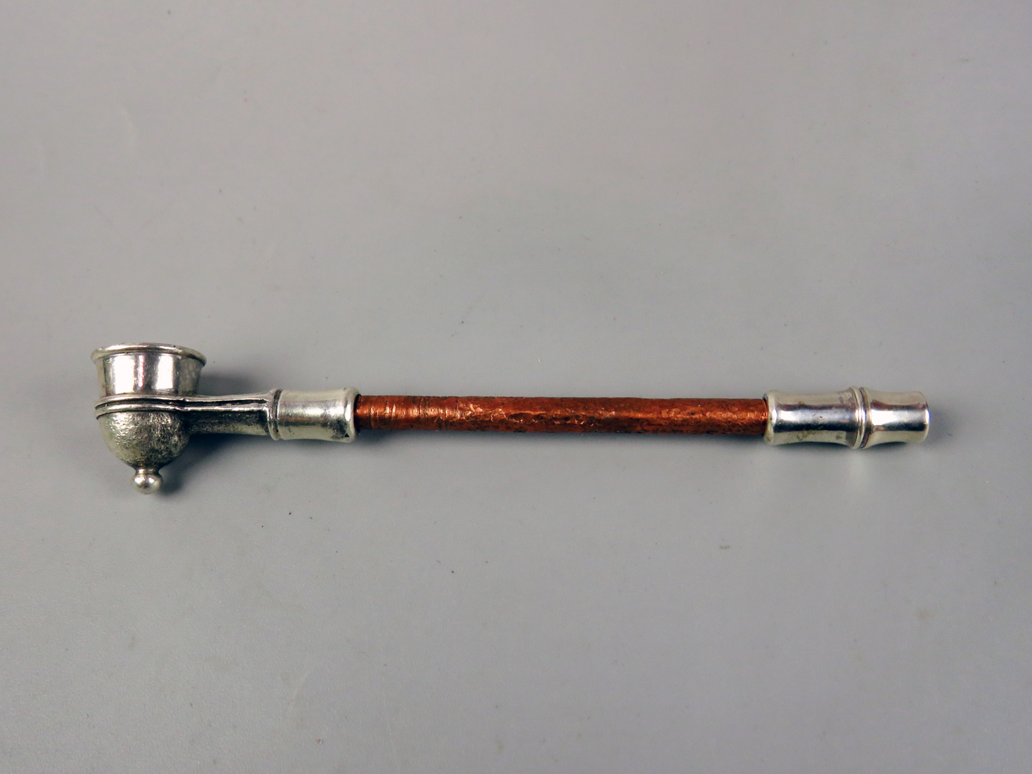 Original silver pipe in Eastern style with long mouthpiece. It will look very elegant with a long straight mouthpiece, in Gatsby style, and with a short mouthpiece it will fit even in a small pocket or case.