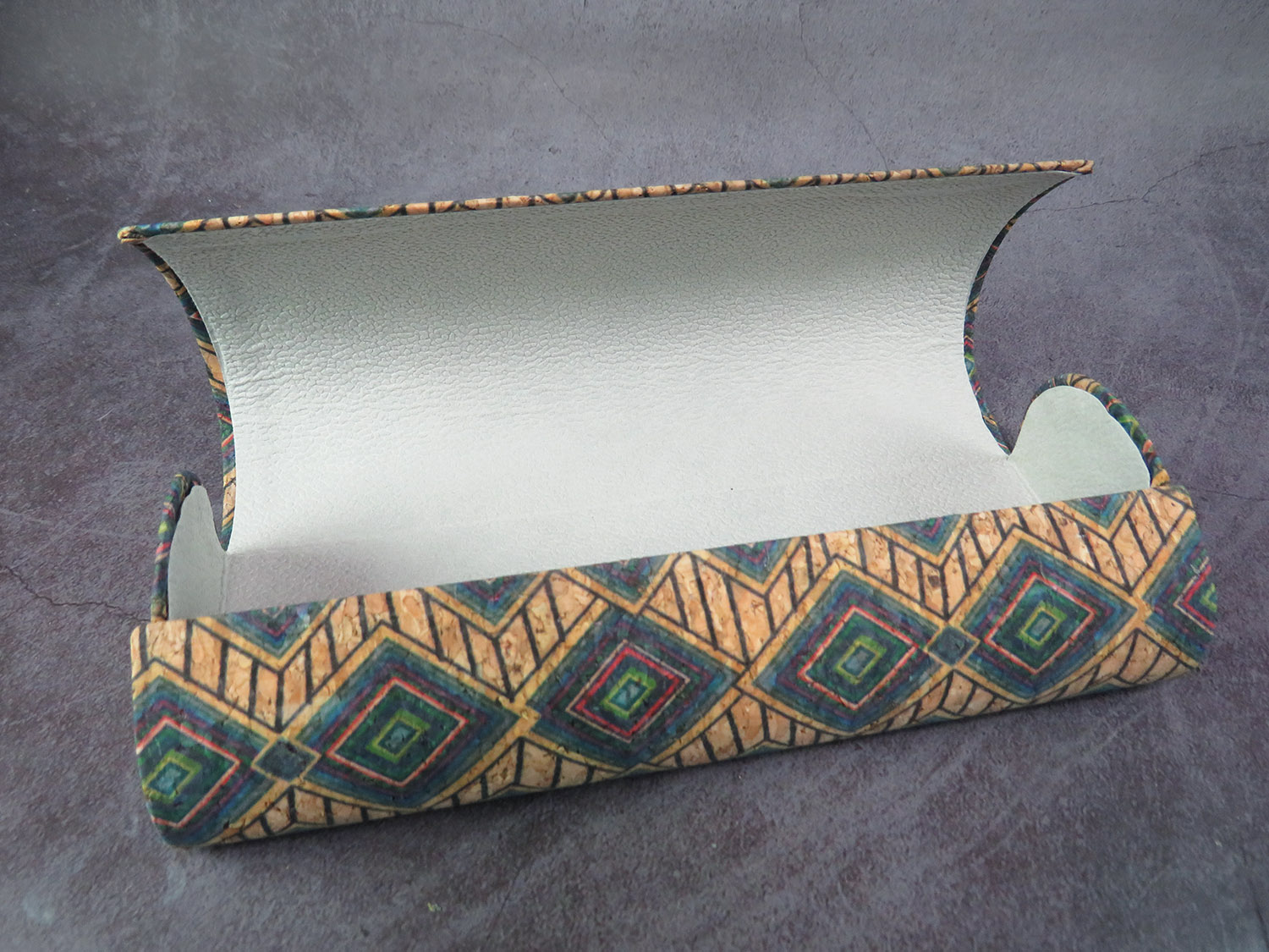 Hard case made of faux leather and artificial cork in rustic style.