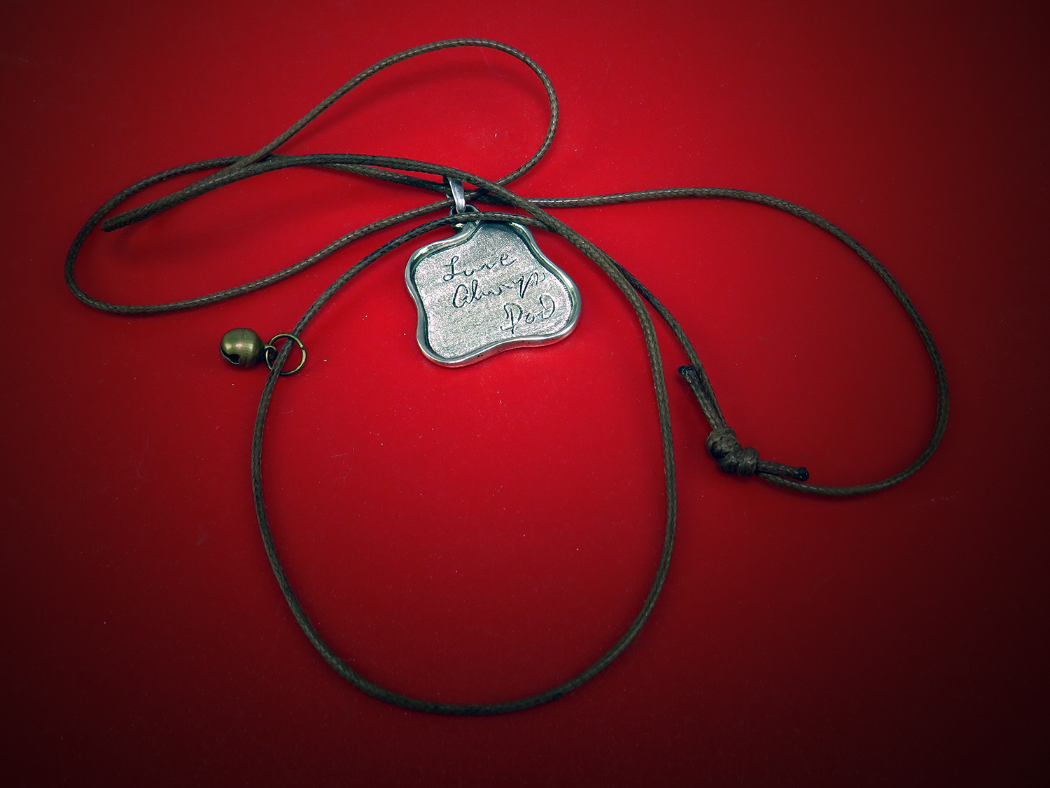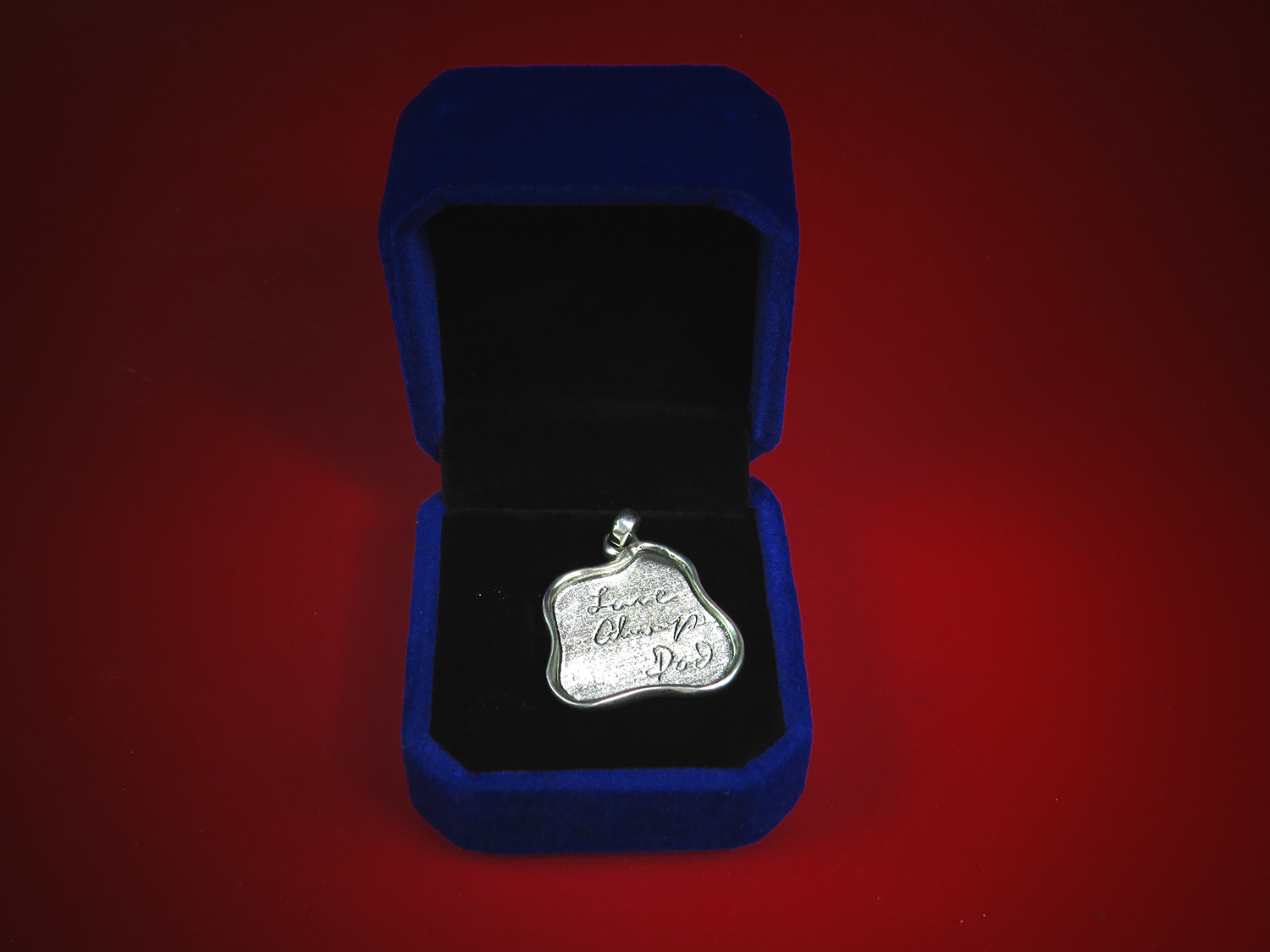 Unique irregular silver pendant with your text, a memorable date, or a dedication to a loved one. The pendant is double-sided, so an inscription (or signature) can be made on both sides.