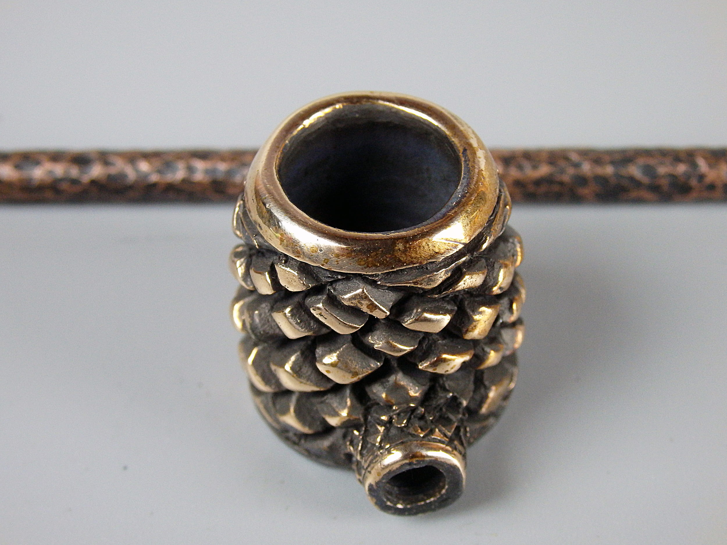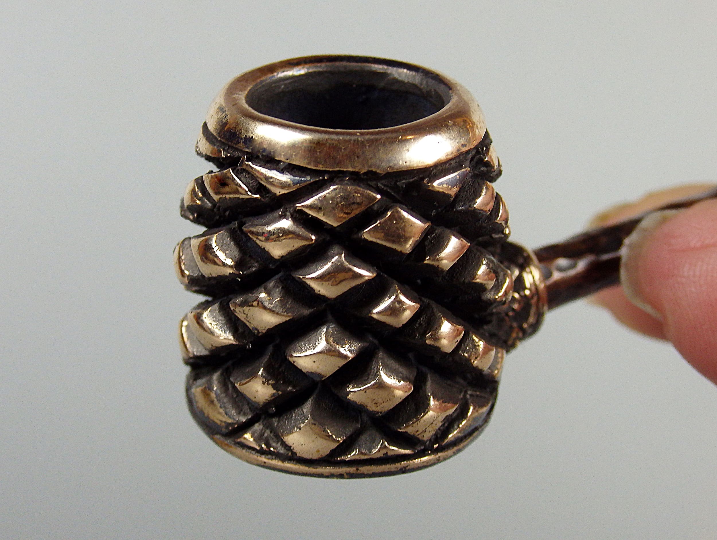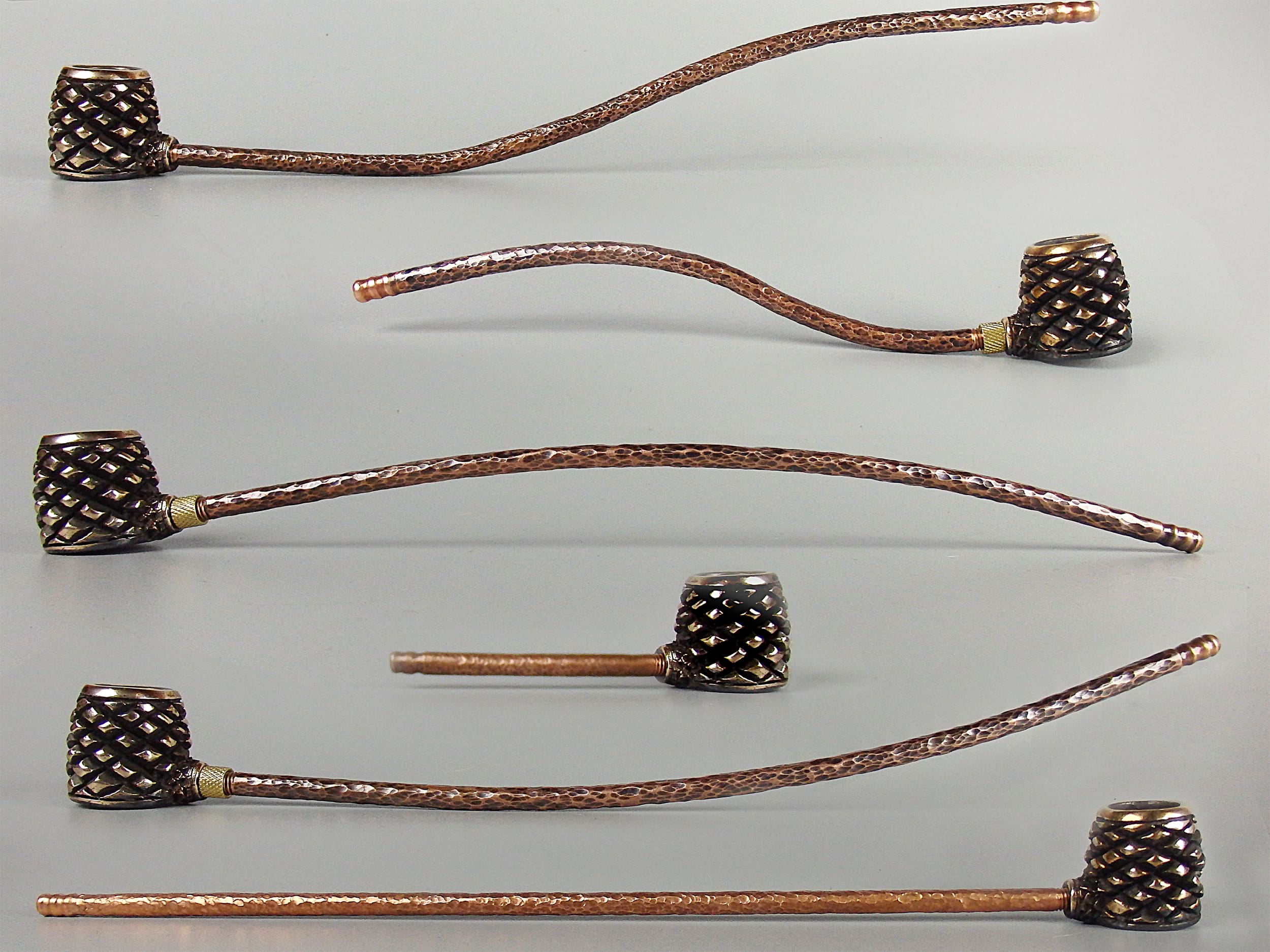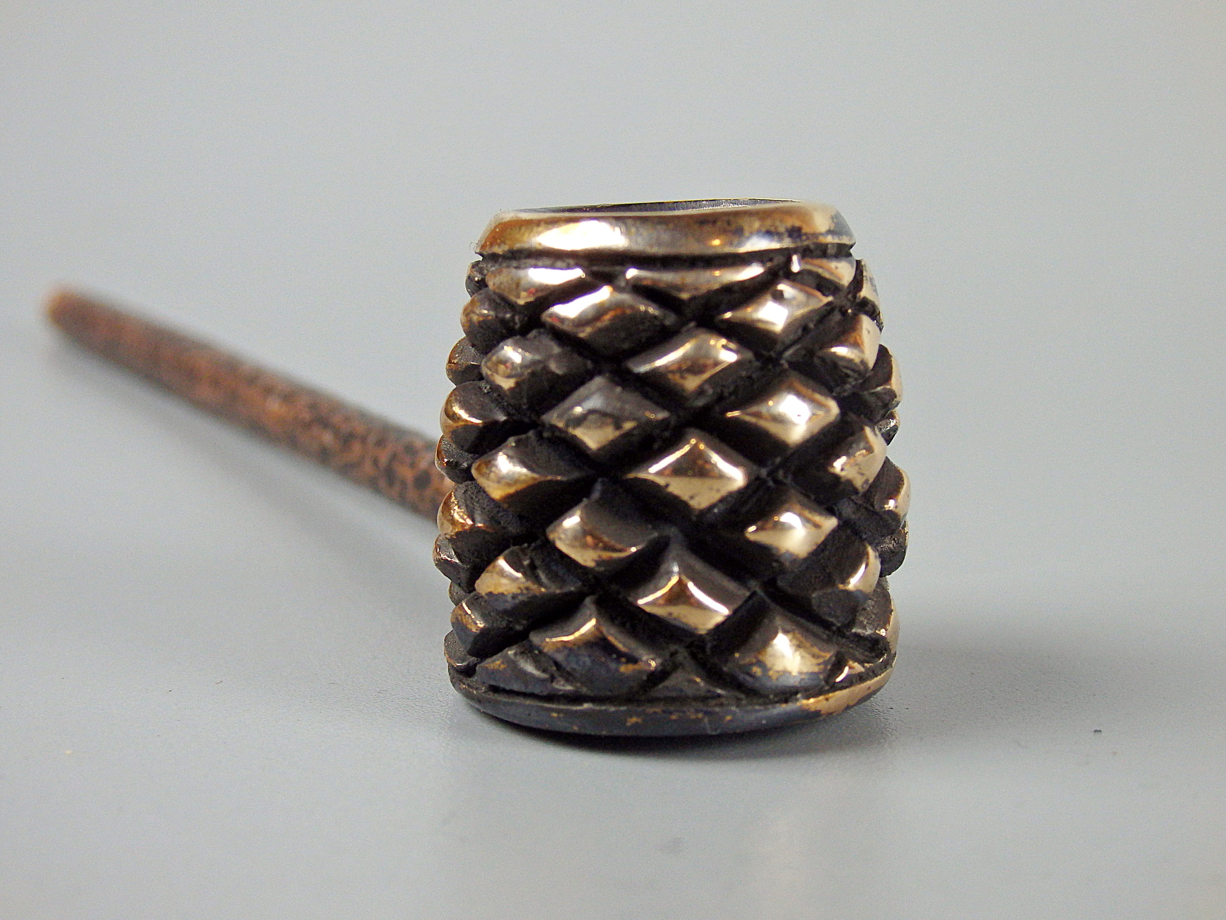 Bronze smoking pipe with a bowl in the shape of pineapple without top. The mouthpiece is made of copper, it is screwed on, can have a length (from 3 to 30 cm) and a shape at the request of the buyer. The pipe is working, not decorative, the model is tested by the master.