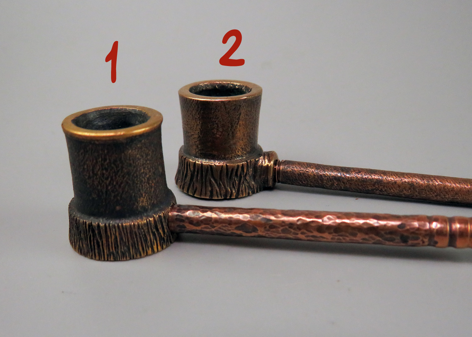 The bowls are available in two versions. The mouthpiece is made of copper, it is screwed on, can have a length (from 3 to 30 cm) and a shape at the request of the buyer. The pipe is working, not decorative, the model is tested by the master.