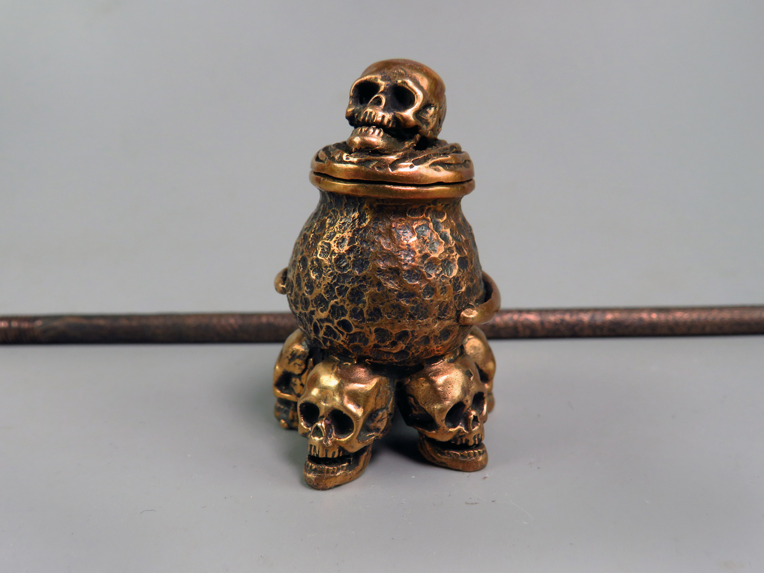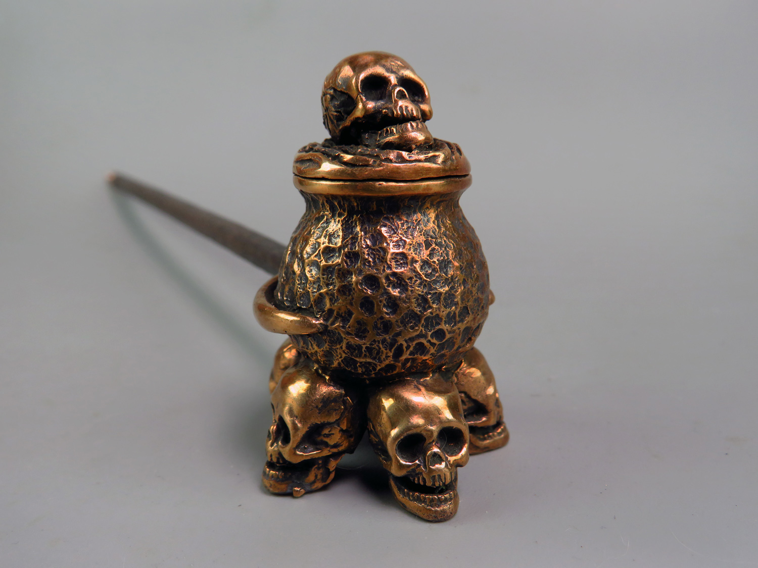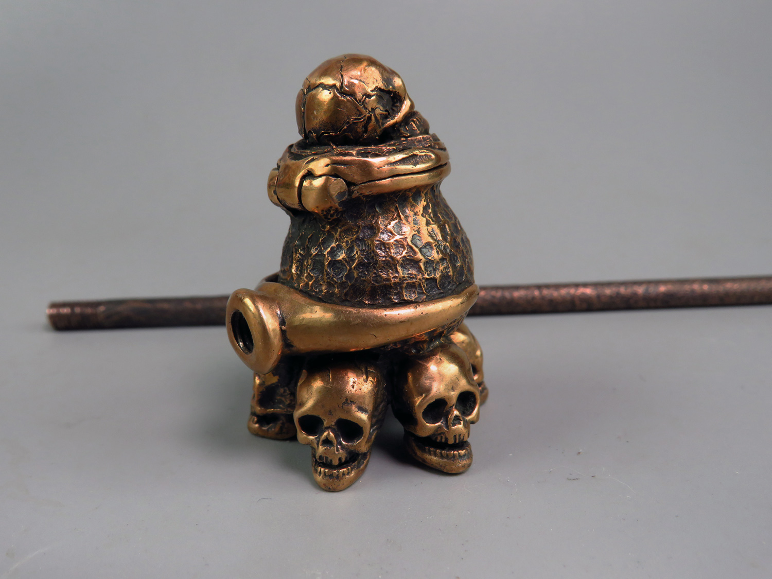 The skull is made by hand (without using computer technology) from bronze according to the author's sketch.