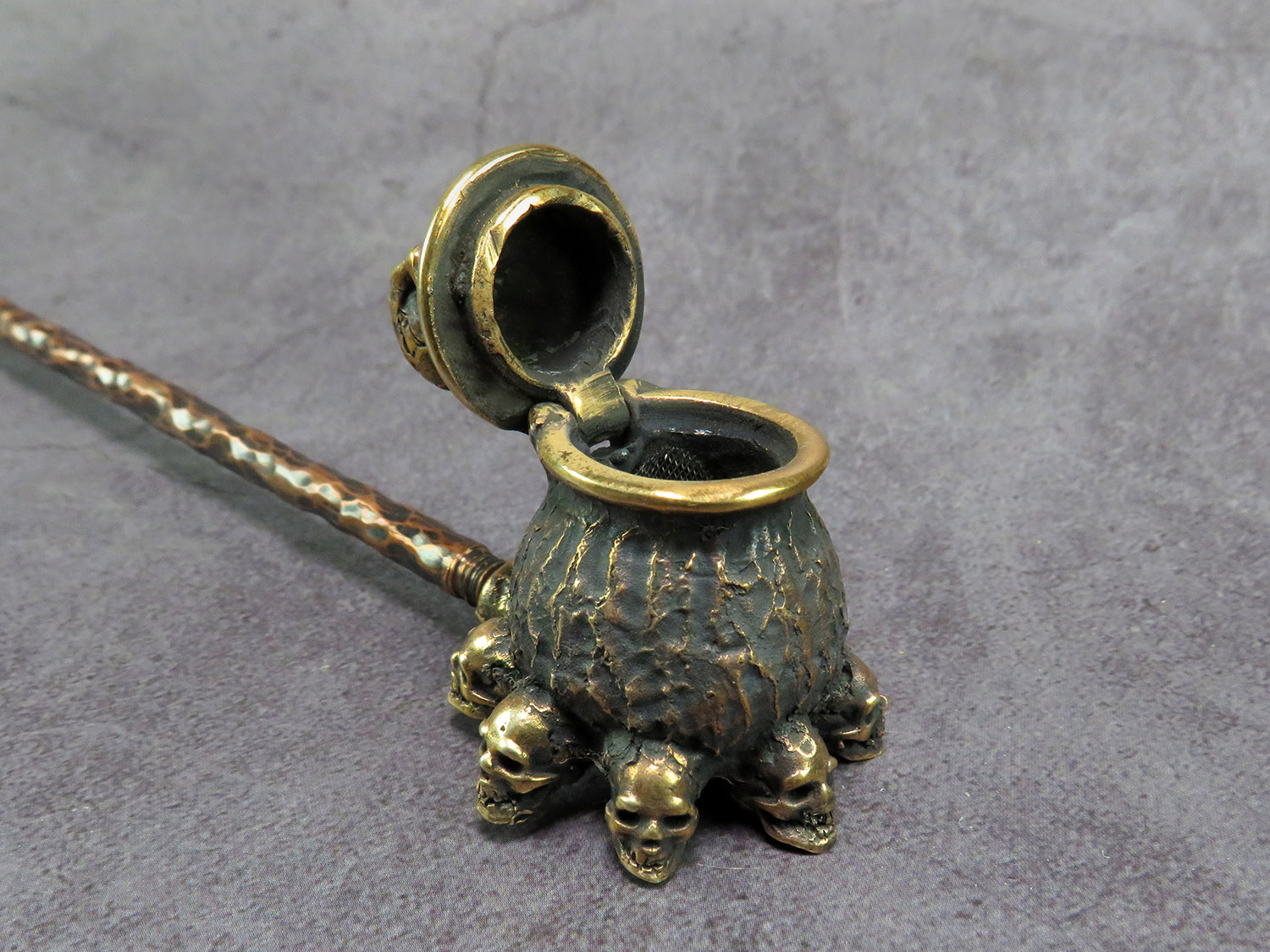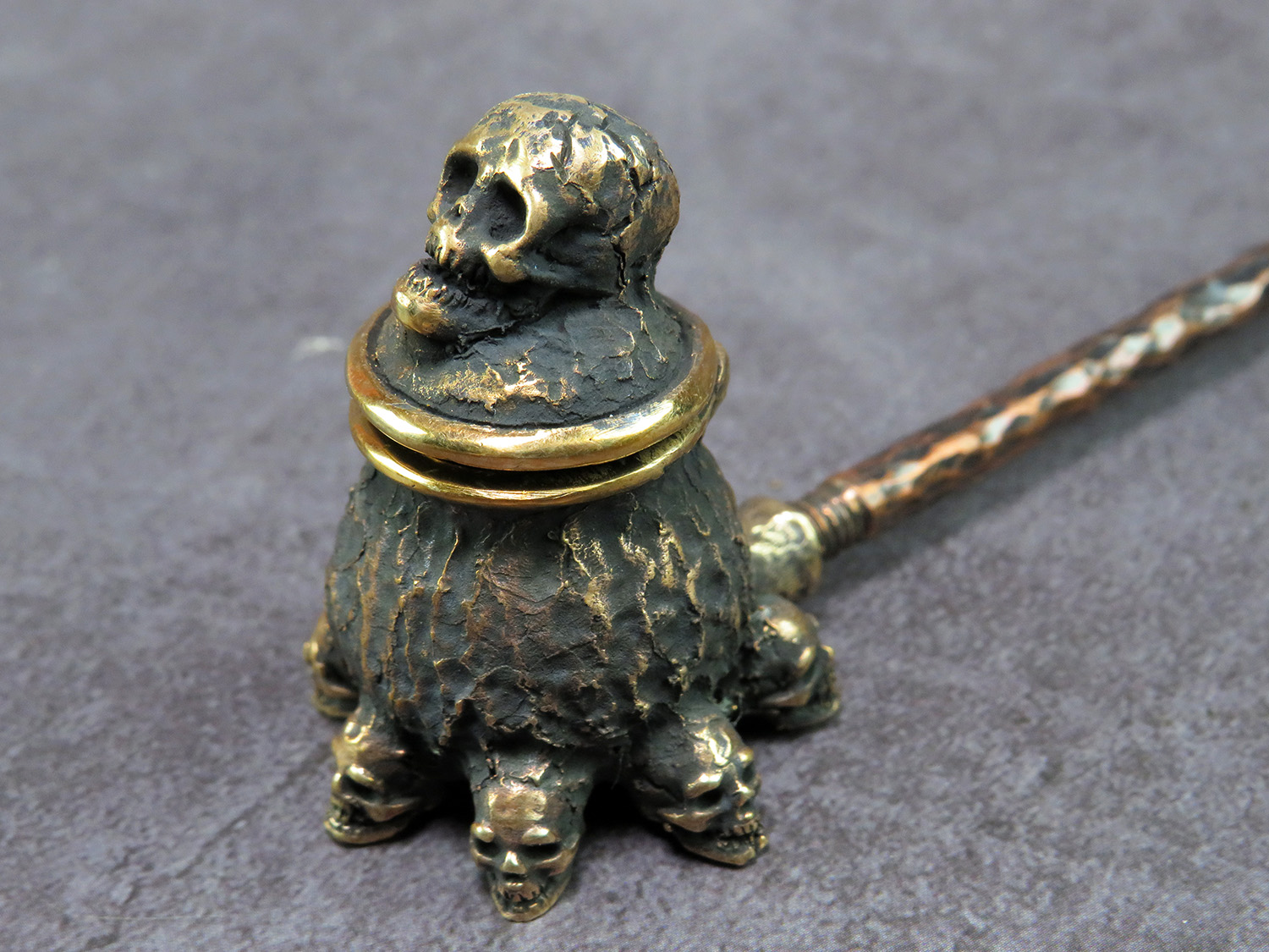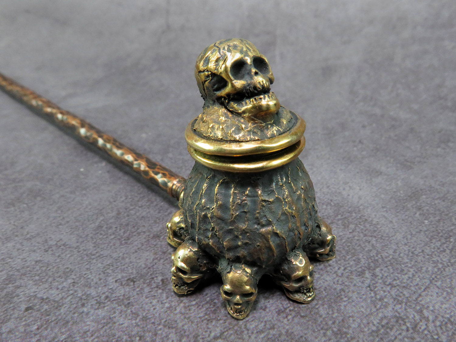 The skull is made by hand (without using computer technology) from bronze according to the author's sketch.