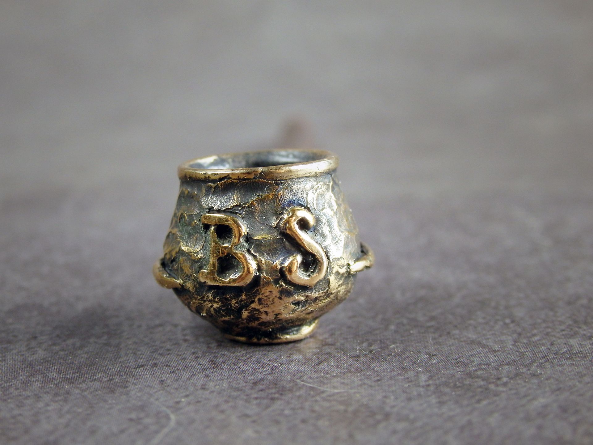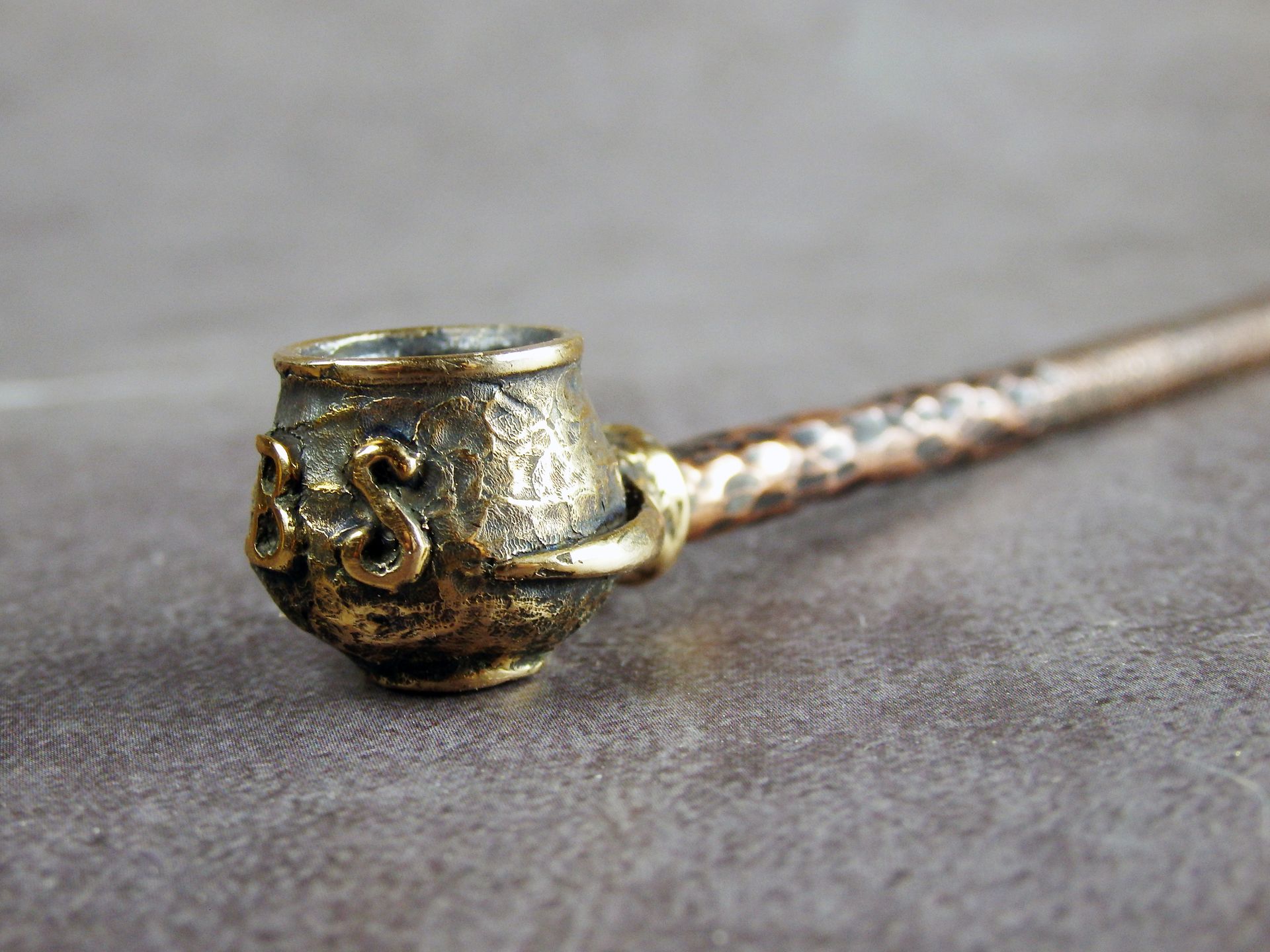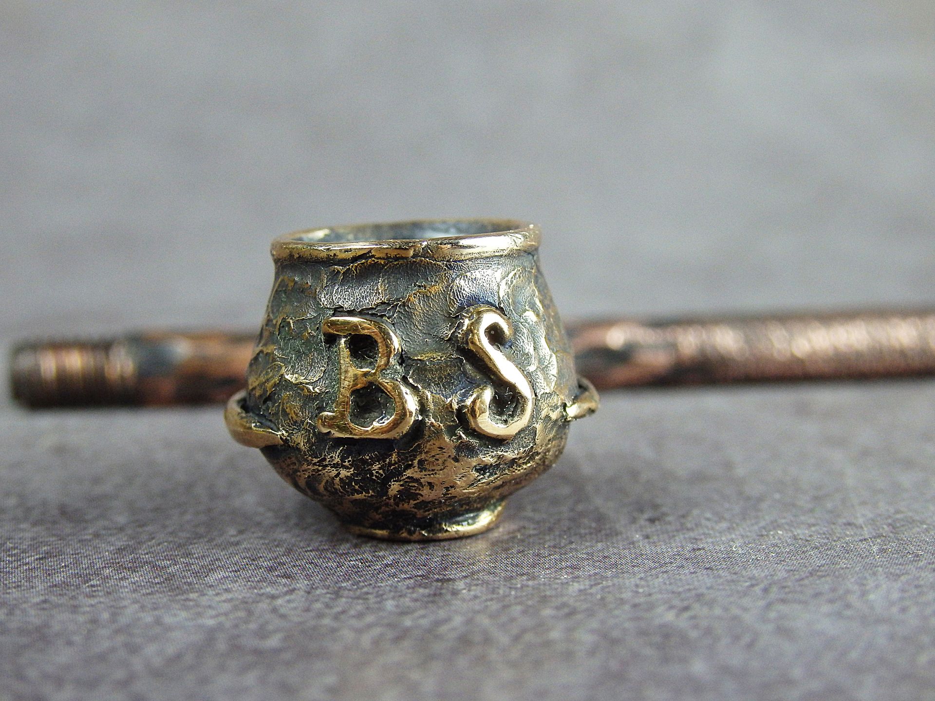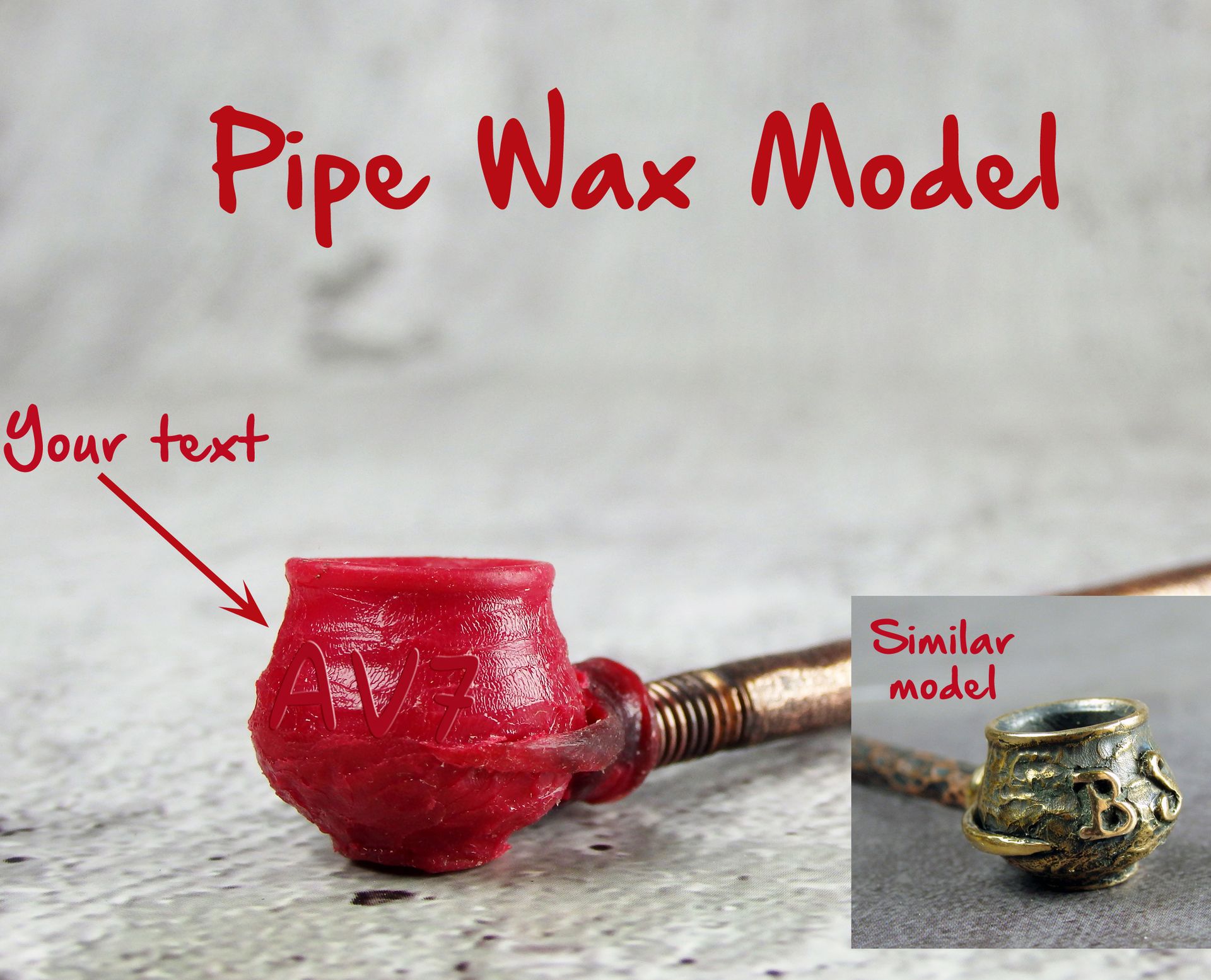 Bronze smoking pipe with your text (initials or few word) according to your order. The text is added to the wax-up before casting.