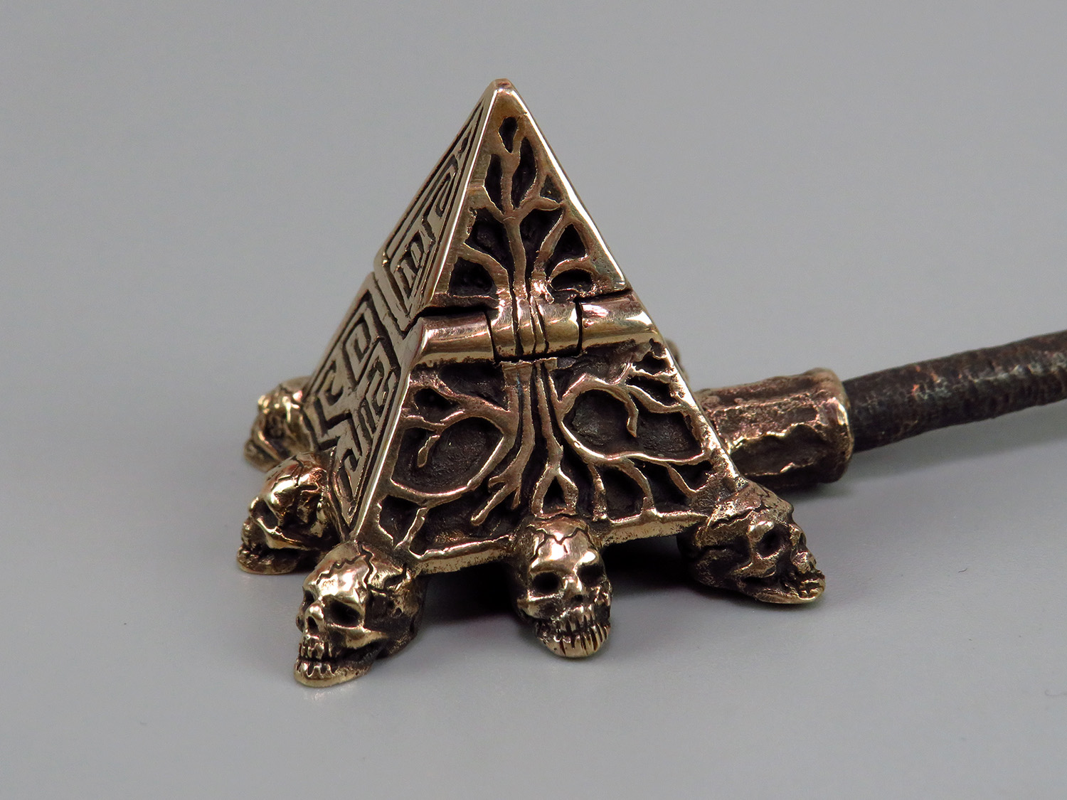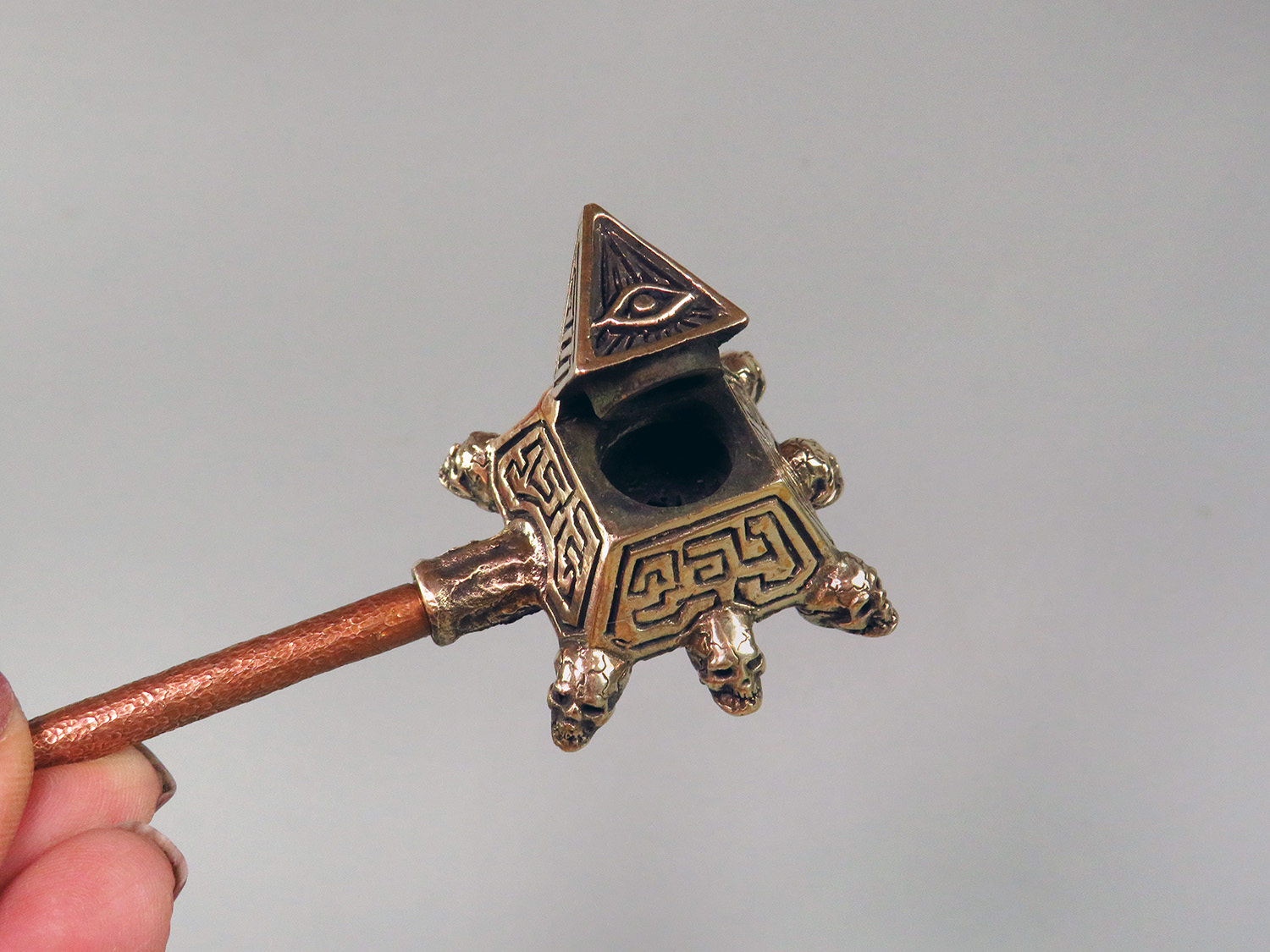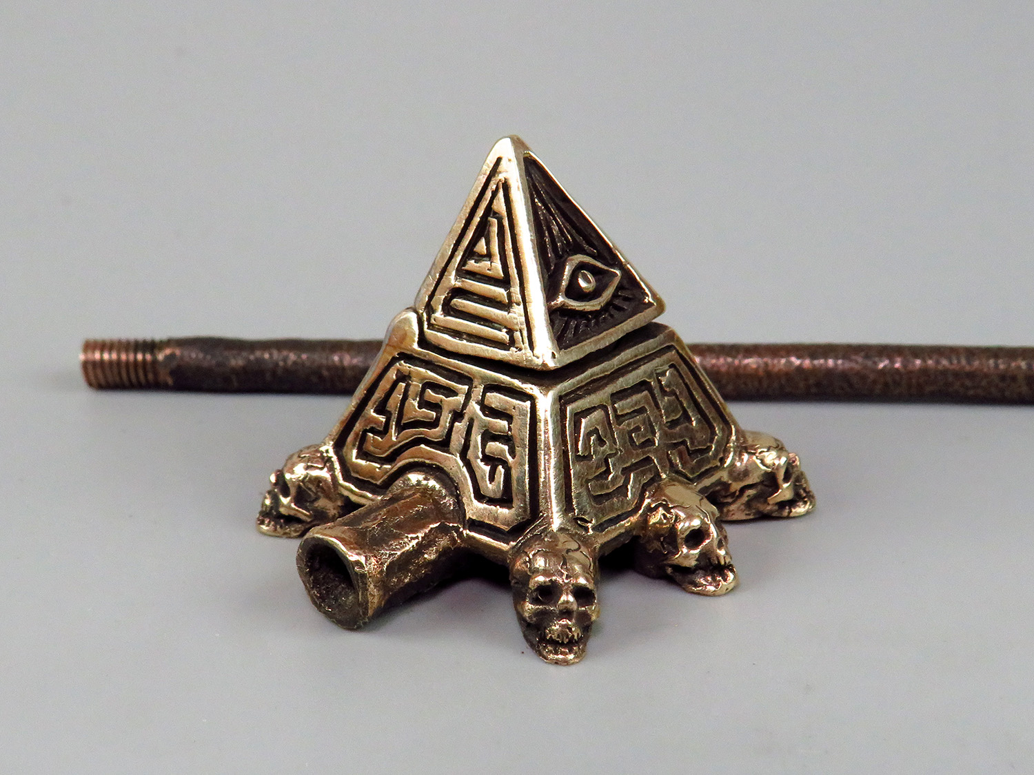 An esoteric bronze pipe inspired by ancient mysteries — featuring the All-Seeing Eye, the sacred Pyramid, and a Tree of Life growing from its base. This one-of-a-kind piece is more than a pipe: it's an artifact for those who see meaning in symbols, power in silence, and beauty in the strange.