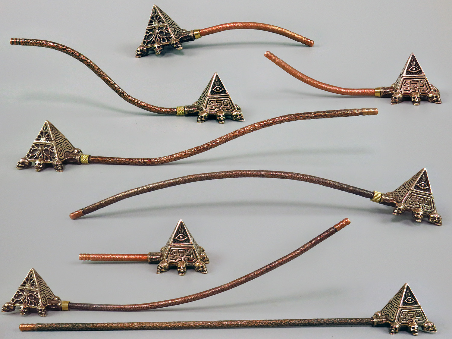 The mouthpiece is made of copper, it is screwed on, can have a length (from 3 to 30 cm) and a shape at the request of the buyer.