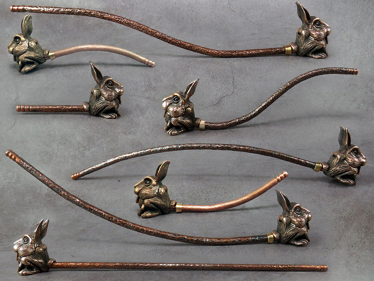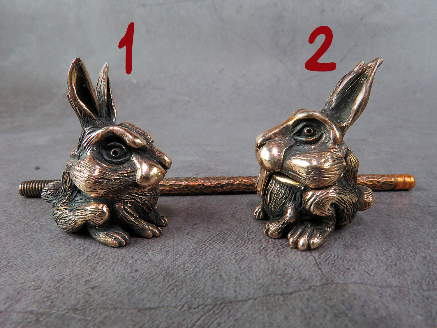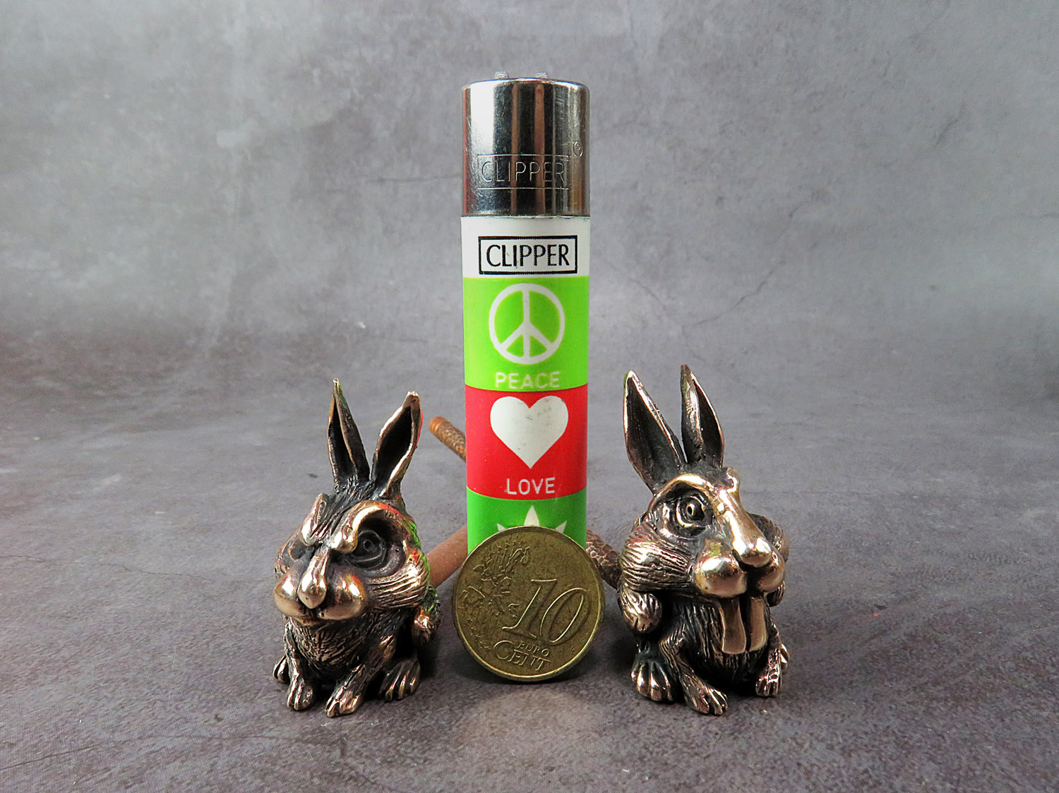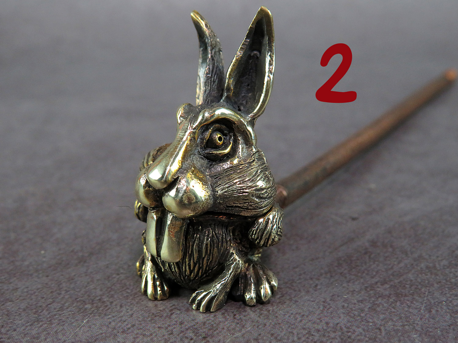 A bronze smoking pipe in the shape of a cute rabbit. 2023 is the Year of the Rabbit in the Chinese zodiac and a symbol of luck, longevity, and abundance in feng shui. Therefore, this pipe makes an excellent gift for those who believe in fate and good fortune. There are two models to choose from - with teeth outside and inside. The price is for one pipe assembly. When ordering, please indicate the mould you prefer.