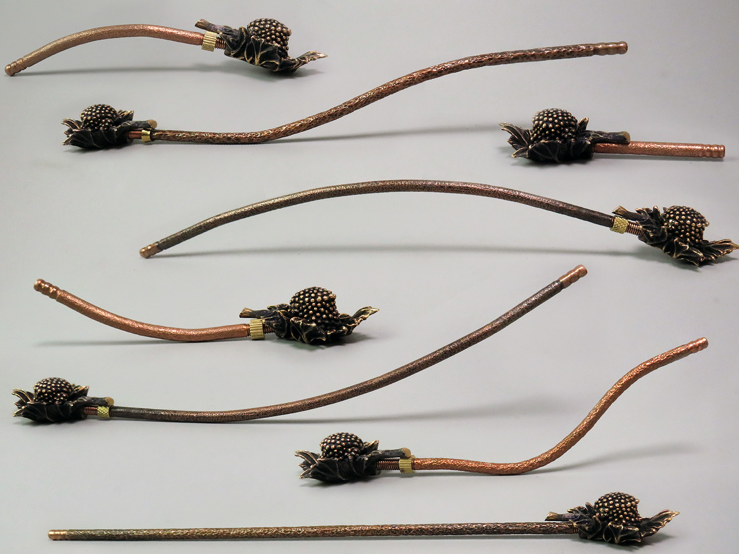 The mouthpiece is made of copper, it is screwed on, can have a length (from 3 to 30 cm) and a shape at the request of the buyer.
