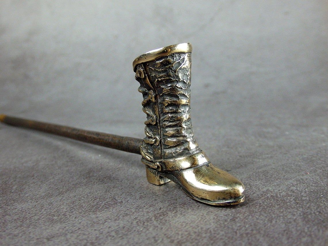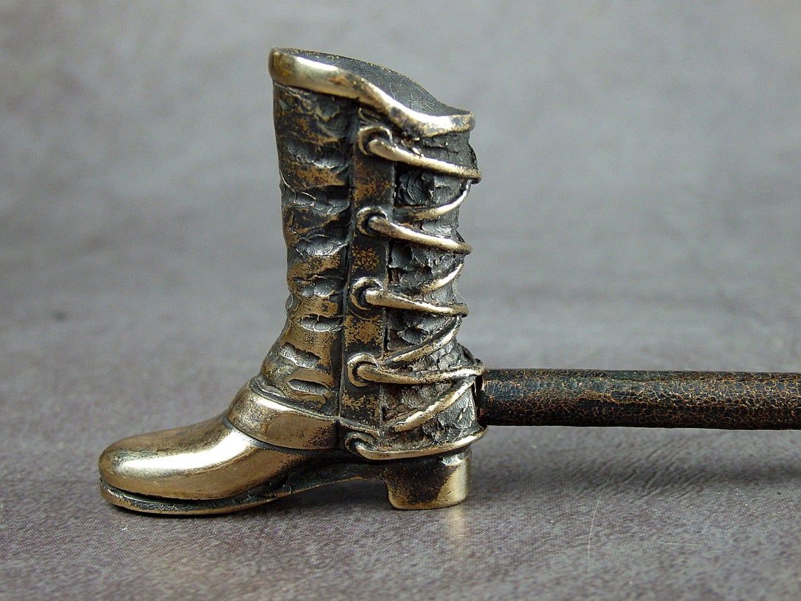 The original bronze smoking pipe in the shape of a boot. Please note - only part of the boot is used under the bowl.