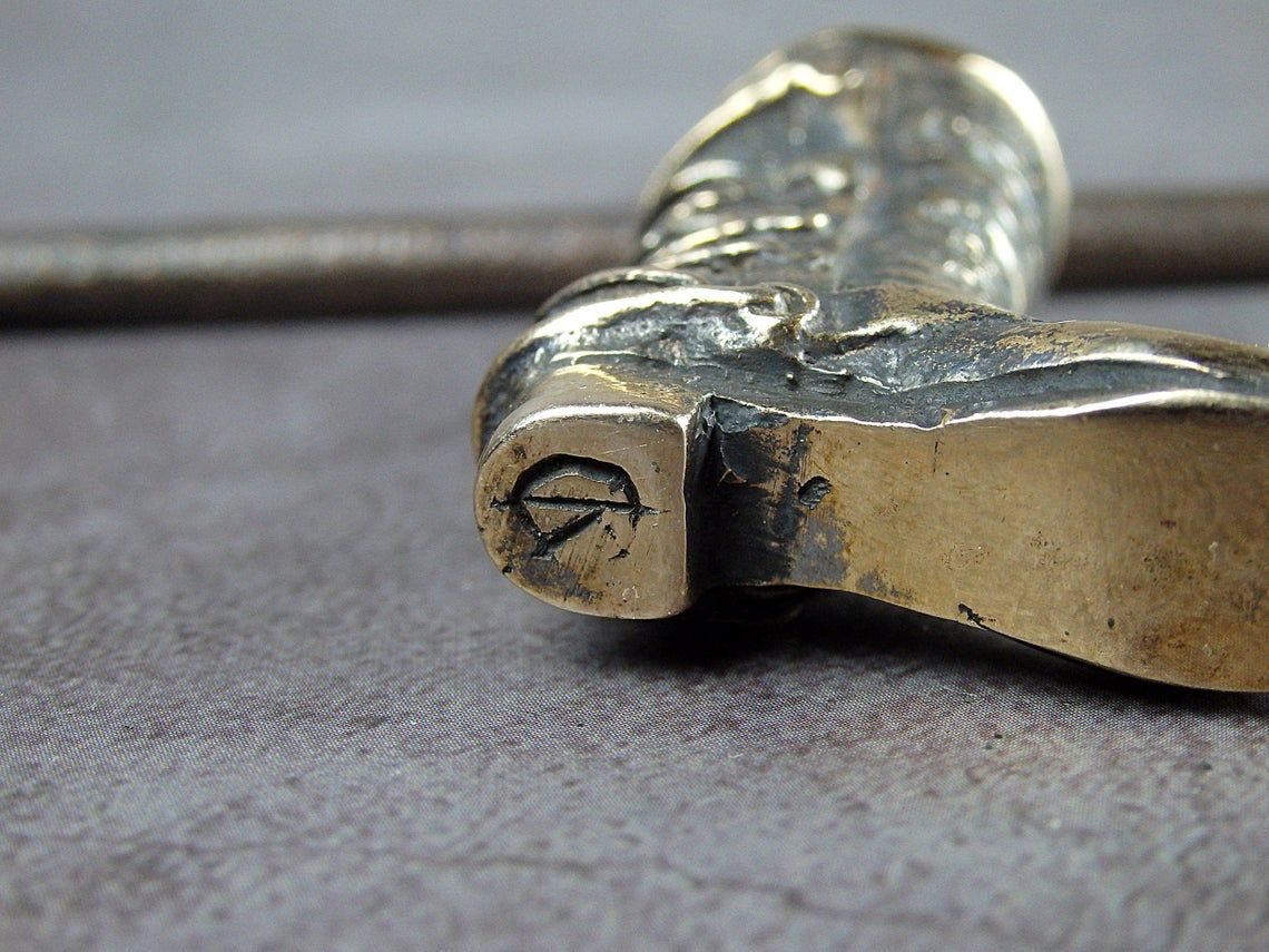 To make this item, a wax model was cut out by hand. Then, using the lost wax method, bronze parts were cast.