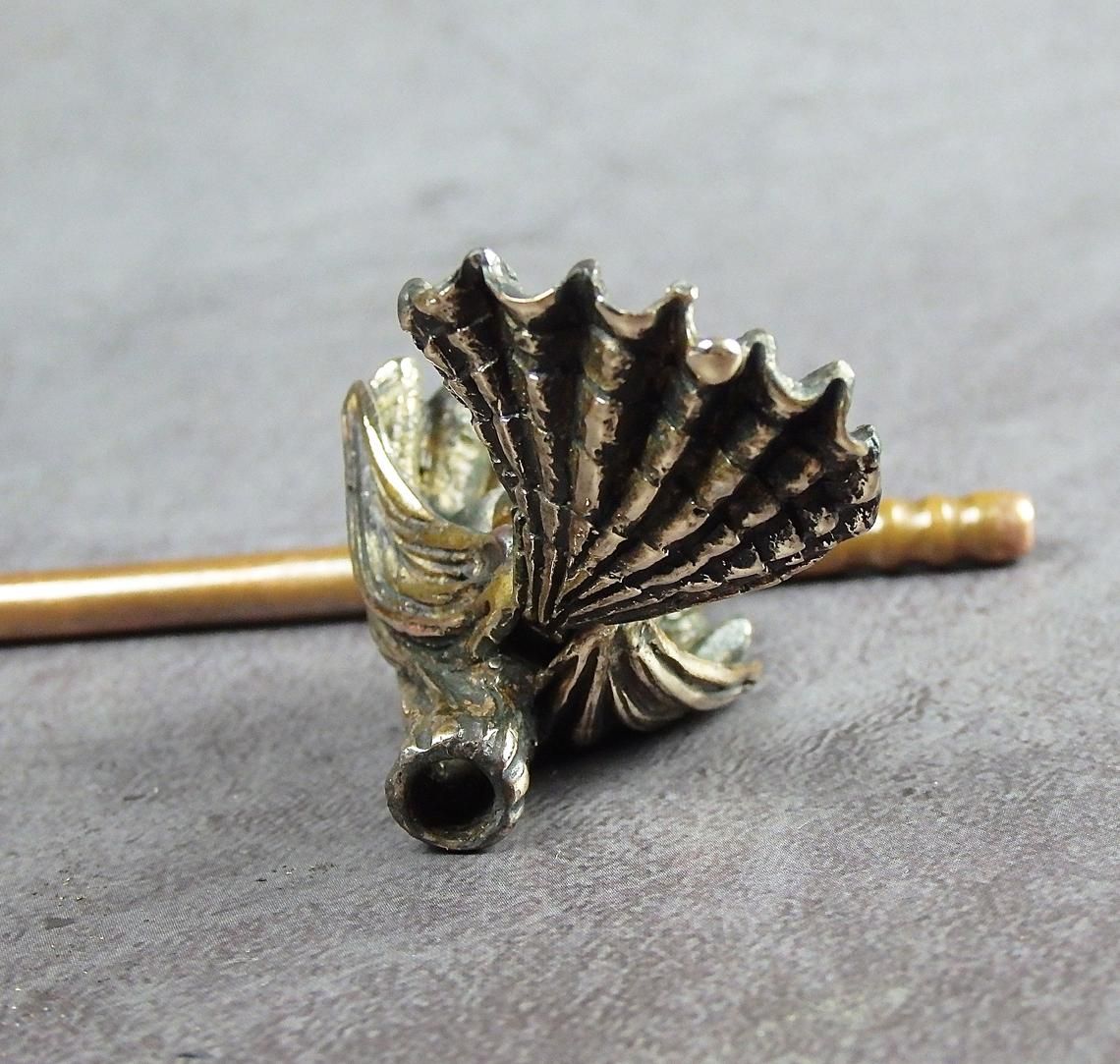 Bronze smoking pipe with lid, with bowl in the shape of scallop-shell. This is not only a smoking accessory, but also a wonderful souvenir. The mouthpiece is made of copper, it is screwed on, can have a length (from 3 to 30 cm) and a shape at the request of the buyer. The pipe is working, not decorative, the model is tested by the master.