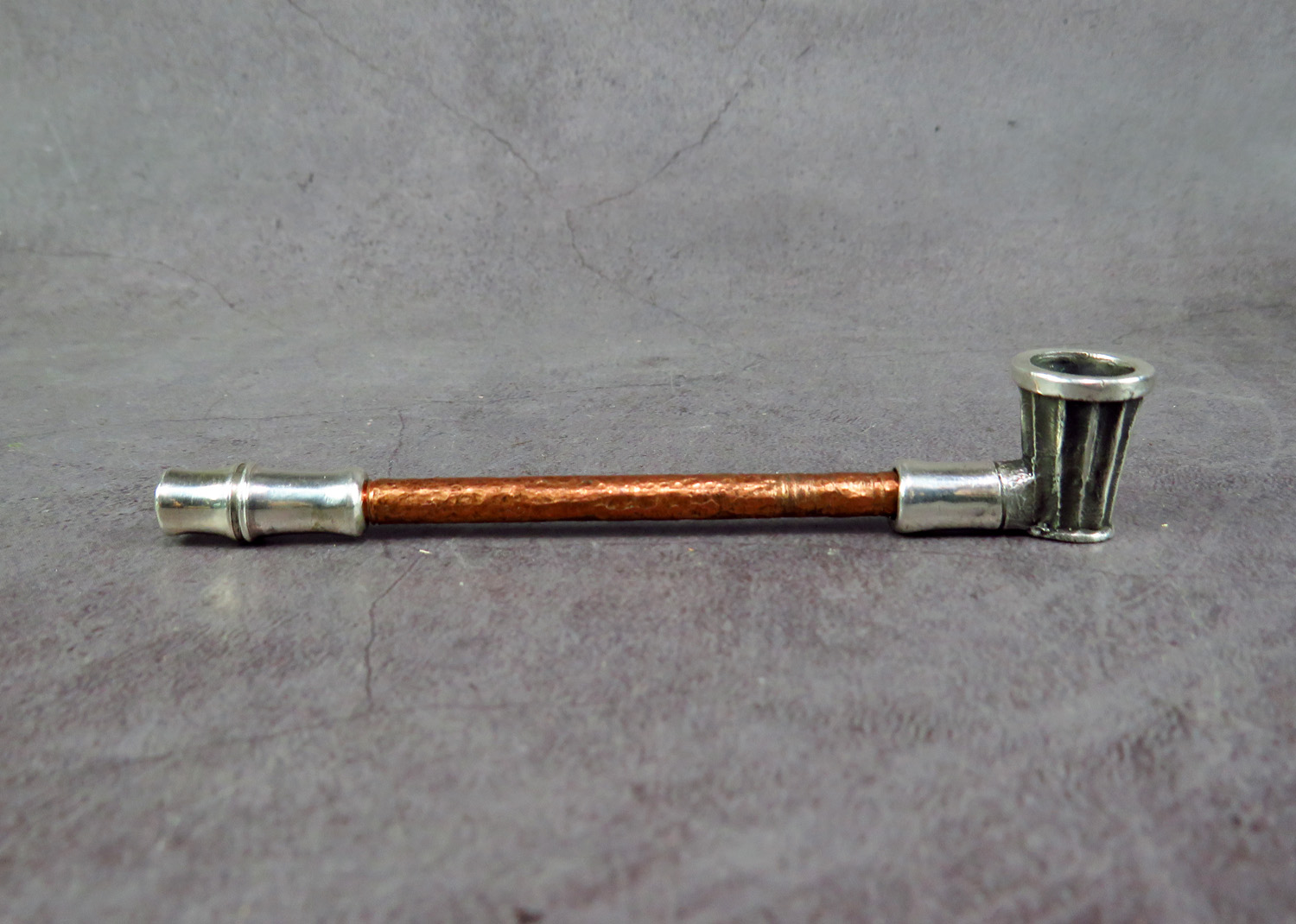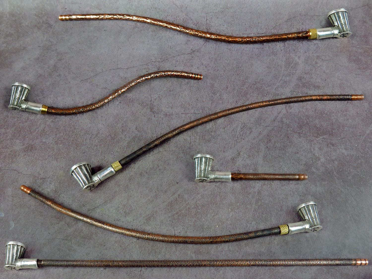 The mouthpiece is made of copper and silver, screwed on, can have a length (from 3 to 30 cm) and a shape at the request of the buyer. The pipe is working, not decorative, the model is tested by the master.