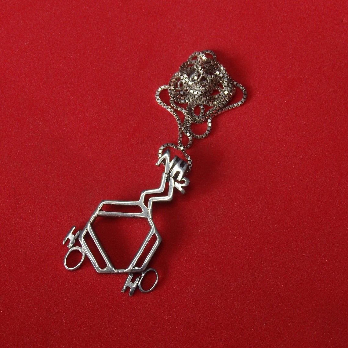 The pendant is made by hand using traditional jewelry technology. First, the master cast an ingot of silver and rolled it into a sheet. Then, in accordance with the author’s sketch, the main parts of the manufactured thing were carved from this sheet, which were assembled into the structure and soldered.