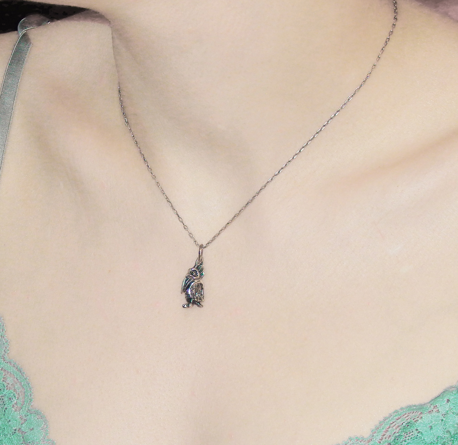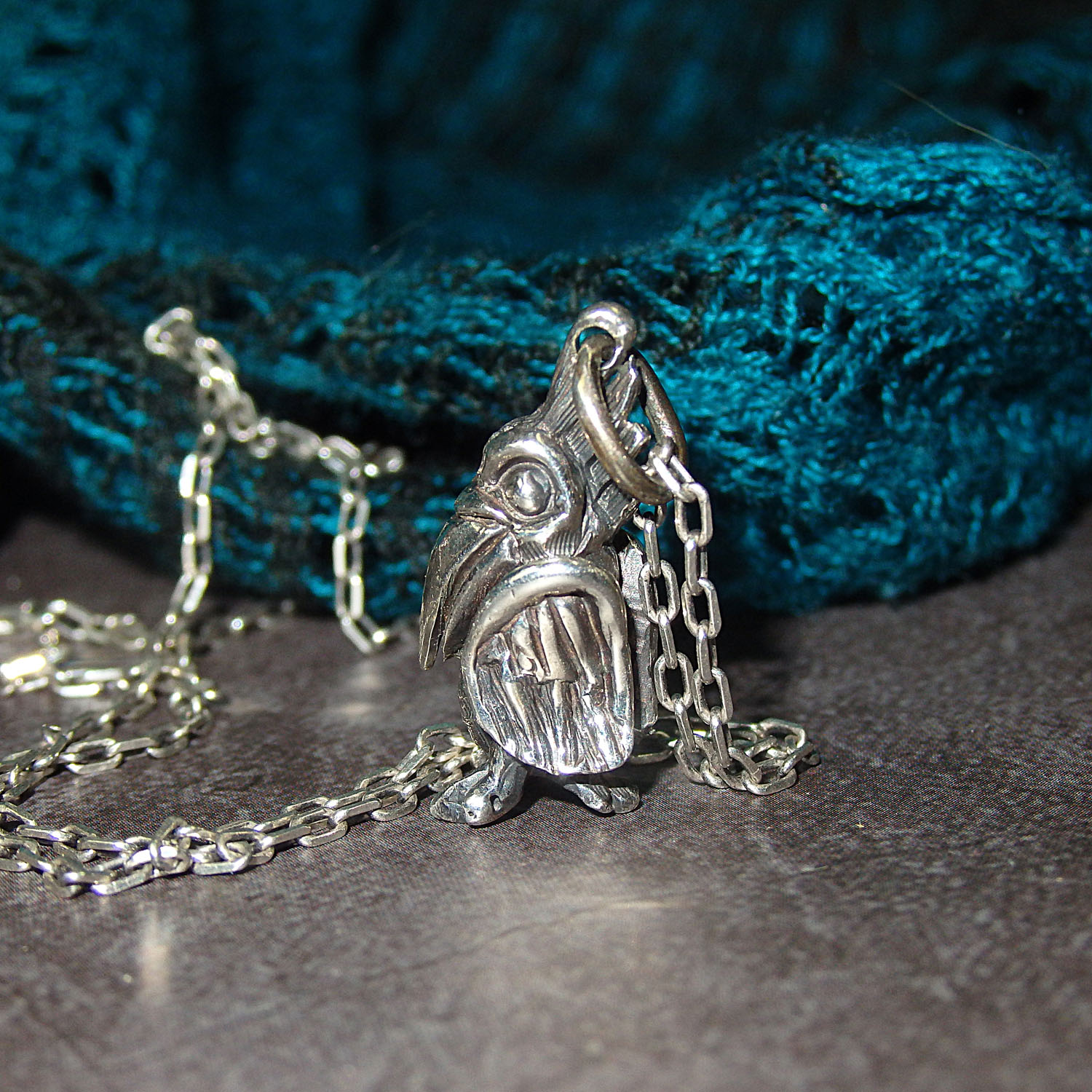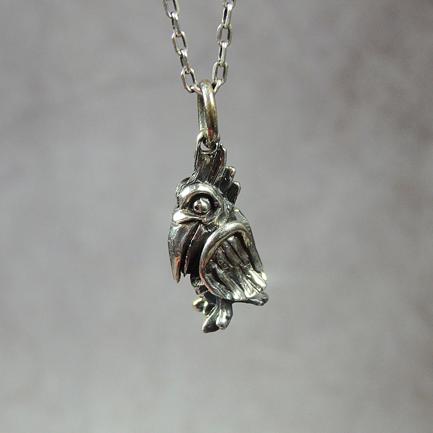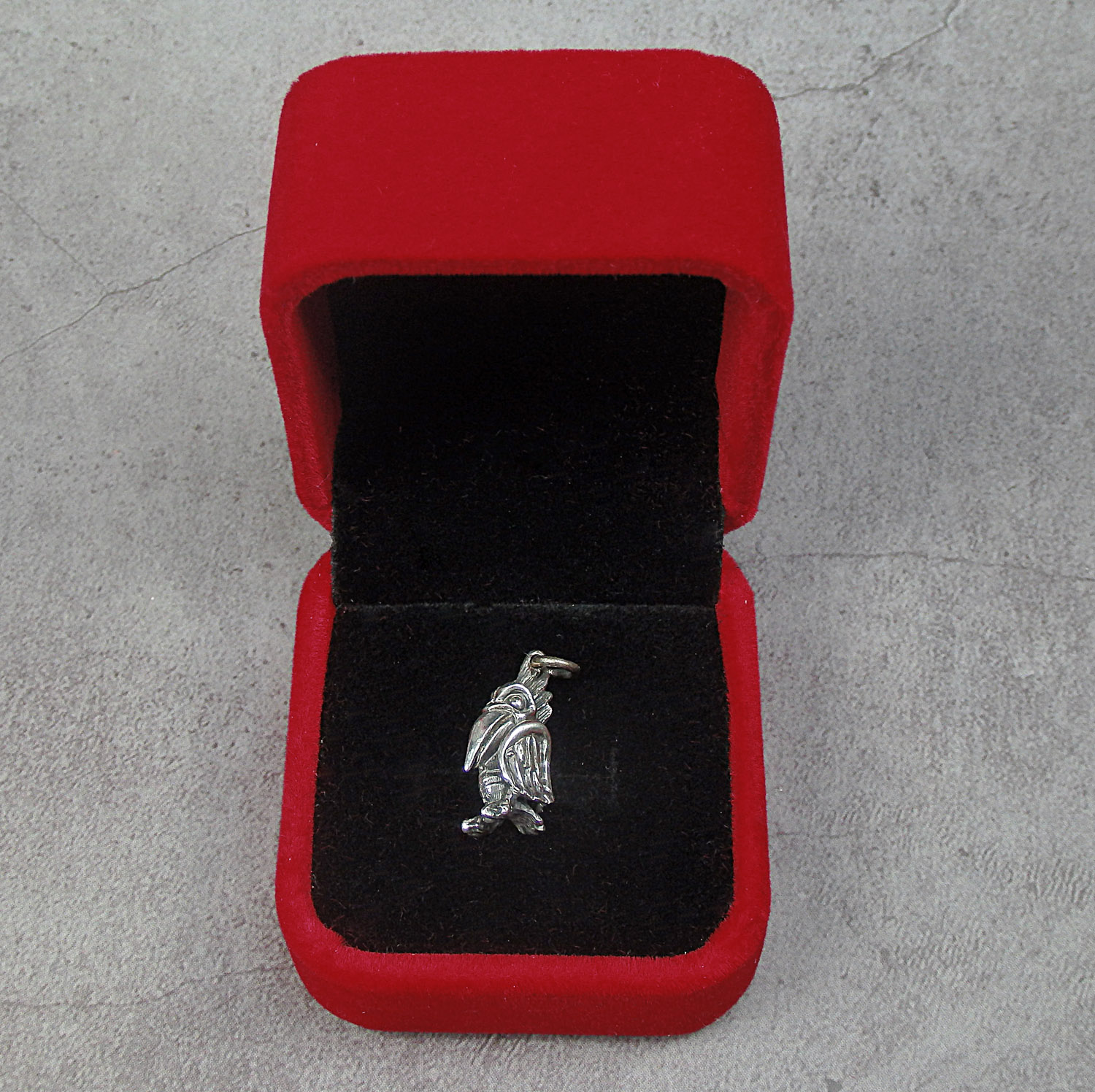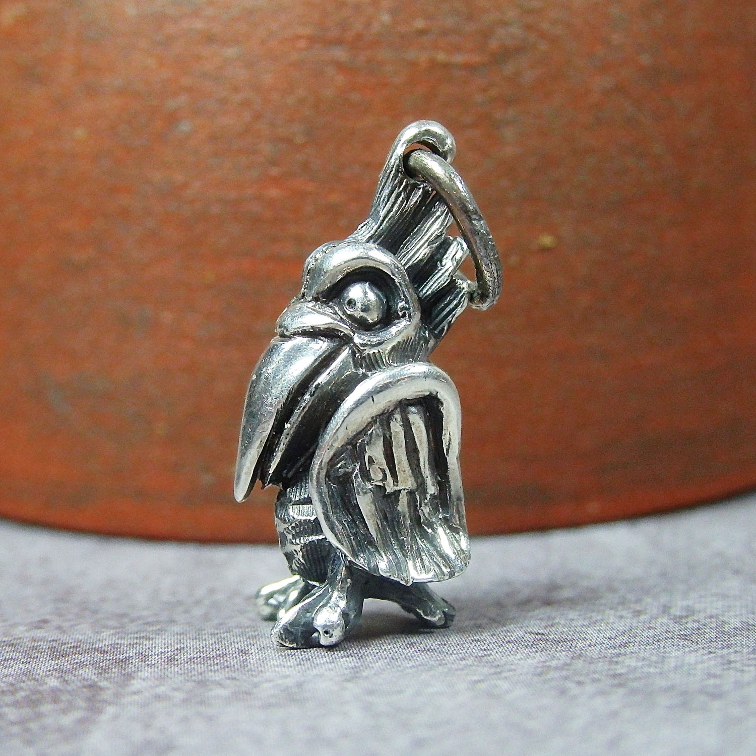 A miniature silver pendant in the shape of a toucan parrot. It can be used as a pendant, key chain or charm for a bracelet or luggage.