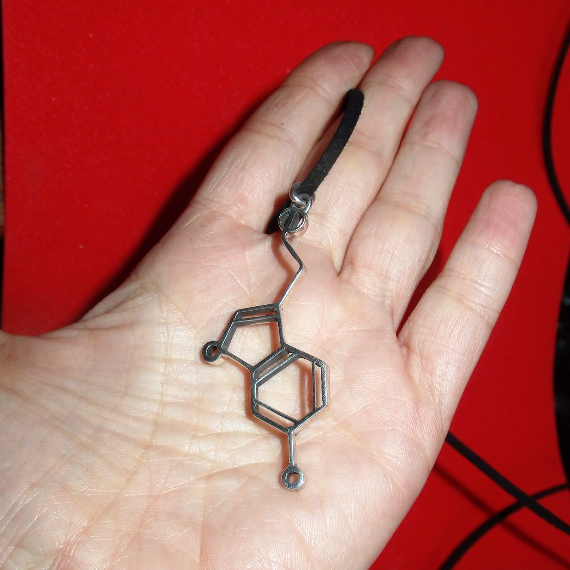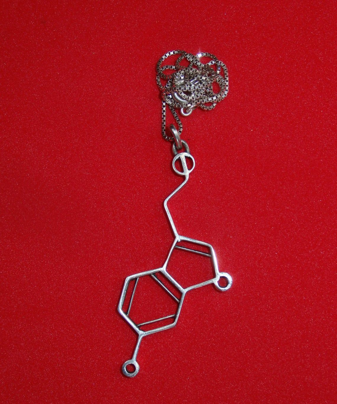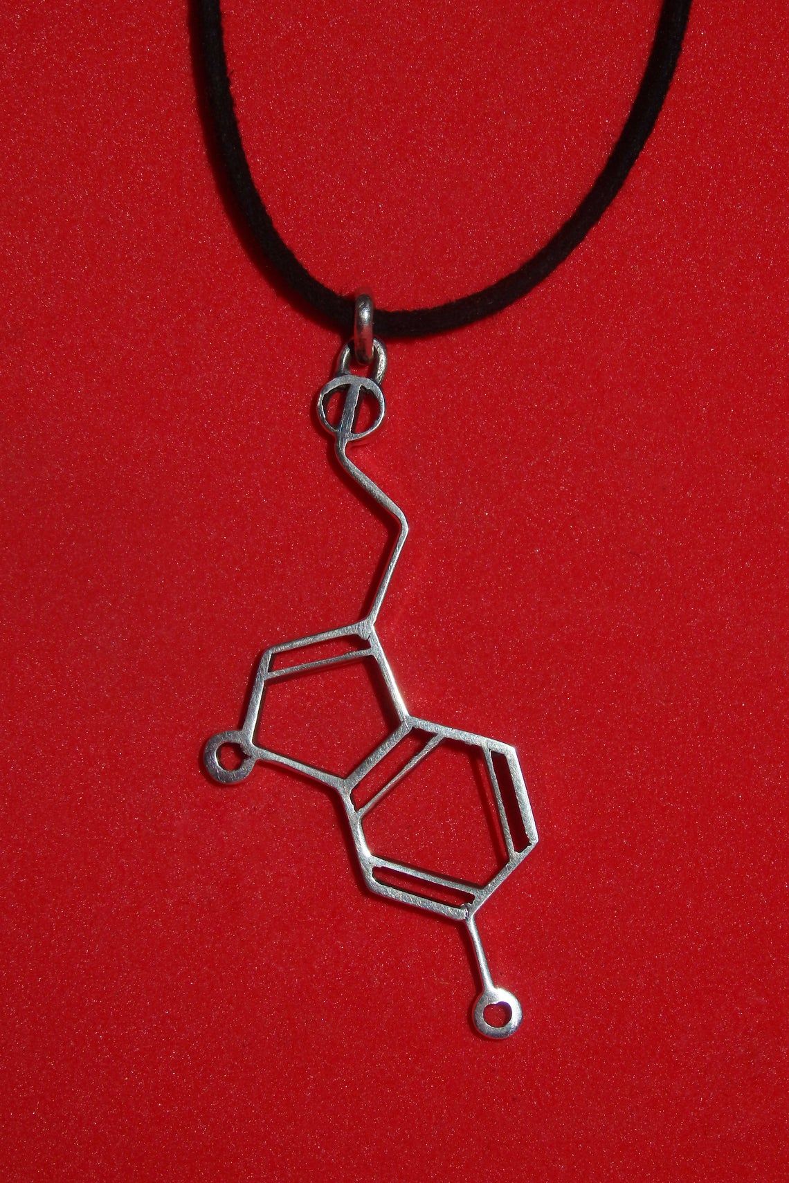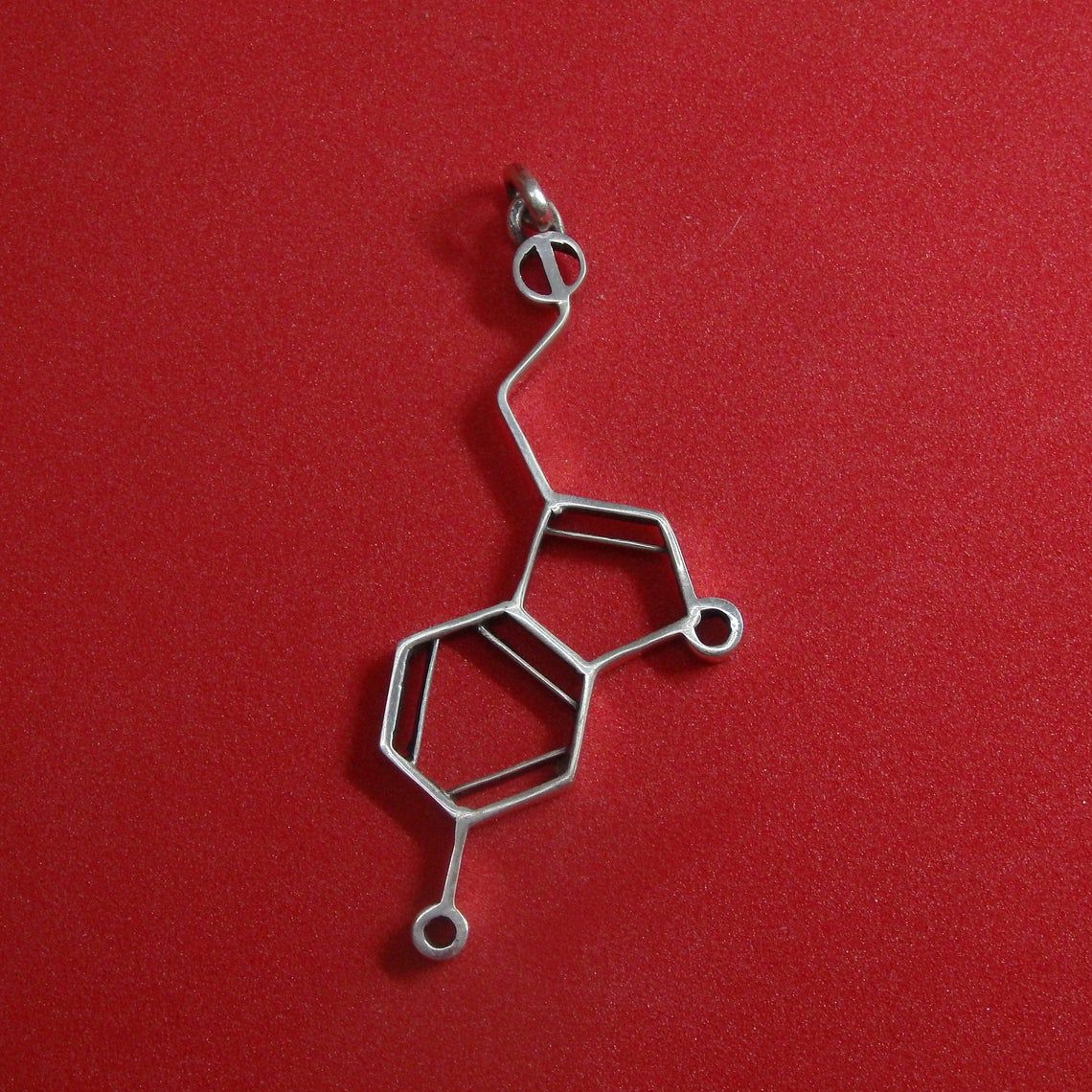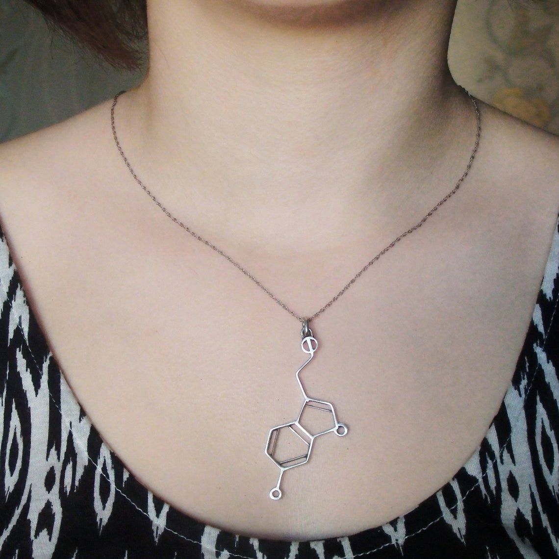 Our silver pendant in the form of a serotonin molecule is the material embodiment of pure chemical pleasure and happiness. This is a universal gift, as it is multifaceted and gender neutral. Having presented this jewelry to a friend or a loved one, you literally give him a little happiness, and if you decorate yourself with this pendant, you will always carry this emotion with you. And even on dull dank days, this little silver happiness will bring joy to its owner.