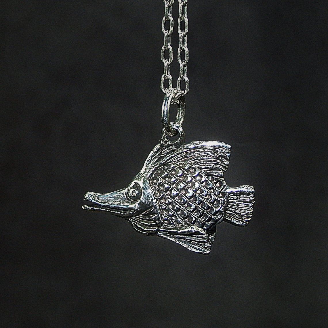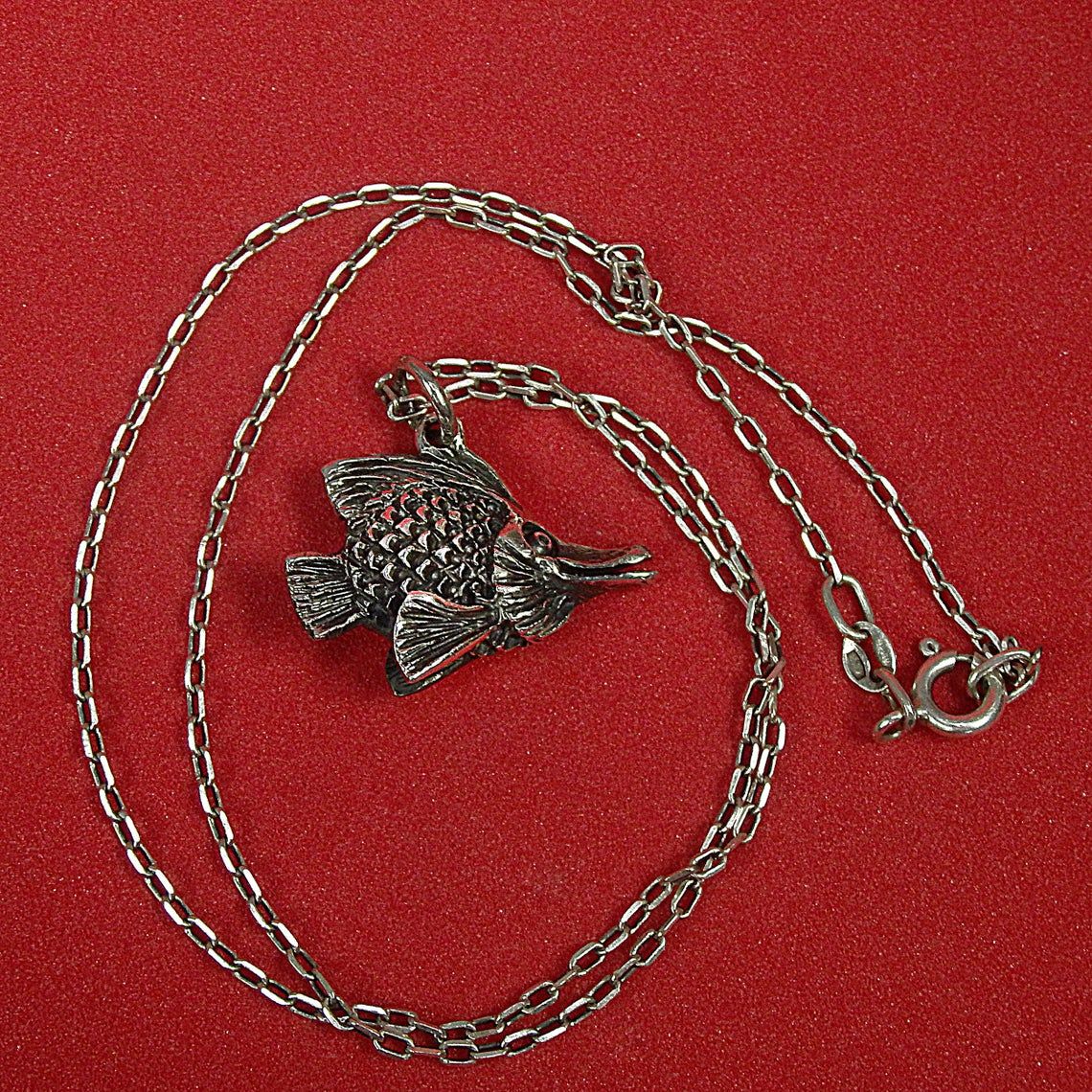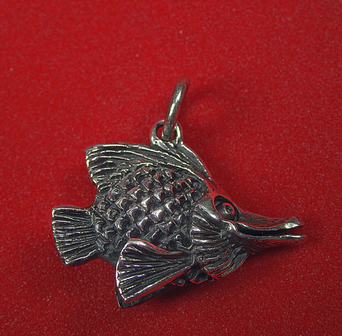 Handcrafted silver pendant - tiny aquarium fish. This jewelry will be a good sign of attention for your loved ones - aquarists, fans of the Feng Shui, "fish" signs of the Zodiac. In Chinese mythology fish symbolizes abundance, wealth, fertility, harmony. And for the Greeks and Romans, the fish were sacred in connection with the cult of Aphrodite (Venus), the goddess of love and fertility.