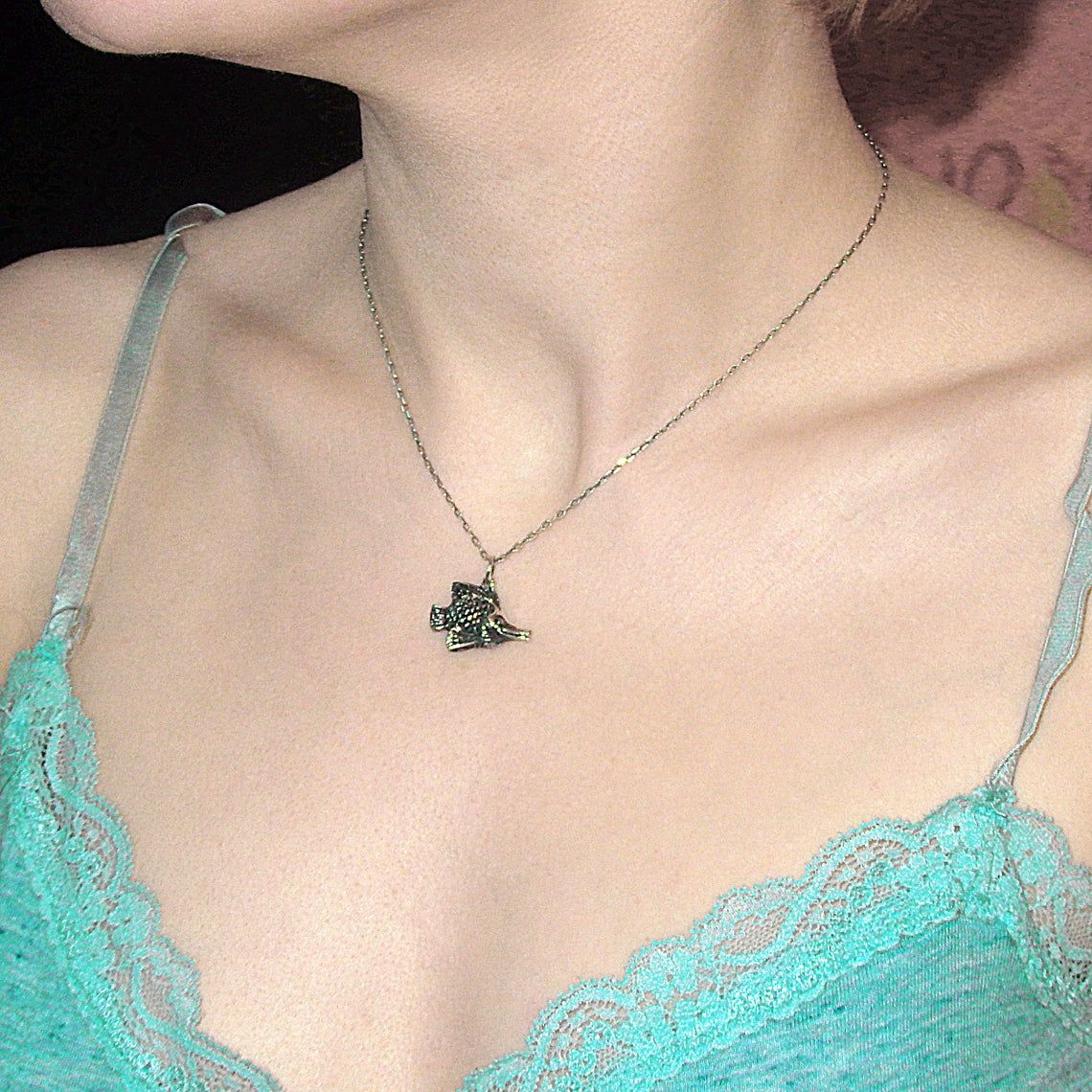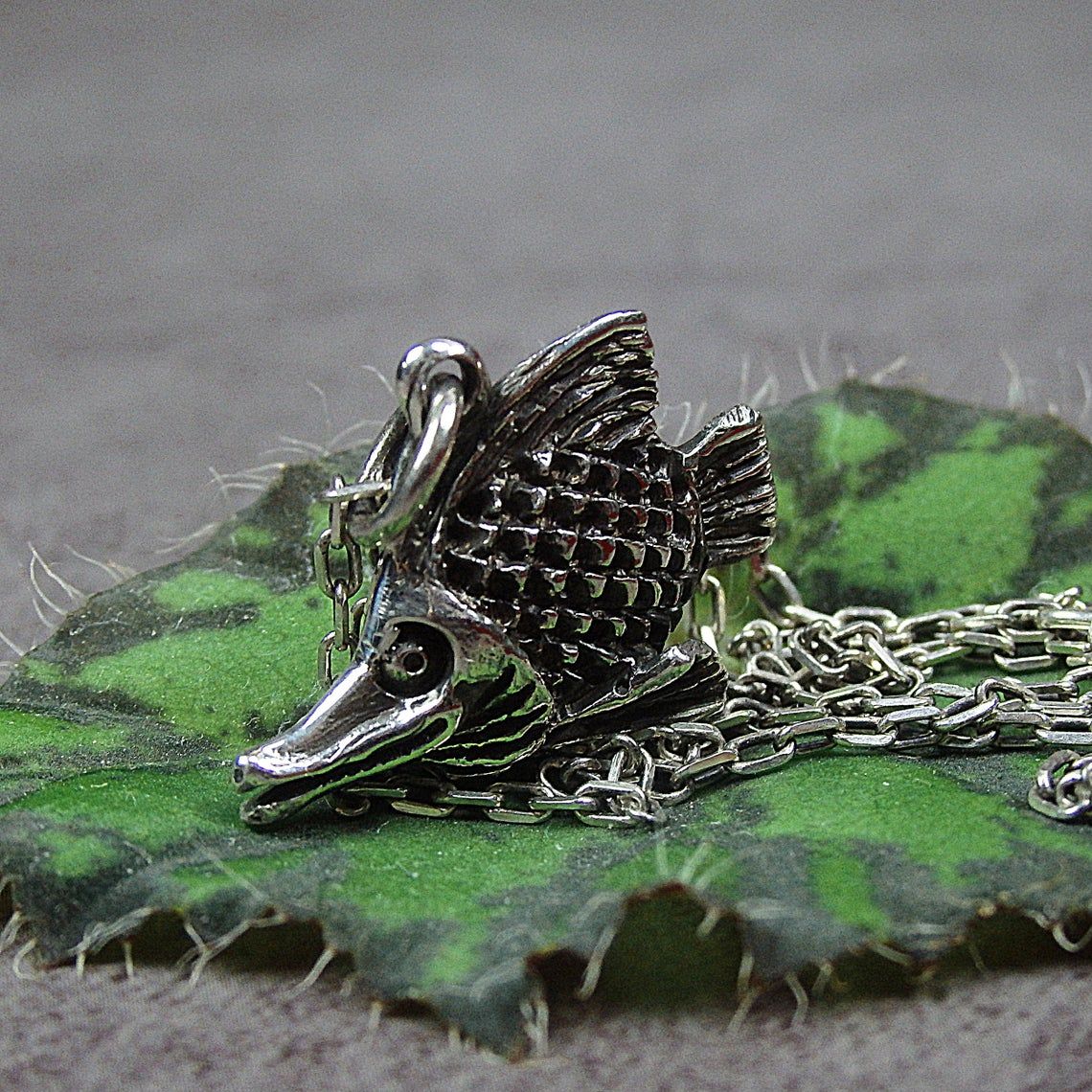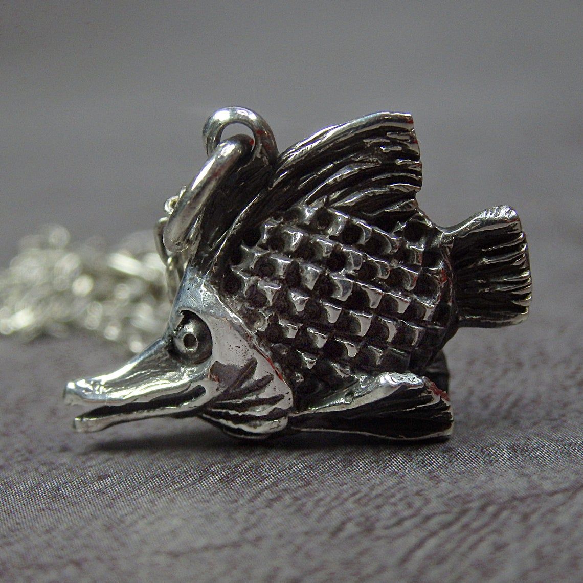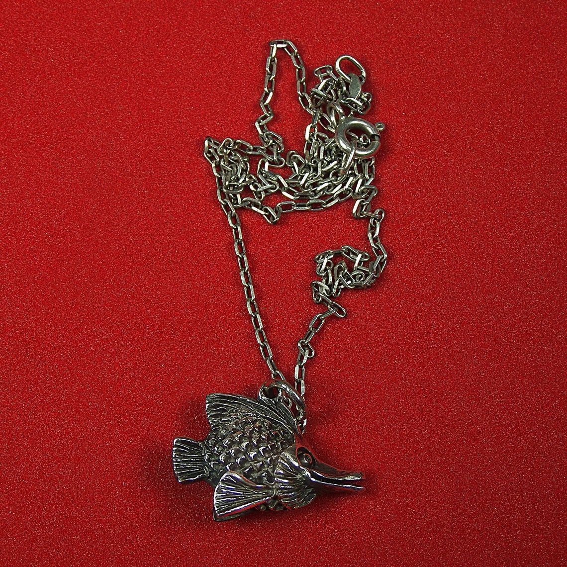 Handcrafted silver pendant - tiny aquarium fish. This jewelry will be a good sign of attention for your loved ones - aquarists, fans of the Feng Shui, "fish" signs of the Zodiac. In Chinese mythology fish symbolizes abundance, wealth, fertility, harmony. And for the Greeks and Romans, the fish were sacred in connection with the cult of Aphrodite (Venus), the goddess of love and fertility.