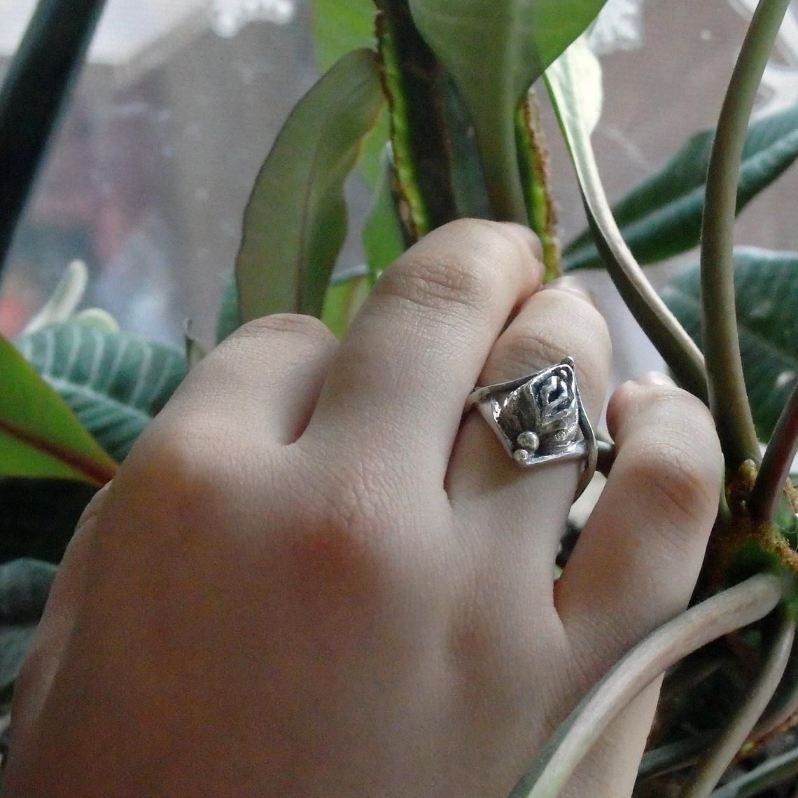 This ring can be tailored to your size or made specifically for you (made by hand from silver within two days). Please indicate your size and you would like to have this particular ring or what would we make such a ring for you (with minor changes if you wish).