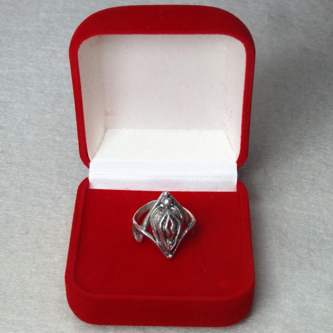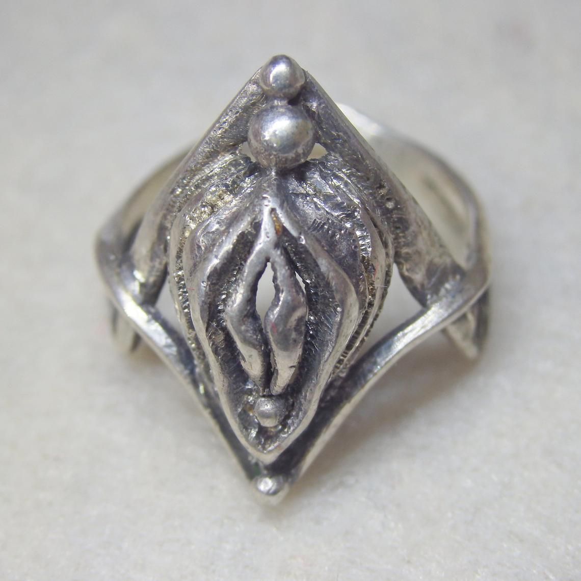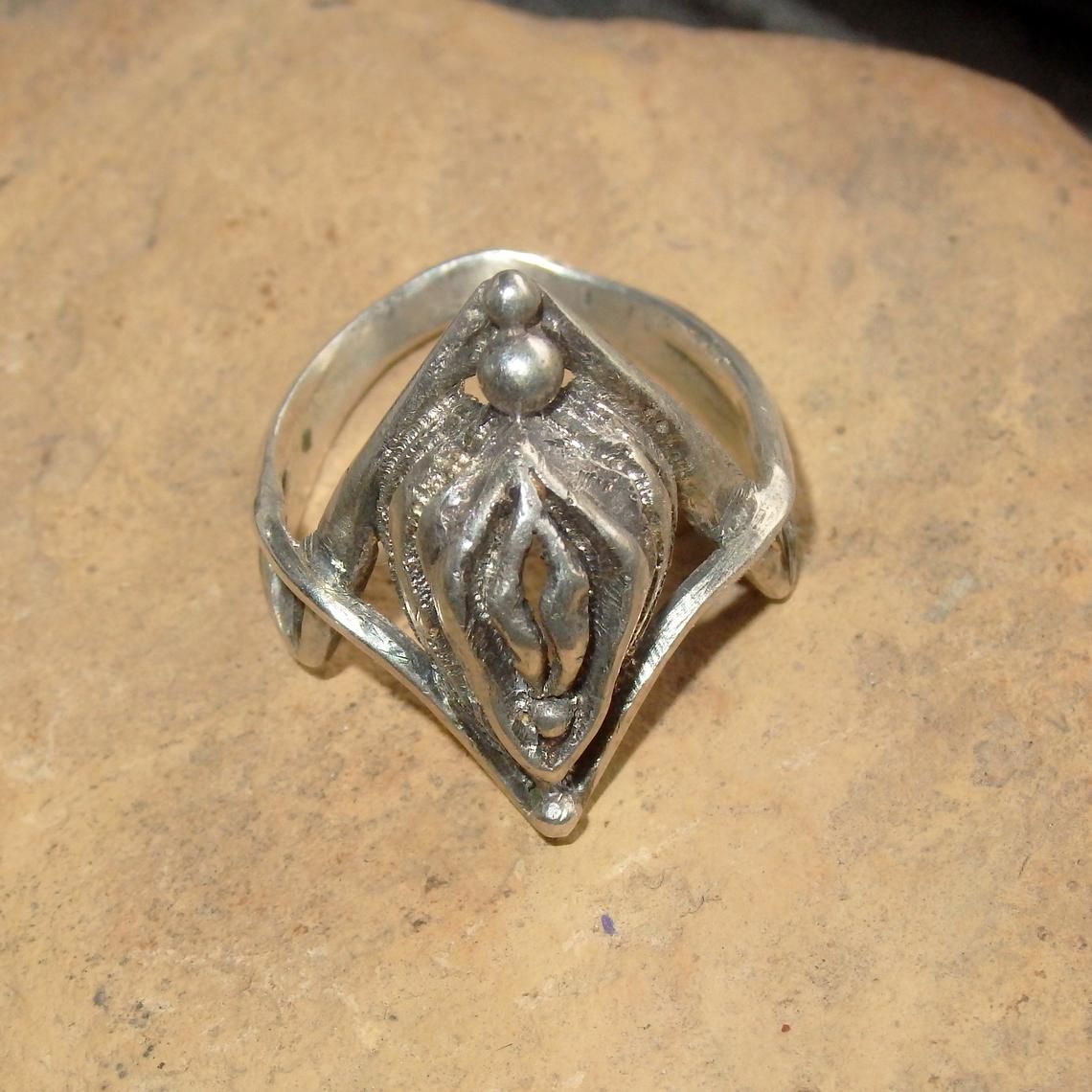 Silver ring with vagina.