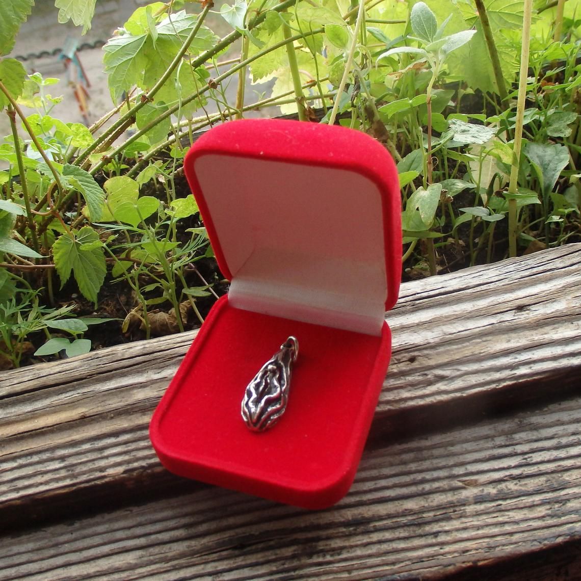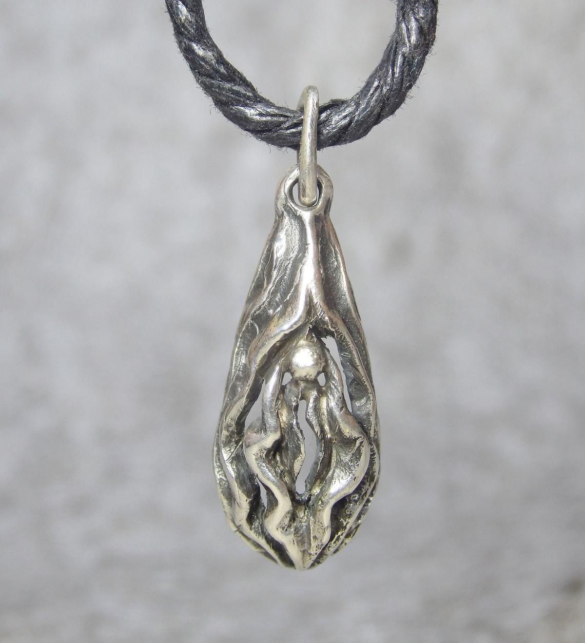 Light Vagina-shaped pendant made of silver.