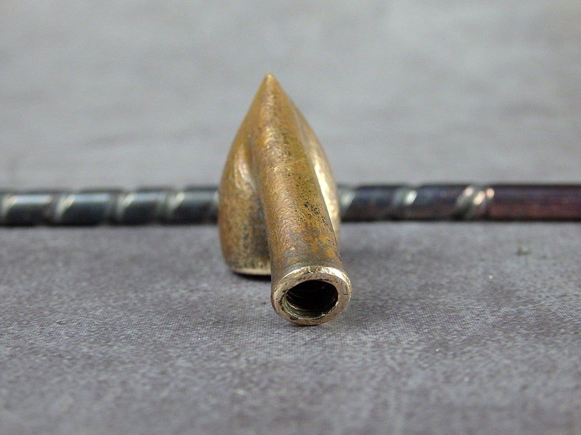 To make this item, a wax model was cut out by hand. Then, using the lost wax method, bronze parts were cast.