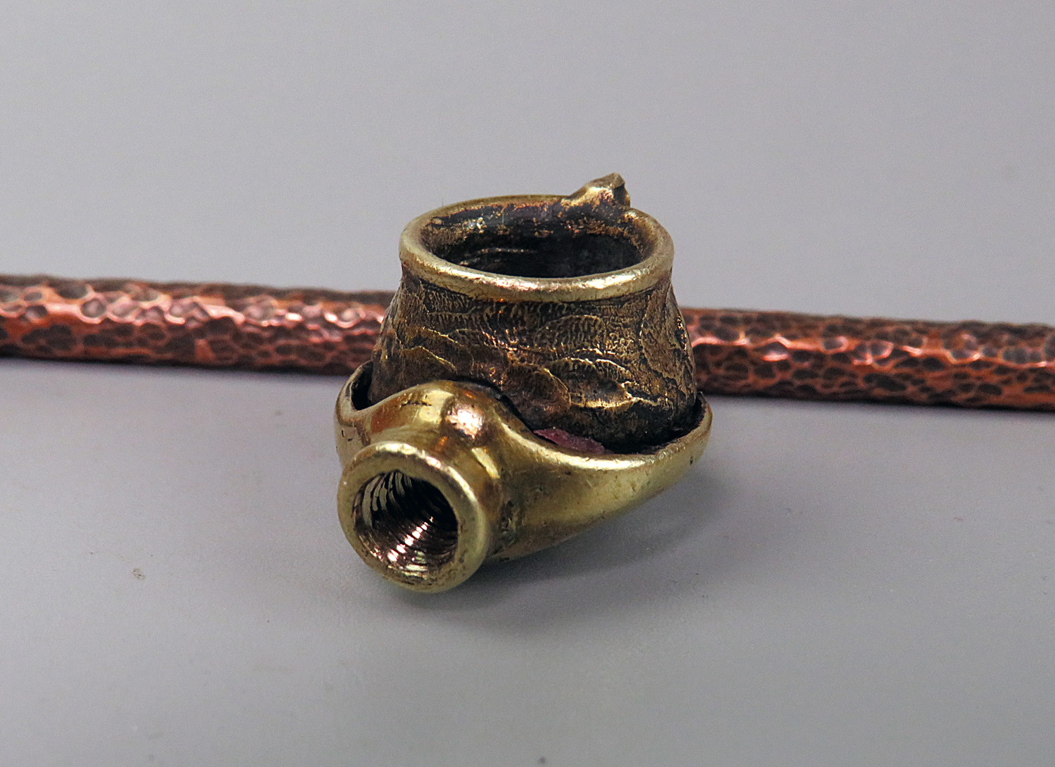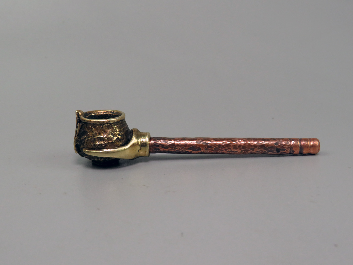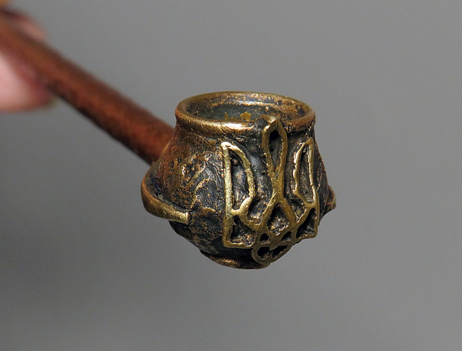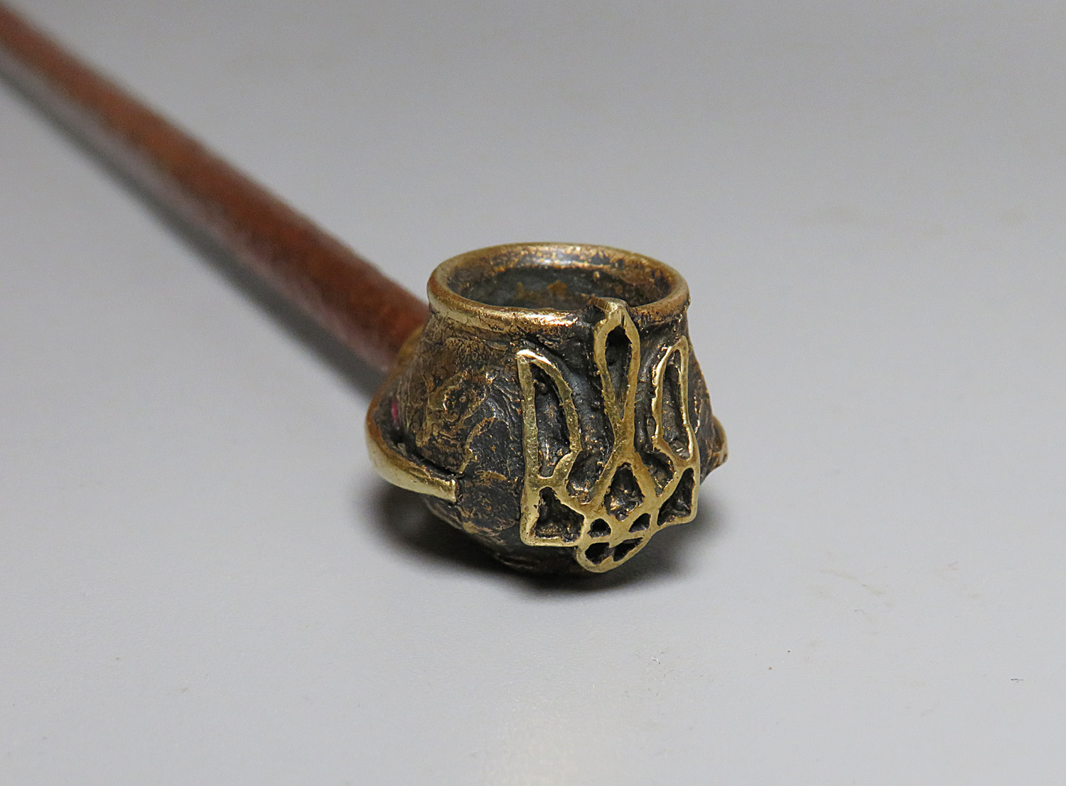 Little graceful bronze pipe-pot with a trident on its side. This is a simple and concise pipe for anyone who loves this wonderful country and wants to make a memorable gift to themselves or their Ukrainian friends.