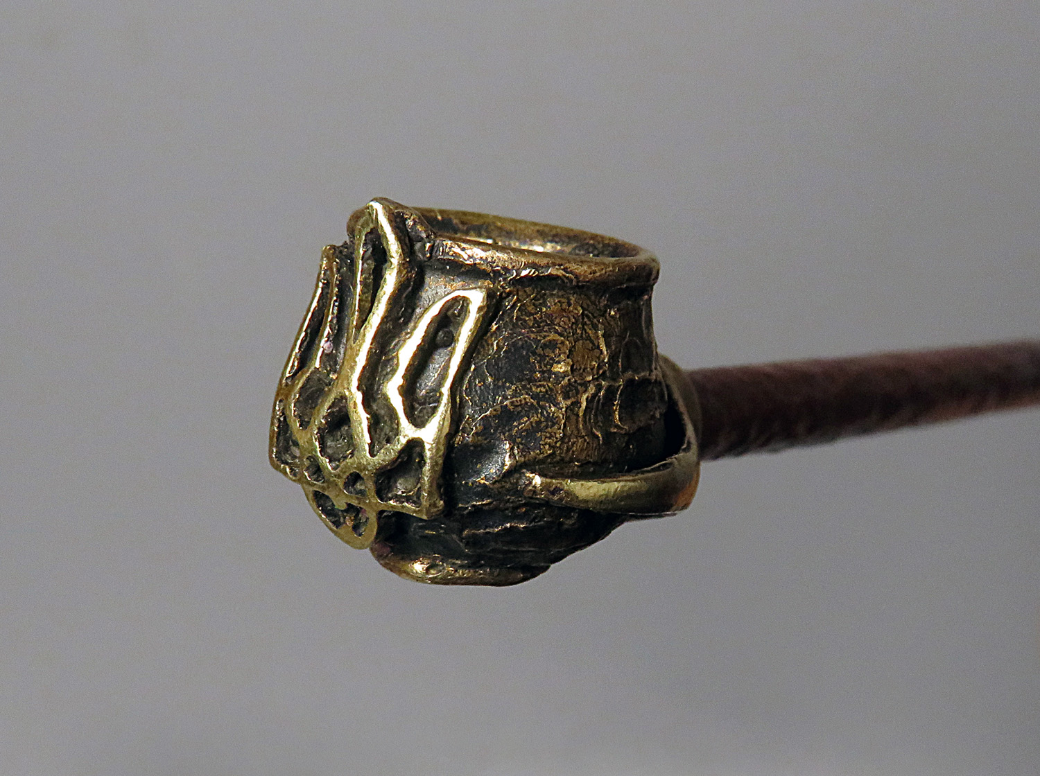 To make this item, a wax model was cut out by hand. Then, using the lost wax method, bronze parts were cast.