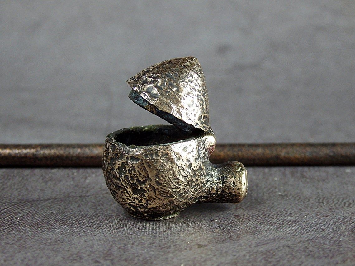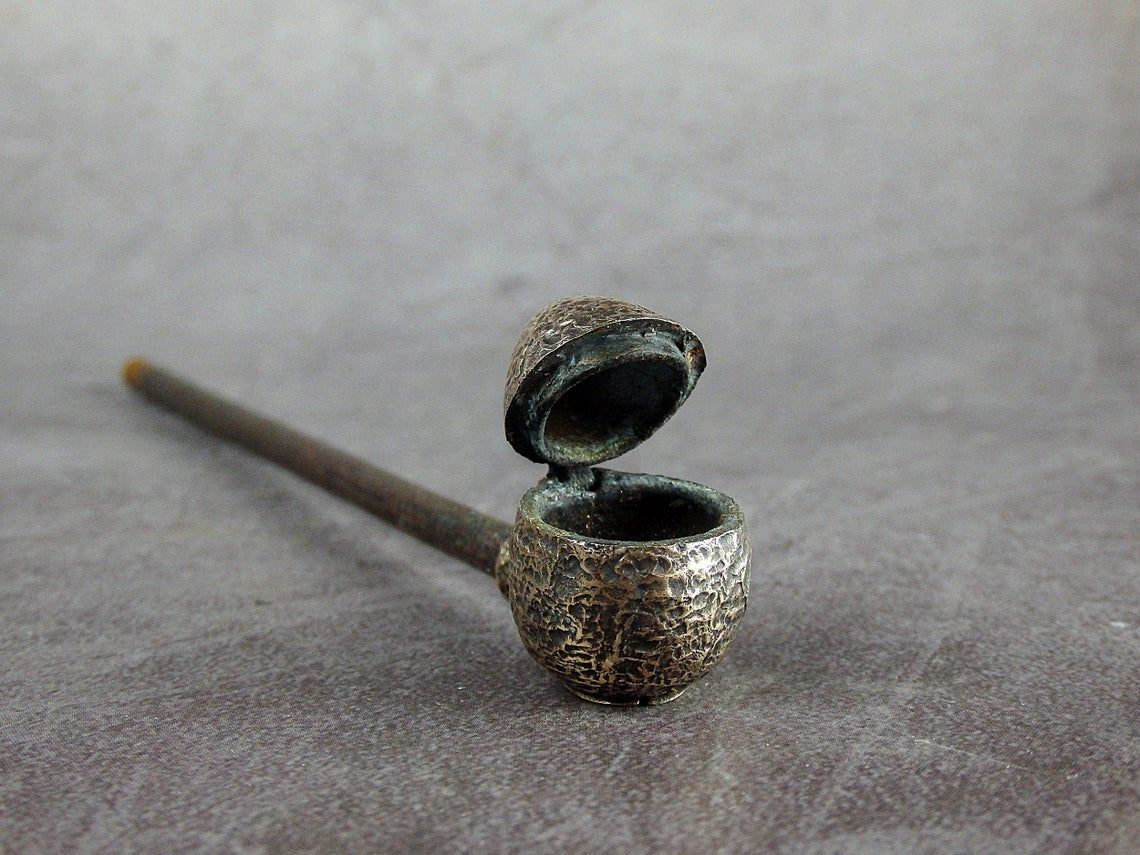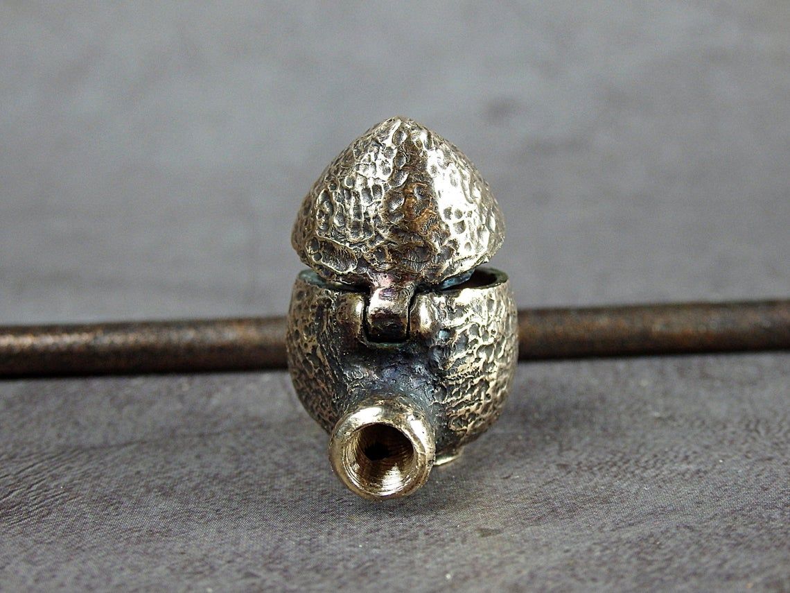 Smoking pipe with a bowl in the form of a small snake egg. The egg has an opening lid and this is not only a smoking accessory, but also a wonderful souvenir. The mouthpiece is made of copper, it is screwed on, can have a length (from 3 to 30 cm) and a shape at the request of the buyer. The pipe is working, not decorative, the model is tested by the master.