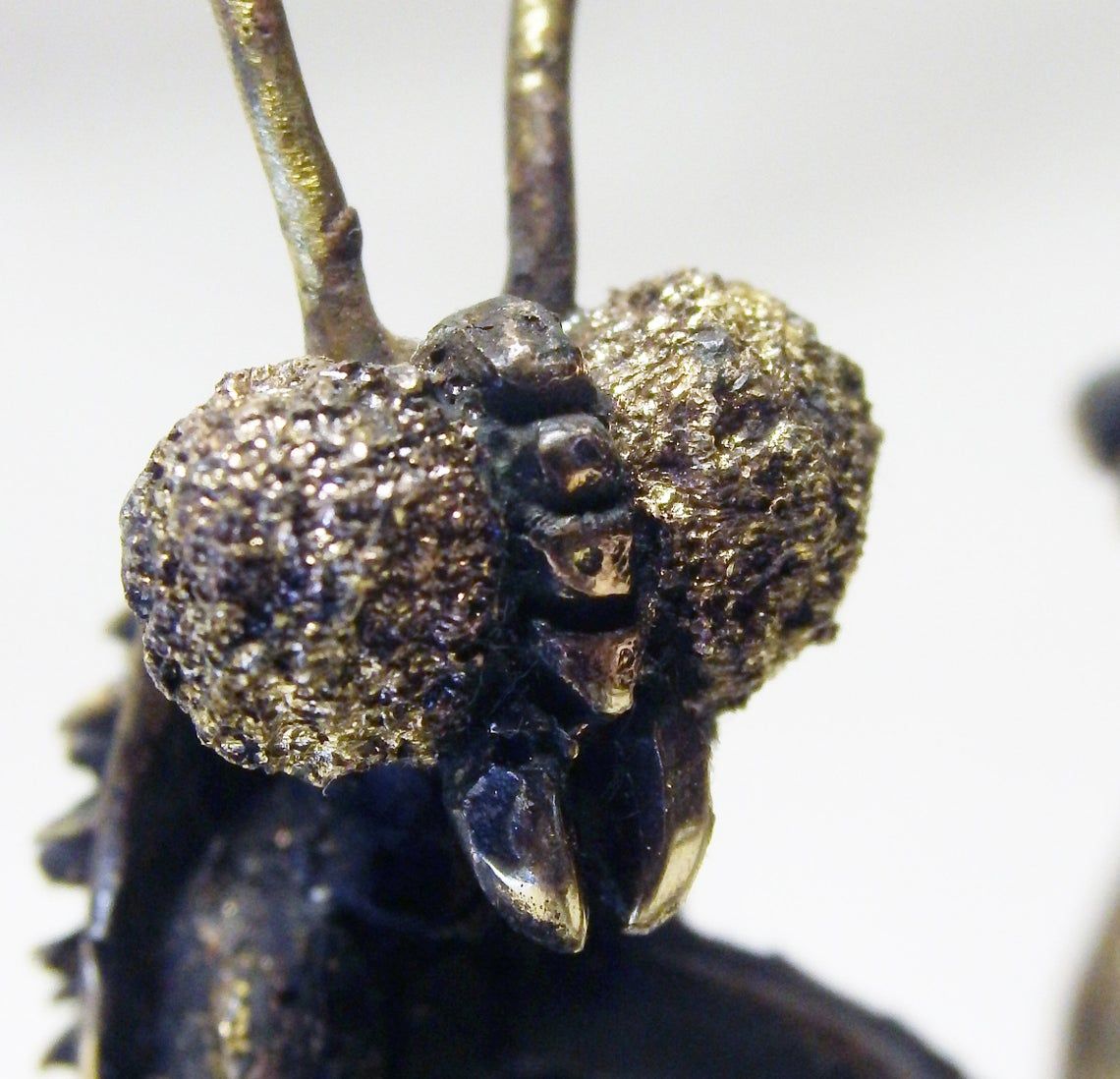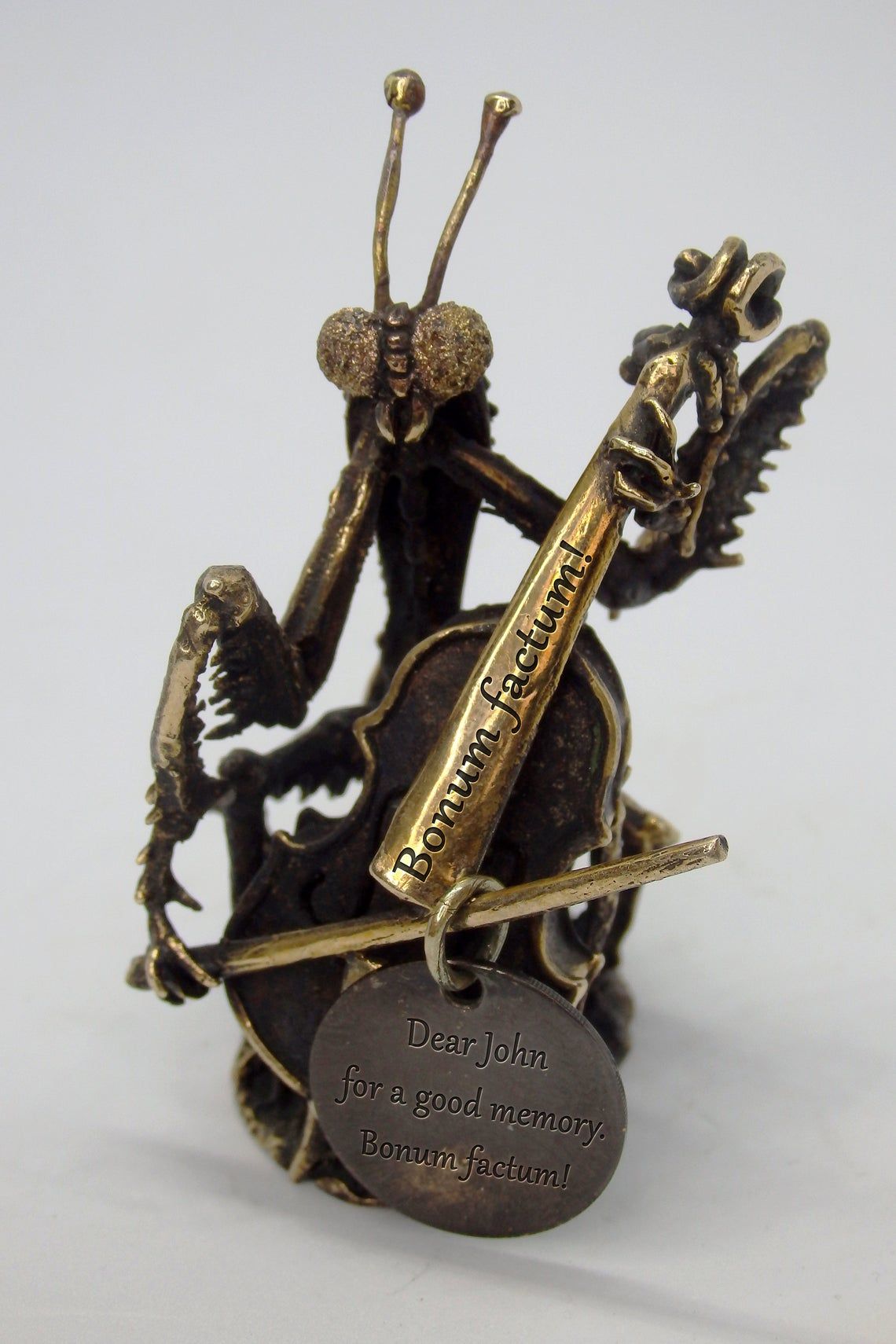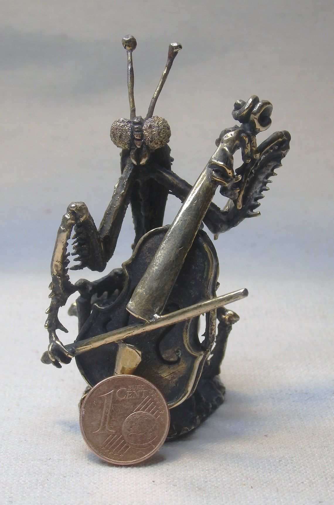 For the manufacture of mantis has been hand carved model from wax. After this, using the lost vax method, a metal blank was cast, which was then installation, minted, ground and polished. At last, patina is applied and a final soft polished is applied, to give the figurine its unique vintage look.