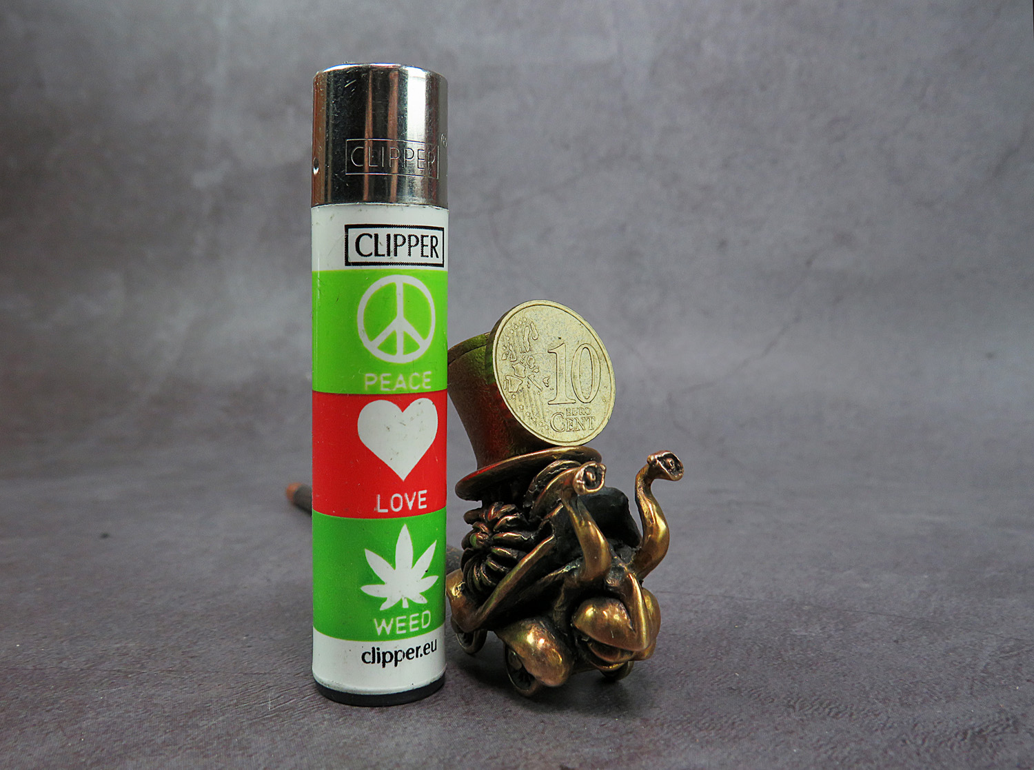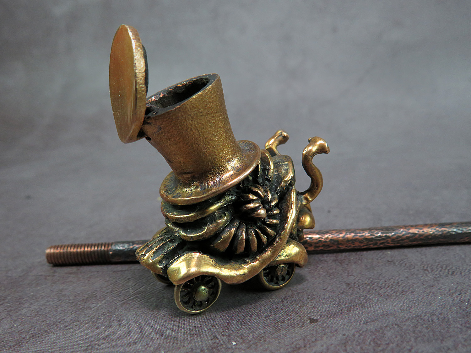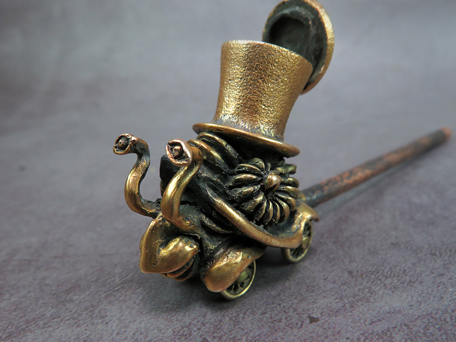 Bronze smoking pipe in the form of a racing snail on wheels and in a cylinder. This pipe will be an excellent thematic gift for connoisseurs of postmodernism, novice drivers, cheerful travelers and collectors of outlandish things.